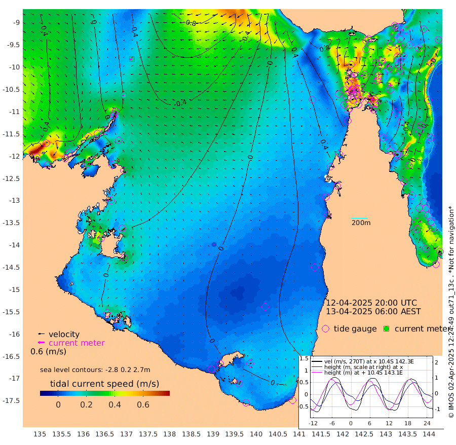 19cm/s -100T +3cm/s rms + 7cm/s -42T. ARA-GOC87 57m 2cm/s -162T +3cm/s rms + 2cm/s -2T. ARA-GOC87 60m 19cm/s -118T +2cm/s rms + 3cm/s 61T. ARA-GOC87 47m -67cm Daru -74cm Bobo Island -5cm Meer Island Barge -24cm Bramble Cay -41cm Unnamed Cay -60cm Pearce Cay -40cm Stephens Island -39cm Merrie England Shoals -59cm Mutacomal Reef -35cm Darnley Island Barge -10cm East Cay -51cm Yorke Island Barge -52cm Rennel Island -65cm Aureed Island -60cm Dungeness Reef -79cm Zagai Island -64cm Yam Island -50cm Dauan Island -54cm Saibai Island -60cm Phipi Reef -80cm Warrior Reef - West -25cm Mabuiag Island Barge -49cm Half Way Island -73cm Coconut Island -52cm Dugong Islet -67cm Poll Island -58cm Kirkcaldie Reef -65cm Suarji Island -63cm Sue Islet 49cm Hawkesbury Island -47cm Alert Patches -55cm Twin Island 29cm Badu Island -58cm St Pauls (Moa Island) 16cm Kubin (Moa Island) -27cm Ince Point -8cm Thursday Island -14cm Nardana Patches 15cm Turtle Head 26cm Round Island 56cm Goods Island 80cm Booby Island 73cm White Rocks Area 69cm Carpentaria -50cm Papou Point 72cm Bampfield Head 60cm Crab Island 66cm Red Wallis Island 30cm Packe Island -70cm Harrington Reef 61cm Herald Camp -24cm Sharp Point 6cm Red Island Point -26cm Possession Island -53cm Alpha Rock -64cm Frederick Point -68cm Wyborn Reef Light -71cm Tetley Island -17cm Triangle Reef -61cm Turtle Head Island -4cm Maclennan Cay 13cm Raine Island -43cm Mcsweeny Reef -35cm Collette Reef -6cm Shadwell Reef -36cm Hannibal Island -25cm Round Point 61cm Vrilya Point -12cm Cape Grenville -10cm Hicks Island 1cm Sir Charles Hardy Island -5cm Harvey Island 2cm Kay Reef 8cm Rocky Island 10cm Chapman Island 12cm Ham Reef 9cm Jubilee Reef 2cm Night Island 10cm Unnamed Reef No. 3 9cm Morris Island 19cm 1st 3 Mile Opening 11cm Creech Reef -2cm Fife Island 15cm Eden Reef 15cm Stanley Island 9cm Normanby River 36cm Yabooma Island 13cm Hutchison River 18cm Elcho Island 19cm North West Crocodile Island -19cm Cape Wessel -3cm Stevens Island -43cm Guluwuru Island 5cm Hopeful Bay -7cm Auster Point -7cm Two Island Bay -26cm Cadell Strait -100cm Mallison Island -34cm Melville Bay (Gove Harbour) -38cm Truant Island -33cm Cape Arnhem -20cm Cape Grey -28cm Hawk Island -9cm Milner Bay (Groote Eylandt) -6cm Cape Beatrice 4cm West Island -1cm Centre Island -14cm Mornington Island -2cm West Wellesley Islands 17cm Bountiful Island 1cm Albert River Mouth -8cm Sweers Island -6cm Karumba 8cm Nassau River Offshore 20cm Christmas Creek 36cm Archer River 40cm Boyd Point 56cm Weipa (Humbug Point) 35cm Pennefather River 57cm Cullen Point