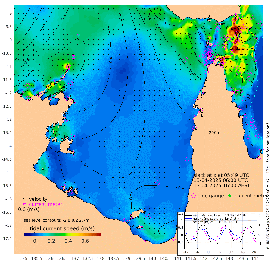19cm/s -74T +3cm/s rms + 7cm/s -42T. ARA-GOC87 57m 6cm/s 1T +3cm/s rms + 2cm/s -2T. ARA-GOC87 60m 18cm/s -84T +2cm/s rms + 3cm/s 61T. ARA-GOC87 47m -120cm Daru -123cm Bobo Island -80cm Meer Island Barge -109cm Bramble Cay -122cm Unnamed Cay -122cm Pearce Cay -113cm Stephens Island -124cm Merrie England Shoals -127cm Mutacomal Reef -102cm Darnley Island Barge -93cm East Cay -106cm Yorke Island Barge -115cm Rennel Island -111cm Aureed Island -106cm Dungeness Reef -85cm Zagai Island -83cm Yam Island -47cm Dauan Island -47cm Saibai Island -66cm Phipi Reef -87cm Warrior Reef - West -38cm Mabuiag Island Barge -106cm Half Way Island -116cm Coconut Island -106cm Dugong Islet -96cm Poll Island -95cm Kirkcaldie Reef -88cm Suarji Island -86cm Sue Islet -14cm Hawkesbury Island -74cm Alert Patches -78cm Twin Island -32cm Badu Island -69cm St Pauls (Moa Island) -31cm Kubin (Moa Island) -53cm Ince Point -41cm Thursday Island -44cm Nardana Patches -36cm Turtle Head -24cm Round Island -18cm Goods Island 9cm Booby Island -10cm White Rocks Area 37cm Carpentaria -64cm Papou Point -8cm Bampfield Head 18cm Crab Island 6cm Red Wallis Island -25cm Packe Island -119cm Harrington Reef 2cm Herald Camp -13cm Sharp Point -32cm Red Island Point -50cm Possession Island -77cm Alpha Rock -96cm Frederick Point -125cm Wyborn Reef Light -119cm Tetley Island -77cm Triangle Reef -118cm Turtle Head Island -78cm Maclennan Cay -67cm Raine Island -112cm Mcsweeny Reef -106cm Collette Reef -80cm Shadwell Reef -117cm Hannibal Island -114cm Round Point 37cm Vrilya Point -96cm Cape Grenville -92cm Hicks Island -94cm Sir Charles Hardy Island -28cm Harvey Island -93cm Kay Reef -78cm Rocky Island -76cm Chapman Island -67cm Ham Reef -73cm Jubilee Reef -66cm Night Island -71cm Unnamed Reef No. 3 -81cm Morris Island -68cm 1st 3 Mile Opening -71cm Creech Reef -79cm Fife Island -85cm Eden Reef -76cm Stanley Island -89cm Normanby River -100cm Yabooma Island -133cm Hutchison River -99cm Elcho Island -91cm North West Crocodile Island -83cm Cape Wessel -106cm Stevens Island -100cm Guluwuru Island -89cm Hopeful Bay -83cm Auster Point -71cm Two Island Bay -114cm Cadell Strait -133cm Mallison Island -91cm Melville Bay (Gove Harbour) -94cm Truant Island -61cm Cape Arnhem -44cm Cape Grey -27cm Hawk Island 1cm Milner Bay (Groote Eylandt) 6cm Cape Beatrice 37cm West Island 44cm Centre Island 11cm Mornington Island 11cm West Wellesley Islands -16cm Bountiful Island 3cm Albert River Mouth 6cm Sweers Island 7cm Karumba -3cm Nassau River Offshore -8cm Christmas Creek 0cm Archer River 7cm Boyd Point 2cm Weipa (Humbug Point) 25cm Pennefather River 31cm Cullen Point