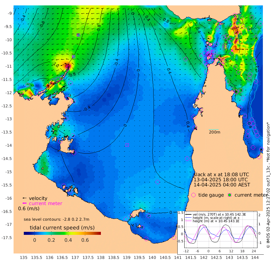 21cm/s -85T +3cm/s rms + 7cm/s -42T. ARA-GOC87 57m 8cm/s 119T +3cm/s rms + 2cm/s -2T. ARA-GOC87 60m 23cm/s -101T +2cm/s rms + 3cm/s 61T. ARA-GOC87 47m -62cm Daru -65cm Bobo Island -36cm Meer Island Barge -62cm Bramble Cay -65cm Unnamed Cay -65cm Pearce Cay -59cm Stephens Island -73cm Merrie England Shoals -70cm Mutacomal Reef -47cm Darnley Island Barge -46cm East Cay -48cm Yorke Island Barge -60cm Rennel Island -48cm Aureed Island -42cm Dungeness Reef -21cm Zagai Island -20cm Yam Island 13cm Dauan Island 19cm Saibai Island -1cm Phipi Reef -22cm Warrior Reef - West 19cm Mabuiag Island Barge -52cm Half Way Island -52cm Coconut Island -45cm Dugong Islet -35cm Poll Island -32cm Kirkcaldie Reef -7cm Suarji Island -23cm Sue Islet 23cm Hawkesbury Island -8cm Alert Patches -13cm Twin Island 24cm Badu Island -4cm St Pauls (Moa Island) 14cm Kubin (Moa Island) 5cm Ince Point 17cm Thursday Island 13cm Nardana Patches 20cm Turtle Head 17cm Round Island 34cm Goods Island 57cm Booby Island 43cm White Rocks Area 85cm Carpentaria -7cm Papou Point 50cm Bampfield Head 45cm Crab Island 48cm Red Wallis Island 19cm Packe Island -53cm Harrington Reef 44cm Herald Camp 3cm Sharp Point 17cm Red Island Point 3cm Possession Island -22cm Alpha Rock -33cm Frederick Point -69cm Wyborn Reef Light -63cm Tetley Island -35cm Triangle Reef -63cm Turtle Head Island -30cm Maclennan Cay -28cm Raine Island -56cm Mcsweeny Reef -54cm Collette Reef -37cm Shadwell Reef -63cm Hannibal Island -68cm Round Point 57cm Vrilya Point -50cm Cape Grenville -45cm Hicks Island -34cm Sir Charles Hardy Island -14cm Harvey Island -46cm Kay Reef -33cm Rocky Island -31cm Chapman Island -26cm Ham Reef -30cm Jubilee Reef -31cm Night Island -29cm Unnamed Reef No. 3 -37cm Morris Island -21cm 1st 3 Mile Opening -27cm Creech Reef -43cm Fife Island -40cm Eden Reef -35cm Stanley Island -46cm Normanby River -155cm Yabooma Island -190cm Hutchison River -162cm Elcho Island -156cm North West Crocodile Island -107cm Cape Wessel -162cm Stevens Island -106cm Guluwuru Island -143cm Hopeful Bay -119cm Auster Point -123cm Two Island Bay -171cm Cadell Strait -141cm Mallison Island -102cm Melville Bay (Gove Harbour) -105cm Truant Island -65cm Cape Arnhem -38cm Cape Grey -40cm Hawk Island -5cm Milner Bay (Groote Eylandt) -3cm Cape Beatrice 39cm West Island 43cm Centre Island 10cm Mornington Island 19cm West Wellesley Islands 16cm Bountiful Island -20cm Albert River Mouth -18cm Sweers Island -18cm Karumba 15cm Nassau River Offshore 25cm Christmas Creek 29cm Archer River 41cm Boyd Point 40cm Weipa (Humbug Point) 34cm Pennefather River 54cm Cullen Point