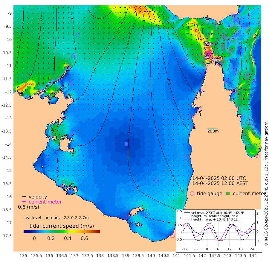 11cm/s 46T +3cm/s rms + 7cm/s -42T. ARA-GOC87 57m 8cm/s -157T +3cm/s rms + 2cm/s -2T. ARA-GOC87 60m 13cm/s 26T +2cm/s rms + 3cm/s 61T. ARA-GOC87 47m 67cm Daru 66cm Bobo Island 3cm Meer Island Barge 27cm Bramble Cay 46cm Unnamed Cay 51cm Pearce Cay 37cm Stephens Island 43cm Merrie England Shoals 69cm Mutacomal Reef 31cm Darnley Island Barge 6cm East Cay 48cm Yorke Island Barge 50cm Rennel Island 58cm Aureed Island 56cm Dungeness Reef 79cm Zagai Island 71cm Yam Island 65cm Dauan Island 67cm Saibai Island 55cm Phipi Reef 87cm Warrior Reef - West 27cm Mabuiag Island Barge 46cm Half Way Island 63cm Coconut Island 54cm Dugong Islet 66cm Poll Island 52cm Kirkcaldie Reef 60cm Suarji Island 61cm Sue Islet -61cm Hawkesbury Island 35cm Alert Patches 47cm Twin Island -39cm Badu Island 53cm St Pauls (Moa Island) -20cm Kubin (Moa Island) 21cm Ince Point 0cm Thursday Island 7cm Nardana Patches -24cm Turtle Head -44cm Round Island -66cm Goods Island -99cm Booby Island -83cm White Rocks Area -95cm Carpentaria 40cm Papou Point -105cm Bampfield Head -91cm Crab Island -78cm Red Wallis Island -35cm Packe Island 60cm Harrington Reef -76cm Herald Camp 23cm Sharp Point -30cm Red Island Point 0cm Possession Island 58cm Alpha Rock 57cm Frederick Point 70cm Wyborn Reef Light 73cm Tetley Island 17cm Triangle Reef 44cm Turtle Head Island 3cm Maclennan Cay -17cm Raine Island 42cm Mcsweeny Reef 33cm Collette Reef 5cm Shadwell Reef 36cm Hannibal Island 25cm Round Point -99cm Vrilya Point 13cm Cape Grenville 7cm Hicks Island 10cm Sir Charles Hardy Island 3cm Harvey Island 1cm Kay Reef -7cm Rocky Island -11cm Chapman Island -13cm Ham Reef -9cm Jubilee Reef -4cm Night Island -11cm Unnamed Reef No. 3 -9cm Morris Island -22cm 1st 3 Mile Opening -14cm Creech Reef 0cm Fife Island -14cm Eden Reef -15cm Stanley Island -7cm Normanby River 16cm Yabooma Island 41cm Hutchison River 30cm Elcho Island 30cm North West Crocodile Island 49cm Cape Wessel 47cm Stevens Island 72cm Guluwuru Island 31cm Hopeful Bay 31cm Auster Point 38cm Two Island Bay 61cm Cadell Strait 151cm Mallison Island 60cm Melville Bay (Gove Harbour) 62cm Truant Island 47cm Cape Arnhem 29cm Cape Grey 34cm Hawk Island 16cm Milner Bay (Groote Eylandt) 20cm Cape Beatrice 7cm West Island -1cm Centre Island 25cm Mornington Island 22cm West Wellesley Islands 25cm Bountiful Island 48cm Albert River Mouth 38cm Sweers Island 34cm Karumba 10cm Nassau River Offshore -12cm Christmas Creek -48cm Archer River -51cm Boyd Point -61cm Weipa (Humbug Point) -72cm Pennefather River -79cm Cullen Point