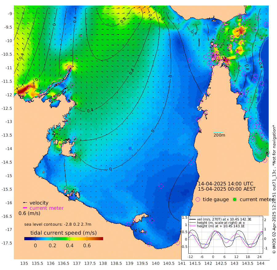 32cm/s 102T +3cm/s rms + 7cm/s -42T. ARA-GOC87 57m 6cm/s 124T +3cm/s rms + 2cm/s -2T. ARA-GOC87 60m 29cm/s 89T +2cm/s rms + 3cm/s 61T. ARA-GOC87 47m 104cm Daru 109cm Bobo Island 46cm Meer Island Barge 68cm Bramble Cay 87cm Unnamed Cay 95cm Pearce Cay 78cm Stephens Island 84cm Merrie England Shoals 99cm Mutacomal Reef 75cm Darnley Island Barge 52cm East Cay 88cm Yorke Island Barge 87cm Rennel Island 96cm Aureed Island 93cm Dungeness Reef 108cm Zagai Island 92cm Yam Island 82cm Dauan Island 88cm Saibai Island 99cm Phipi Reef 107cm Warrior Reef - West 62cm Mabuiag Island Barge 79cm Half Way Island 109cm Coconut Island 82cm Dugong Islet 95cm Poll Island 89cm Kirkcaldie Reef 98cm Suarji Island 95cm Sue Islet 9cm Hawkesbury Island 83cm Alert Patches 87cm Twin Island 34cm Badu Island 87cm St Pauls (Moa Island) 29cm Kubin (Moa Island) 62cm Ince Point 47cm Thursday Island 52cm Nardana Patches 33cm Turtle Head 29cm Round Island 3cm Goods Island -21cm Booby Island -15cm White Rocks Area -27cm Carpentaria 78cm Papou Point 8cm Bampfield Head -15cm Crab Island -18cm Red Wallis Island 16cm Packe Island 100cm Harrington Reef -3cm Herald Camp 26cm Sharp Point 35cm Red Island Point 65cm Possession Island 81cm Alpha Rock 96cm Frederick Point 109cm Wyborn Reef Light 109cm Tetley Island 54cm Triangle Reef 102cm Turtle Head Island 42cm Maclennan Cay 30cm Raine Island 82cm Mcsweeny Reef 77cm Collette Reef 49cm Shadwell Reef 82cm Hannibal Island 70cm Round Point -26cm Vrilya Point 55cm Cape Grenville 53cm Hicks Island 50cm Sir Charles Hardy Island 16cm Harvey Island 46cm Kay Reef 37cm Rocky Island 37cm Chapman Island 30cm Ham Reef 34cm Jubilee Reef 32cm Night Island 32cm Unnamed Reef No. 3 36cm Morris Island 28cm 1st 3 Mile Opening 32cm Creech Reef 36cm Fife Island 34cm Eden Reef 30cm Stanley Island 34cm Normanby River 12cm Yabooma Island 43cm Hutchison River 21cm Elcho Island 12cm North West Crocodile Island 52cm Cape Wessel 45cm Stevens Island 88cm Guluwuru Island 35cm Hopeful Bay 45cm Auster Point 34cm Two Island Bay 67cm Cadell Strait 180cm Mallison Island 73cm Melville Bay (Gove Harbour) 80cm Truant Island 59cm Cape Arnhem 35cm Cape Grey 26cm Hawk Island -9cm Milner Bay (Groote Eylandt) -21cm Cape Beatrice -52cm West Island -46cm Centre Island -28cm Mornington Island -39cm West Wellesley Islands -40cm Bountiful Island -58cm Albert River Mouth -48cm Sweers Island -50cm Karumba -26cm Nassau River Offshore -12cm Christmas Creek -9cm Archer River -9cm Boyd Point -17cm Weipa (Humbug Point) -11cm Pennefather River -24cm Cullen Point