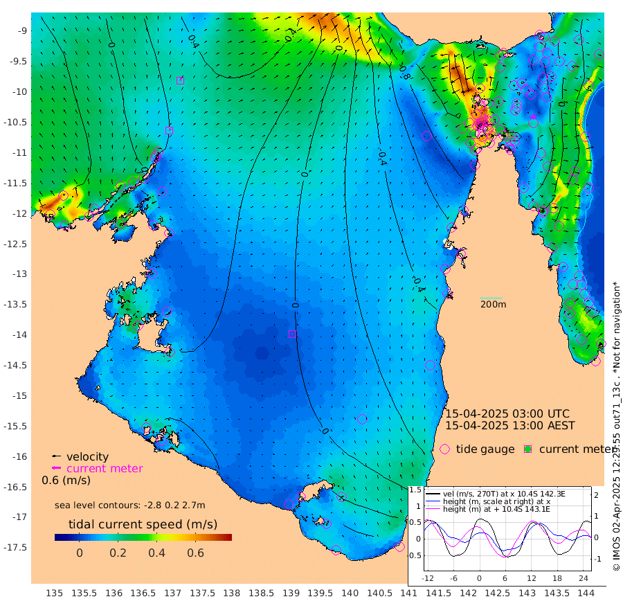 13cm/s 33T +3cm/s rms + 7cm/s -42T. ARA-GOC87 57m 3cm/s -117T +3cm/s rms + 2cm/s -2T. ARA-GOC87 60m 16cm/s 22T +2cm/s rms + 3cm/s 61T. ARA-GOC87 47m 24cm Daru 24cm Bobo Island -26cm Meer Island Barge -12cm Bramble Cay 3cm Unnamed Cay 6cm Pearce Cay -6cm Stephens Island -1cm Merrie England Shoals 24cm Mutacomal Reef -5cm Darnley Island Barge -29cm East Cay 11cm Yorke Island Barge 6cm Rennel Island 18cm Aureed Island 15cm Dungeness Reef 51cm Zagai Island 39cm Yam Island 47cm Dauan Island 55cm Saibai Island 30cm Phipi Reef 56cm Warrior Reef - West 9cm Mabuiag Island Barge 4cm Half Way Island 22cm Coconut Island 12cm Dugong Islet 29cm Poll Island 13cm Kirkcaldie Reef 25cm Suarji Island 31cm Sue Islet -95cm Hawkesbury Island 1cm Alert Patches 12cm Twin Island -67cm Badu Island 21cm St Pauls (Moa Island) -54cm Kubin (Moa Island) -10cm Ince Point -30cm Thursday Island -22cm Nardana Patches -55cm Turtle Head -77cm Round Island -98cm Goods Island -124cm Booby Island -113cm White Rocks Area -103cm Carpentaria 10cm Papou Point -138cm Bampfield Head -109cm Crab Island -104cm Red Wallis Island -70cm Packe Island 13cm Harrington Reef -109cm Herald Camp 18cm Sharp Point -57cm Red Island Point -33cm Possession Island 27cm Alpha Rock 16cm Frederick Point 25cm Wyborn Reef Light 29cm Tetley Island -12cm Triangle Reef -5cm Turtle Head Island -28cm Maclennan Cay -42cm Raine Island 1cm Mcsweeny Reef -4cm Collette Reef -23cm Shadwell Reef -5cm Hannibal Island -18cm Round Point -109cm Vrilya Point -23cm Cape Grenville -28cm Hicks Island -24cm Sir Charles Hardy Island -8cm Harvey Island -33cm Kay Reef -36cm Rocky Island -38cm Chapman Island -37cm Ham Reef -36cm Jubilee Reef -31cm Night Island -37cm Unnamed Reef No. 3 -39cm Morris Island -48cm 1st 3 Mile Opening -41cm Creech Reef -31cm Fife Island -45cm Eden Reef -44cm Stanley Island -41cm Normanby River -25cm Yabooma Island -7cm Hutchison River -7cm Elcho Island -6cm North West Crocodile Island 27cm Cape Wessel 13cm Stevens Island 55cm Guluwuru Island 1cm Hopeful Bay 5cm Auster Point 11cm Two Island Bay 26cm Cadell Strait 156cm Mallison Island 42cm Melville Bay (Gove Harbour) 42cm Truant Island 38cm Cape Arnhem 27cm Cape Grey 33cm Hawk Island 29cm Milner Bay (Groote Eylandt) 31cm Cape Beatrice 30cm West Island 23cm Centre Island 39cm Mornington Island 39cm West Wellesley Islands 36cm Bountiful Island 69cm Albert River Mouth 61cm Sweers Island 50cm Karumba 10cm Nassau River Offshore -19cm Christmas Creek -58cm Archer River -61cm Boyd Point -75cm Weipa (Humbug Point) -79cm Pennefather River -91cm Cullen Point