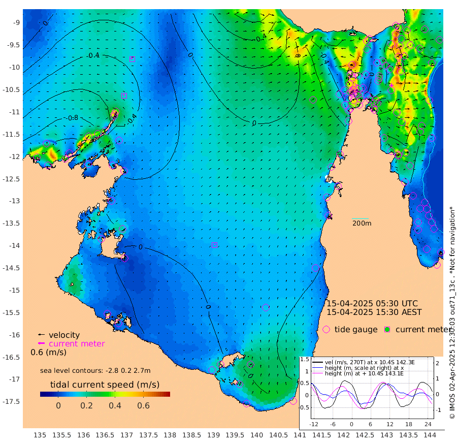 15cm/s -34T +3cm/s rms + 7cm/s -42T. ARA-GOC87 57m 10cm/s 15T +3cm/s rms + 2cm/s -2T. ARA-GOC87 60m 14cm/s -39T +2cm/s rms + 3cm/s 61T. ARA-GOC87 47m -91cm Daru -87cm Bobo Island -74cm Meer Island Barge -92cm Bramble Cay -98cm Unnamed Cay -95cm Pearce Cay -93cm Stephens Island -100cm Merrie England Shoals -93cm Mutacomal Reef -83cm Darnley Island Barge -84cm East Cay -81cm Yorke Island Barge -92cm Rennel Island -78cm Aureed Island -87cm Dungeness Reef -55cm Zagai Island -62cm Yam Island -44cm Dauan Island -31cm Saibai Island -74cm Phipi Reef -59cm Warrior Reef - West -48cm Mabuiag Island Barge -85cm Half Way Island -85cm Coconut Island -83cm Dugong Islet -71cm Poll Island -81cm Kirkcaldie Reef -69cm Suarji Island -63cm Sue Islet -93cm Hawkesbury Island -75cm Alert Patches -68cm Twin Island -91cm Badu Island -62cm St Pauls (Moa Island) -78cm Kubin (Moa Island) -65cm Ince Point -67cm Thursday Island -66cm Nardana Patches -81cm Turtle Head -86cm Round Island -89cm Goods Island -78cm Booby Island -83cm White Rocks Area -22cm Carpentaria -60cm Papou Point -95cm Bampfield Head -61cm Crab Island -65cm Red Wallis Island -77cm Packe Island -89cm Harrington Reef -83cm Herald Camp -6cm Sharp Point -77cm Red Island Point -75cm Possession Island -54cm Alpha Rock -77cm Frederick Point -91cm Wyborn Reef Light -85cm Tetley Island -65cm Triangle Reef -105cm Turtle Head Island -73cm Maclennan Cay -71cm Raine Island -88cm Mcsweeny Reef -86cm Collette Reef -74cm Shadwell Reef -94cm Hannibal Island -97cm Round Point -40cm Vrilya Point -85cm Cape Grenville -86cm Hicks Island -83cm Sir Charles Hardy Island -26cm Harvey Island -84cm Kay Reef -77cm Rocky Island -73cm Chapman Island -66cm Ham Reef -72cm Jubilee Reef -64cm Night Island -67cm Unnamed Reef No. 3 -80cm Morris Island -77cm 1st 3 Mile Opening -73cm Creech Reef -70cm Fife Island -85cm Eden Reef -78cm Stanley Island -85cm Normanby River -122cm Yabooma Island -146cm Hutchison River -111cm Elcho Island -107cm North West Crocodile Island -51cm Cape Wessel -96cm Stevens Island -56cm Guluwuru Island -88cm Hopeful Bay -74cm Auster Point -65cm Two Island Bay -105cm Cadell Strait 3cm Mallison Island -57cm Melville Bay (Gove Harbour) -56cm Truant Island -30cm Cape Arnhem -23cm Cape Grey -7cm Hawk Island 23cm Milner Bay (Groote Eylandt) 25cm Cape Beatrice 56cm West Island 59cm Centre Island 23cm Mornington Island 29cm West Wellesley Islands -9cm Bountiful Island 18cm Albert River Mouth 19cm Sweers Island 5cm Karumba -10cm Nassau River Offshore -29cm Christmas Creek -43cm Archer River -36cm Boyd Point -52cm Weipa (Humbug Point) -33cm Pennefather River -34cm Cullen Point