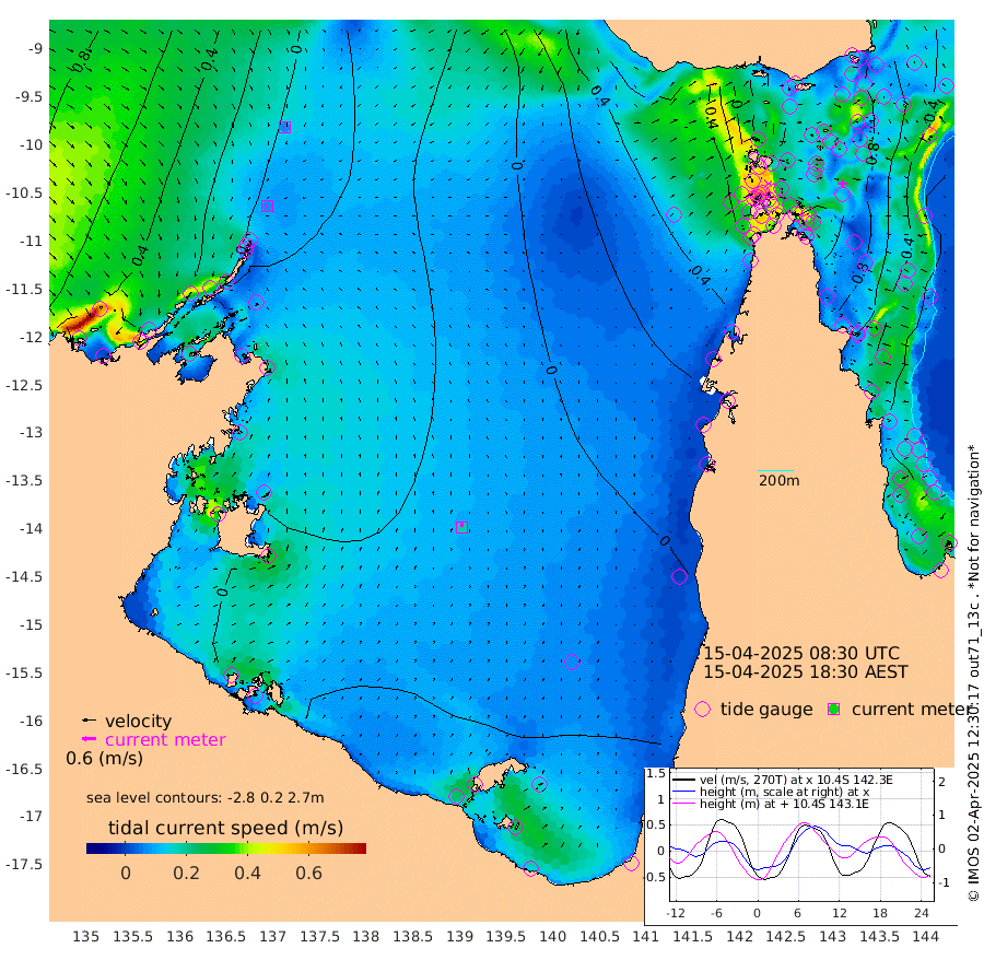 7cm/s -103T +3cm/s rms + 7cm/s -42T. ARA-GOC87 57m 18cm/s -1T +3cm/s rms + 2cm/s -2T. ARA-GOC87 60m 6cm/s -154T +2cm/s rms + 3cm/s 61T. ARA-GOC87 47m -99cm Daru -96cm Bobo Island -33cm Meer Island Barge -55cm Bramble Cay -79cm Unnamed Cay -82cm Pearce Cay -65cm Stephens Island -71cm Merrie England Shoals -97cm Mutacomal Reef -65cm Darnley Island Barge -36cm East Cay -82cm Yorke Island Barge -78cm Rennel Island -89cm Aureed Island -94cm Dungeness Reef -119cm Zagai Island -108cm Yam Island -120cm Dauan Island -125cm Saibai Island -124cm Phipi Reef -130cm Warrior Reef - West -79cm Mabuiag Island Barge -71cm Half Way Island -98cm Coconut Island -83cm Dugong Islet -98cm Poll Island -90cm Kirkcaldie Reef -109cm Suarji Island -102cm Sue Islet 3cm Hawkesbury Island -85cm Alert Patches -88cm Twin Island -30cm Badu Island -96cm St Pauls (Moa Island) -25cm Kubin (Moa Island) -66cm Ince Point -48cm Thursday Island -55cm Nardana Patches -32cm Turtle Head -9cm Round Island 6cm Goods Island 38cm Booby Island 29cm White Rocks Area 50cm Carpentaria -77cm Papou Point 36cm Bampfield Head 42cm Crab Island 31cm Red Wallis Island -9cm Packe Island -90cm Harrington Reef 18cm Herald Camp -33cm Sharp Point -26cm Red Island Point -49cm Possession Island -87cm Alpha Rock -92cm Frederick Point -98cm Wyborn Reef Light -101cm Tetley Island -44cm Triangle Reef -77cm Turtle Head Island -33cm Maclennan Cay -14cm Raine Island -72cm Mcsweeny Reef -65cm Collette Reef -38cm Shadwell Reef -68cm Hannibal Island -52cm Round Point 56cm Vrilya Point -42cm Cape Grenville -37cm Hicks Island -48cm Sir Charles Hardy Island -12cm Harvey Island -32cm Kay Reef -25cm Rocky Island -23cm Chapman Island -18cm Ham Reef -22cm Jubilee Reef -19cm Night Island -18cm Unnamed Reef No. 3 -22cm Morris Island -14cm 1st 3 Mile Opening -18cm Creech Reef -20cm Fife Island -18cm Eden Reef -16cm Stanley Island -19cm Normanby River 32cm Yabooma Island 10cm Hutchison River 25cm Elcho Island 25cm North West Crocodile Island -11cm Cape Wessel 6cm Stevens Island -55cm Guluwuru Island 12cm Hopeful Bay 5cm Auster Point 12cm Two Island Bay -16cm Cadell Strait -142cm Mallison Island -42cm Melville Bay (Gove Harbour) -41cm Truant Island -36cm Cape Arnhem -29cm Cape Grey -23cm Hawk Island -1cm Milner Bay (Groote Eylandt) -2cm Cape Beatrice 7cm West Island 13cm Centre Island -29cm Mornington Island -26cm West Wellesley Islands -54cm Bountiful Island -34cm Albert River Mouth -30cm Sweers Island -31cm Karumba -34cm Nassau River Offshore -30cm Christmas Creek 0cm Archer River 6cm Boyd Point 9cm Weipa (Humbug Point) 36cm Pennefather River 39cm Cullen Point