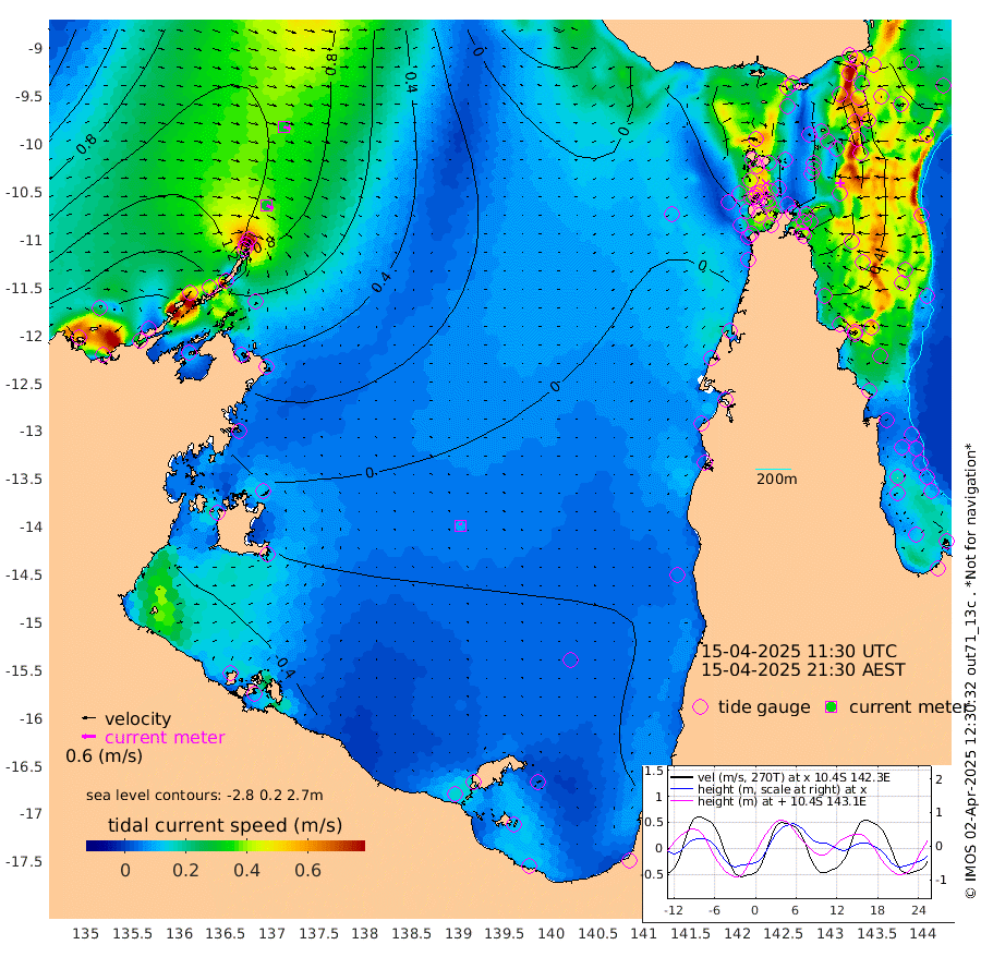 30cm/s 118T +3cm/s rms + 7cm/s -42T. ARA-GOC87 57m 10cm/s -9T +3cm/s rms + 2cm/s -2T. ARA-GOC87 60m 31cm/s 108T +2cm/s rms + 3cm/s 61T. ARA-GOC87 47m 44cm Daru 46cm Bobo Island 47cm Meer Island Barge 59cm Bramble Cay 56cm Unnamed Cay 53cm Pearce Cay 56cm Stephens Island 62cm Merrie England Shoals 47cm Mutacomal Reef 45cm Darnley Island Barge 54cm East Cay 38cm Yorke Island Barge 50cm Rennel Island 33cm Aureed Island 35cm Dungeness Reef 3cm Zagai Island 7cm Yam Island -22cm Dauan Island -36cm Saibai Island 1cm Phipi Reef -4cm Warrior Reef - West -5cm Mabuiag Island Barge 46cm Half Way Island 40cm Coconut Island 36cm Dugong Islet 23cm Poll Island 30cm Kirkcaldie Reef 5cm Suarji Island 11cm Sue Islet 55cm Hawkesbury Island 21cm Alert Patches 18cm Twin Island 43cm Badu Island 8cm St Pauls (Moa Island) 41cm Kubin (Moa Island) 17cm Ince Point 21cm Thursday Island 19cm Nardana Patches 33cm Turtle Head 56cm Round Island 49cm Goods Island 47cm Booby Island 49cm White Rocks Area 9cm Carpentaria 18cm Papou Point 73cm Bampfield Head 47cm Crab Island 38cm Red Wallis Island 41cm Packe Island 44cm Harrington Reef 49cm Herald Camp -10cm Sharp Point 33cm Red Island Point 38cm Possession Island 12cm Alpha Rock 29cm Frederick Point 50cm Wyborn Reef Light 44cm Tetley Island 36cm Triangle Reef 71cm Turtle Head Island 41cm Maclennan Cay 48cm Raine Island 49cm Mcsweeny Reef 49cm Collette Reef 45cm Shadwell Reef 56cm Hannibal Island 66cm Round Point 35cm Vrilya Point 53cm Cape Grenville 56cm Hicks Island 40cm Sir Charles Hardy Island 16cm Harvey Island 53cm Kay Reef 47cm Rocky Island 43cm Chapman Island 39cm Ham Reef 44cm Jubilee Reef 42cm Night Island 41cm Unnamed Reef No. 3 52cm Morris Island 50cm 1st 3 Mile Opening 45cm Creech Reef 48cm Fife Island 57cm Eden Reef 52cm Stanley Island 57cm Normanby River 178cm Yabooma Island 206cm Hutchison River 173cm Elcho Island 164cm North West Crocodile Island 98cm Cape Wessel 160cm Stevens Island 86cm Guluwuru Island 144cm Hopeful Bay 127cm Auster Point 126cm Two Island Bay 164cm Cadell Strait 35cm Mallison Island 86cm Melville Bay (Gove Harbour) 92cm Truant Island 50cm Cape Arnhem 26cm Cape Grey 16cm Hawk Island -16cm Milner Bay (Groote Eylandt) -28cm Cape Beatrice -74cm West Island -70cm Centre Island -63cm Mornington Island -74cm West Wellesley Islands -73cm Bountiful Island -62cm Albert River Mouth -59cm Sweers Island -53cm Karumba -50cm Nassau River Offshore -31cm Christmas Creek 4cm Archer River 4cm Boyd Point 12cm Weipa (Humbug Point) 28cm Pennefather River 19cm Cullen Point