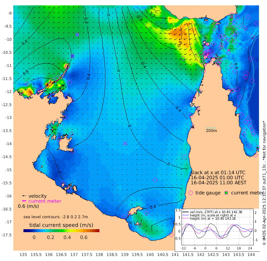 5cm/s 43T +3cm/s rms + 7cm/s -42T. ARA-GOC87 57m 11cm/s -110T +3cm/s rms + 2cm/s -2T. ARA-GOC87 60m 9cm/s 35T +2cm/s rms + 3cm/s 61T. ARA-GOC87 47m 61cm Daru 55cm Bobo Island 19cm Meer Island Barge 40cm Bramble Cay 53cm Unnamed Cay 51cm Pearce Cay 43cm Stephens Island 50cm Merrie England Shoals 61cm Mutacomal Reef 35cm Darnley Island Barge 22cm East Cay 44cm Yorke Island Barge 50cm Rennel Island 44cm Aureed Island 53cm Dungeness Reef 52cm Zagai Island 52cm Yam Island 49cm Dauan Island 39cm Saibai Island 59cm Phipi Reef 61cm Warrior Reef - West 19cm Mabuiag Island Barge 45cm Half Way Island 48cm Coconut Island 48cm Dugong Islet 49cm Poll Island 46cm Kirkcaldie Reef 40cm Suarji Island 42cm Sue Islet -28cm Hawkesbury Island 26cm Alert Patches 29cm Twin Island -7cm Badu Island 34cm St Pauls (Moa Island) -7cm Kubin (Moa Island) 14cm Ince Point 0cm Thursday Island 6cm Nardana Patches -7cm Turtle Head -24cm Round Island -31cm Goods Island -63cm Booby Island -48cm White Rocks Area -100cm Carpentaria 27cm Papou Point -79cm Bampfield Head -61cm Crab Island -58cm Red Wallis Island -24cm Packe Island 48cm Harrington Reef -53cm Herald Camp 11cm Sharp Point -9cm Red Island Point 0cm Possession Island 32cm Alpha Rock 39cm Frederick Point 56cm Wyborn Reef Light 54cm Tetley Island 19cm Triangle Reef 46cm Turtle Head Island 16cm Maclennan Cay 7cm Raine Island 43cm Mcsweeny Reef 37cm Collette Reef 19cm Shadwell Reef 43cm Hannibal Island 37cm Round Point -79cm Vrilya Point 25cm Cape Grenville 24cm Hicks Island 23cm Sir Charles Hardy Island 7cm Harvey Island 19cm Kay Reef 14cm Rocky Island 6cm Chapman Island 3cm Ham Reef 11cm Jubilee Reef 9cm Night Island 3cm Unnamed Reef No. 3 14cm Morris Island 6cm 1st 3 Mile Opening 7cm Creech Reef 12cm Fife Island 13cm Eden Reef 9cm Stanley Island 17cm Normanby River 114cm Yabooma Island 149cm Hutchison River 121cm Elcho Island 122cm North West Crocodile Island 64cm Cape Wessel 109cm Stevens Island 82cm Guluwuru Island 90cm Hopeful Bay 73cm Auster Point 76cm Two Island Bay 126cm Cadell Strait 56cm Mallison Island 77cm Melville Bay (Gove Harbour) 71cm Truant Island 48cm Cape Arnhem 45cm Cape Grey 40cm Hawk Island 24cm Milner Bay (Groote Eylandt) 30cm Cape Beatrice 9cm West Island -3cm Centre Island 48cm Mornington Island 45cm West Wellesley Islands 89cm Bountiful Island 120cm Albert River Mouth 108cm Sweers Island 106cm Karumba 40cm Nassau River Offshore 13cm Christmas Creek -22cm Archer River -37cm Boyd Point -31cm Weipa (Humbug Point) -55cm Pennefather River -68cm Cullen Point