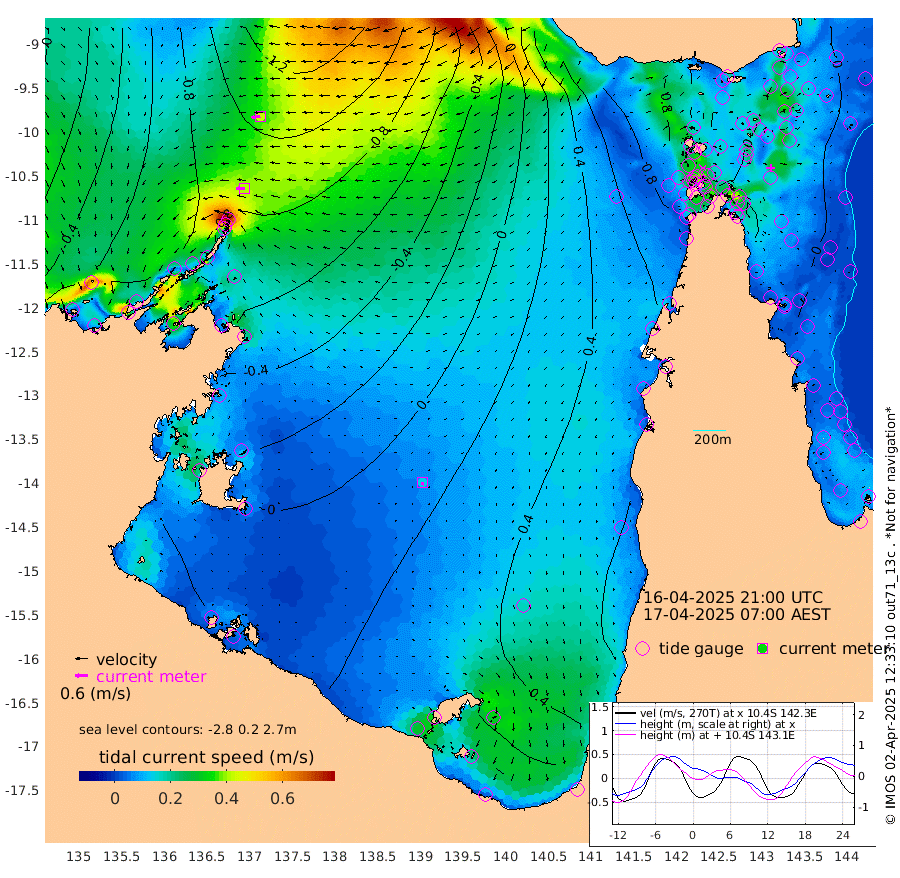 40cm/s -90T +3cm/s rms + 7cm/s -42T. ARA-GOC87 57m 14cm/s -172T +3cm/s rms + 2cm/s -2T. ARA-GOC87 60m 42cm/s -100T +2cm/s rms + 3cm/s 61T. ARA-GOC87 47m -15cm Daru -17cm Bobo Island 11cm Meer Island Barge 1cm Bramble Cay -6cm Unnamed Cay -2cm Pearce Cay 1cm Stephens Island -6cm Merrie England Shoals -13cm Mutacomal Reef -1cm Darnley Island Barge 17cm East Cay -7cm Yorke Island Barge -1cm Rennel Island -5cm Aureed Island 0cm Dungeness Reef -24cm Zagai Island -9cm Yam Island -5cm Dauan Island -11cm Saibai Island 6cm Phipi Reef -15cm Warrior Reef - West 14cm Mabuiag Island Barge -1cm Half Way Island -12cm Coconut Island 2cm Dugong Islet -7cm Poll Island 3cm Kirkcaldie Reef 10cm Suarji Island -9cm Sue Islet 77cm Hawkesbury Island 18cm Alert Patches 9cm Twin Island 55cm Badu Island 6cm St Pauls (Moa Island) 51cm Kubin (Moa Island) 26cm Ince Point 39cm Thursday Island 34cm Nardana Patches 57cm Turtle Head 57cm Round Island 81cm Goods Island 96cm Booby Island 92cm White Rocks Area 78cm Carpentaria 4cm Papou Point 87cm Bampfield Head 75cm Crab Island 88cm Red Wallis Island 68cm Packe Island 0cm Harrington Reef 91cm Herald Camp -3cm Sharp Point 56cm Red Island Point 31cm Possession Island -4cm Alpha Rock 2cm Frederick Point -20cm Wyborn Reef Light -21cm Tetley Island 8cm Triangle Reef -8cm Turtle Head Island 20cm Maclennan Cay 20cm Raine Island -1cm Mcsweeny Reef -1cm Collette Reef 9cm Shadwell Reef -3cm Hannibal Island 5cm Round Point 74cm Vrilya Point 13cm Cape Grenville 15cm Hicks Island 20cm Sir Charles Hardy Island 5cm Harvey Island 18cm Kay Reef 22cm Rocky Island 24cm Chapman Island 23cm Ham Reef 19cm Jubilee Reef 18cm Night Island 24cm Unnamed Reef No. 3 22cm Morris Island 25cm 1st 3 Mile Opening 24cm Creech Reef 20cm Fife Island 22cm Eden Reef 24cm Stanley Island 24cm Normanby River -74cm Yabooma Island -105cm Hutchison River -90cm Elcho Island -80cm North West Crocodile Island -97cm Cape Wessel -112cm Stevens Island -125cm Guluwuru Island -88cm Hopeful Bay -90cm Auster Point -95cm Two Island Bay -128cm Cadell Strait -234cm Mallison Island -102cm Melville Bay (Gove Harbour) -112cm Truant Island -78cm Cape Arnhem -47cm Cape Grey -39cm Hawk Island -19cm Milner Bay (Groote Eylandt) -4cm Cape Beatrice 31cm West Island 28cm Centre Island 36cm Mornington Island 41cm West Wellesley Islands 64cm Bountiful Island 22cm Albert River Mouth 25cm Sweers Island 42cm Karumba 63cm Nassau River Offshore 69cm Christmas Creek 68cm Archer River 64cm Boyd Point 78cm Weipa (Humbug Point) 52cm Pennefather River 74cm Cullen Point