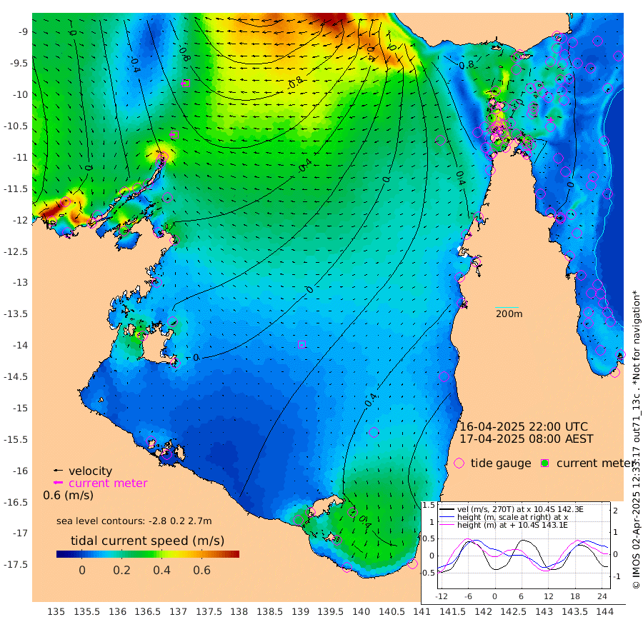 37cm/s -91T +3cm/s rms + 7cm/s -42T. ARA-GOC87 57m 13cm/s -149T +3cm/s rms + 2cm/s -2T. ARA-GOC87 60m 36cm/s -101T +2cm/s rms + 3cm/s 61T. ARA-GOC87 47m 1cm Daru -3cm Bobo Island 17cm Meer Island Barge 14cm Bramble Cay 8cm Unnamed Cay 13cm Pearce Cay 15cm Stephens Island 8cm Merrie England Shoals 1cm Mutacomal Reef 8cm Darnley Island Barge 24cm East Cay 3cm Yorke Island Barge 13cm Rennel Island 5cm Aureed Island 14cm Dungeness Reef -16cm Zagai Island 1cm Yam Island 1cm Dauan Island -13cm Saibai Island 18cm Phipi Reef -5cm Warrior Reef - West 14cm Mabuiag Island Barge 13cm Half Way Island -1cm Coconut Island 15cm Dugong Islet 4cm Poll Island 14cm Kirkcaldie Reef 17cm Suarji Island -4cm Sue Islet 76cm Hawkesbury Island 22cm Alert Patches 14cm Twin Island 57cm Badu Island 11cm St Pauls (Moa Island) 53cm Kubin (Moa Island) 28cm Ince Point 38cm Thursday Island 35cm Nardana Patches 57cm Turtle Head 56cm Round Island 78cm Goods Island 84cm Booby Island 85cm White Rocks Area 46cm Carpentaria 11cm Papou Point 71cm Bampfield Head 64cm Crab Island 76cm Red Wallis Island 64cm Packe Island 12cm Harrington Reef 81cm Herald Camp -4cm Sharp Point 56cm Red Island Point 33cm Possession Island -2cm Alpha Rock 10cm Frederick Point -7cm Wyborn Reef Light -9cm Tetley Island 12cm Triangle Reef 9cm Turtle Head Island 25cm Maclennan Cay 25cm Raine Island 10cm Mcsweeny Reef 8cm Collette Reef 14cm Shadwell Reef 8cm Hannibal Island 17cm Round Point 55cm Vrilya Point 21cm Cape Grenville 24cm Hicks Island 25cm Sir Charles Hardy Island 7cm Harvey Island 23cm Kay Reef 27cm Rocky Island 24cm Chapman Island 23cm Ham Reef 23cm Jubilee Reef 21cm Night Island 24cm Unnamed Reef No. 3 28cm Morris Island 29cm 1st 3 Mile Opening 27cm Creech Reef 24cm Fife Island 28cm Eden Reef 28cm Stanley Island 32cm Normanby River 2cm Yabooma Island -13cm Hutchison River -12cm Elcho Island -2cm North West Crocodile Island -60cm Cape Wessel -46cm Stevens Island -88cm Guluwuru Island -32cm Hopeful Bay -43cm Auster Point -45cm Two Island Bay -55cm Cadell Strait -245cm Mallison Island -65cm Melville Bay (Gove Harbour) -77cm Truant Island -57cm Cape Arnhem -28cm Cape Grey -24cm Hawk Island -11cm Milner Bay (Groote Eylandt) 5cm Cape Beatrice 27cm West Island 21cm Centre Island 44cm Mornington Island 46cm West Wellesley Islands 85cm Bountiful Island 61cm Albert River Mouth 60cm Sweers Island 77cm Karumba 68cm Nassau River Offshore 66cm Christmas Creek 59cm Archer River 50cm Boyd Point 68cm Weipa (Humbug Point) 38cm Pennefather River 54cm Cullen Point