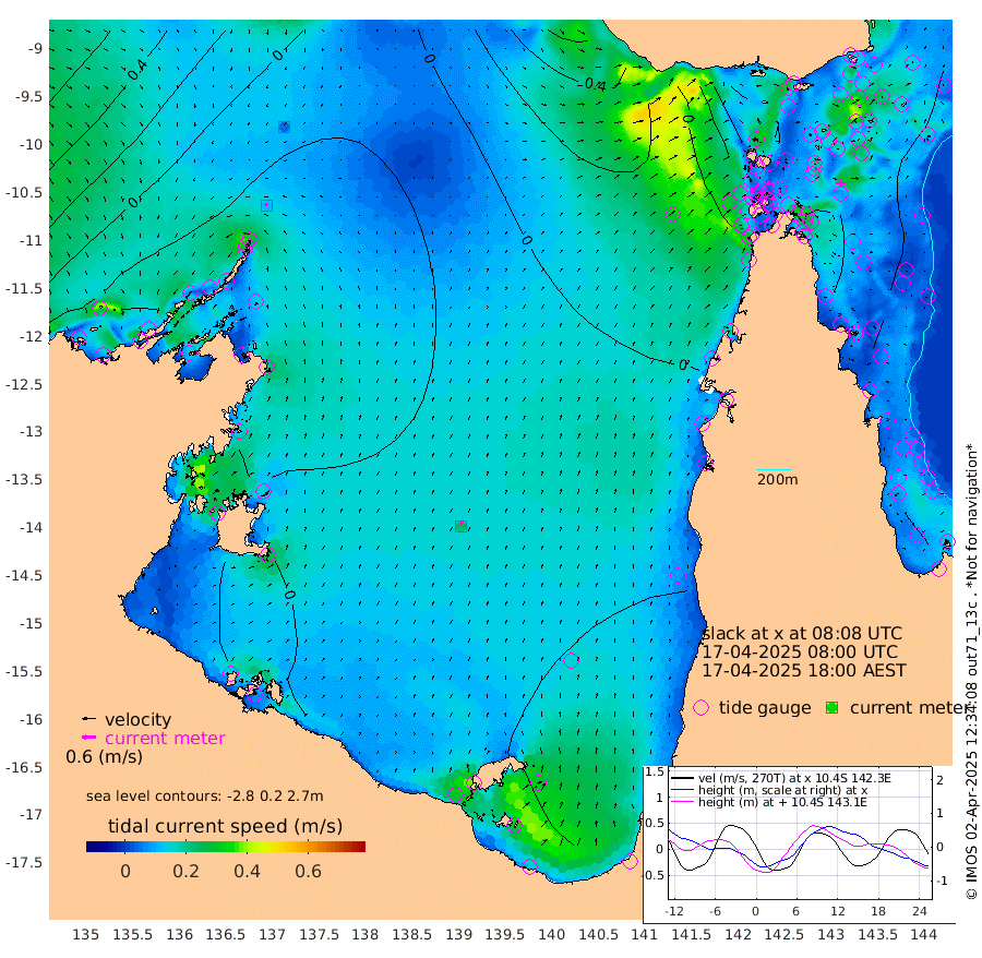 11cm/s -44T +3cm/s rms + 7cm/s -42T. ARA-GOC87 57m 24cm/s 8T +3cm/s rms + 2cm/s -2T. ARA-GOC87 60m 4cm/s -58T +2cm/s rms + 3cm/s 61T. ARA-GOC87 47m -104cm Daru -95cm Bobo Island -54cm Meer Island Barge -71cm Bramble Cay -91cm Unnamed Cay -91cm Pearce Cay -79cm Stephens Island -82cm Merrie England Shoals -97cm Mutacomal Reef -77cm Darnley Island Barge -56cm East Cay -88cm Yorke Island Barge -88cm Rennel Island -87cm Aureed Island -104cm Dungeness Reef -108cm Zagai Island -106cm Yam Island -126cm Dauan Island -112cm Saibai Island -145cm Phipi Reef -123cm Warrior Reef - West -87cm Mabuiag Island Barge -82cm Half Way Island -96cm Coconut Island -89cm Dugong Islet -97cm Poll Island -97cm Kirkcaldie Reef -104cm Suarji Island -97cm Sue Islet -69cm Hawkesbury Island -96cm Alert Patches -92cm Twin Island -84cm Badu Island -100cm St Pauls (Moa Island) -76cm Kubin (Moa Island) -84cm Ince Point -75cm Thursday Island -79cm Nardana Patches -77cm Turtle Head -72cm Round Island -60cm Goods Island -34cm Booby Island -34cm White Rocks Area 16cm Carpentaria -83cm Papou Point -45cm Bampfield Head -21cm Crab Island -27cm Red Wallis Island -63cm Packe Island -90cm Harrington Reef -62cm Herald Camp -26cm Sharp Point -64cm Red Island Point -82cm Possession Island -80cm Alpha Rock -94cm Frederick Point -98cm Wyborn Reef Light -99cm Tetley Island -57cm Triangle Reef -98cm Turtle Head Island -52cm Maclennan Cay -40cm Raine Island -80cm Mcsweeny Reef -75cm Collette Reef -57cm Shadwell Reef -81cm Hannibal Island -70cm Round Point 1cm Vrilya Point -59cm Cape Grenville -61cm Hicks Island -66cm Sir Charles Hardy Island -19cm Harvey Island -50cm Kay Reef -49cm Rocky Island -42cm Chapman Island -38cm Ham Reef -44cm Jubilee Reef -40cm Night Island -35cm Unnamed Reef No. 3 -46cm Morris Island -45cm 1st 3 Mile Opening -43cm Creech Reef -38cm Fife Island -48cm Eden Reef -42cm Stanley Island -44cm Normanby River -47cm Yabooma Island -74cm Hutchison River -44cm Elcho Island -42cm North West Crocodile Island -23cm Cape Wessel -42cm Stevens Island -62cm Guluwuru Island -37cm Hopeful Bay -33cm Auster Point -32cm Two Island Bay -72cm Cadell Strait -75cm Mallison Island -55cm Melville Bay (Gove Harbour) -53cm Truant Island -37cm Cape Arnhem -24cm Cape Grey -18cm Hawk Island 21cm Milner Bay (Groote Eylandt) 21cm Cape Beatrice 48cm West Island 51cm Centre Island -7cm Mornington Island 3cm West Wellesley Islands -39cm Bountiful Island -15cm Albert River Mouth -11cm Sweers Island -26cm Karumba -35cm Nassau River Offshore -46cm Christmas Creek -34cm Archer River -27cm Boyd Point -37cm Weipa (Humbug Point) -7cm Pennefather River -10cm Cullen Point