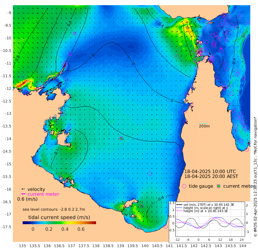 2cm/s 150T +3cm/s rms + 7cm/s -42T. ARA-GOC87 57m 28cm/s 7T +3cm/s rms + 2cm/s -2T. ARA-GOC87 60m 11cm/s 135T +2cm/s rms + 3cm/s 61T. ARA-GOC87 47m -63cm Daru -53cm Bobo Island -29cm Meer Island Barge -37cm Bramble Cay -52cm Unnamed Cay -45cm Pearce Cay -40cm Stephens Island -45cm Merrie England Shoals -58cm Mutacomal Reef -47cm Darnley Island Barge -25cm East Cay -56cm Yorke Island Barge -44cm Rennel Island -51cm Aureed Island -60cm Dungeness Reef -76cm Zagai Island -69cm Yam Island -103cm Dauan Island -101cm Saibai Island -110cm Phipi Reef -92cm Warrior Reef - West -55cm Mabuiag Island Barge -41cm Half Way Island -51cm Coconut Island -49cm Dugong Islet -56cm Poll Island -53cm Kirkcaldie Reef -60cm Suarji Island -67cm Sue Islet -5cm Hawkesbury Island -50cm Alert Patches -46cm Twin Island -21cm Badu Island -56cm St Pauls (Moa Island) -17cm Kubin (Moa Island) -38cm Ince Point -26cm Thursday Island -31cm Nardana Patches -22cm Turtle Head -10cm Round Island 4cm Goods Island 27cm Booby Island 32cm White Rocks Area 47cm Carpentaria -37cm Papou Point 27cm Bampfield Head 30cm Crab Island 28cm Red Wallis Island -4cm Packe Island -41cm Harrington Reef -3cm Herald Camp -22cm Sharp Point -12cm Red Island Point -29cm Possession Island -47cm Alpha Rock -47cm Frederick Point -54cm Wyborn Reef Light -55cm Tetley Island -33cm Triangle Reef -41cm Turtle Head Island -24cm Maclennan Cay -15cm Raine Island -44cm Mcsweeny Reef -45cm Collette Reef -35cm Shadwell Reef -47cm Hannibal Island -32cm Round Point 37cm Vrilya Point -30cm Cape Grenville -28cm Hicks Island -39cm Sir Charles Hardy Island -9cm Harvey Island -25cm Kay Reef -24cm Rocky Island -22cm Chapman Island -19cm Ham Reef -22cm Jubilee Reef -18cm Night Island -16cm Unnamed Reef No. 3 -20cm Morris Island -18cm 1st 3 Mile Opening -19cm Creech Reef -15cm Fife Island -22cm Eden Reef -19cm Stanley Island -15cm Normanby River 59cm Yabooma Island 51cm Hutchison River 58cm Elcho Island 57cm North West Crocodile Island 31cm Cape Wessel 42cm Stevens Island -23cm Guluwuru Island 35cm Hopeful Bay 36cm Auster Point 35cm Two Island Bay 16cm Cadell Strait -135cm Mallison Island -14cm Melville Bay (Gove Harbour) -8cm Truant Island -15cm Cape Arnhem -13cm Cape Grey -17cm Hawk Island 7cm Milner Bay (Groote Eylandt) 1cm Cape Beatrice 6cm West Island 9cm Centre Island -48cm Mornington Island -44cm West Wellesley Islands -75cm Bountiful Island -55cm Albert River Mouth -57cm Sweers Island -62cm Karumba -61cm Nassau River Offshore -57cm Christmas Creek -26cm Archer River -14cm Boyd Point -16cm Weipa (Humbug Point) 12cm Pennefather River 17cm Cullen Point