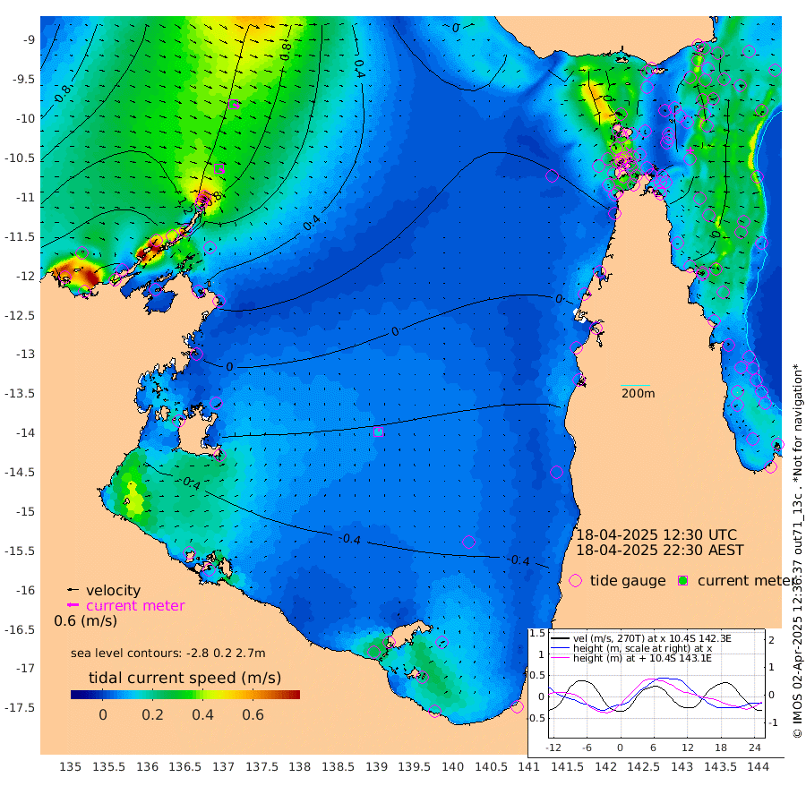 32cm/s 121T +3cm/s rms + 7cm/s -42T. ARA-GOC87 57m 15cm/s 9T +3cm/s rms + 2cm/s -2T. ARA-GOC87 60m 35cm/s 116T +2cm/s rms + 3cm/s 61T. ARA-GOC87 47m 7cm Daru 12cm Bobo Island 12cm Meer Island Barge 11cm Bramble Cay 7cm Unnamed Cay 17cm Pearce Cay 15cm Stephens Island 5cm Merrie England Shoals 1cm Mutacomal Reef 6cm Darnley Island Barge 13cm East Cay 4cm Yorke Island Barge 13cm Rennel Island 6cm Aureed Island 12cm Dungeness Reef 3cm Zagai Island 8cm Yam Island -6cm Dauan Island -23cm Saibai Island -5cm Phipi Reef -6cm Warrior Reef - West 8cm Mabuiag Island Barge 16cm Half Way Island 15cm Coconut Island 10cm Dugong Islet 12cm Poll Island 13cm Kirkcaldie Reef 9cm Suarji Island -5cm Sue Islet 62cm Hawkesbury Island 14cm Alert Patches 18cm Twin Island 57cm Badu Island 17cm St Pauls (Moa Island) 57cm Kubin (Moa Island) 26cm Ince Point 34cm Thursday Island 31cm Nardana Patches 44cm Turtle Head 61cm Round Island 66cm Goods Island 73cm Booby Island 74cm White Rocks Area 51cm Carpentaria 27cm Papou Point 88cm Bampfield Head 66cm Crab Island 66cm Red Wallis Island 56cm Packe Island 17cm Harrington Reef 62cm Herald Camp -8cm Sharp Point 38cm Red Island Point 37cm Possession Island 4cm Alpha Rock 16cm Frederick Point 12cm Wyborn Reef Light 11cm Tetley Island 7cm Triangle Reef 35cm Turtle Head Island 13cm Maclennan Cay 16cm Raine Island 8cm Mcsweeny Reef 2cm Collette Reef 4cm Shadwell Reef 4cm Hannibal Island 13cm Round Point 53cm Vrilya Point 6cm Cape Grenville 16cm Hicks Island 5cm Sir Charles Hardy Island 4cm Harvey Island 4cm Kay Reef 8cm Rocky Island 4cm Chapman Island 5cm Ham Reef 10cm Jubilee Reef 10cm Night Island 5cm Unnamed Reef No. 3 13cm Morris Island 19cm 1st 3 Mile Opening 12cm Creech Reef 8cm Fife Island 14cm Eden Reef 9cm Stanley Island 13cm Normanby River 172cm Yabooma Island 200cm Hutchison River 170cm Elcho Island 161cm North West Crocodile Island 104cm Cape Wessel 146cm Stevens Island 82cm Guluwuru Island 124cm Hopeful Bay 122cm Auster Point 129cm Two Island Bay 155cm Cadell Strait -45cm Mallison Island 77cm Melville Bay (Gove Harbour) 87cm Truant Island 47cm Cape Arnhem 17cm Cape Grey -1cm Hawk Island -21cm Milner Bay (Groote Eylandt) -34cm Cape Beatrice -75cm West Island -72cm Centre Island -96cm Mornington Island -103cm West Wellesley Islands -114cm Bountiful Island -100cm Albert River Mouth -115cm Sweers Island -104cm Karumba -82cm Nassau River Offshore -55cm Christmas Creek -14cm Archer River 4cm Boyd Point 9cm Weipa (Humbug Point) 25cm Pennefather River 36cm Cullen Point