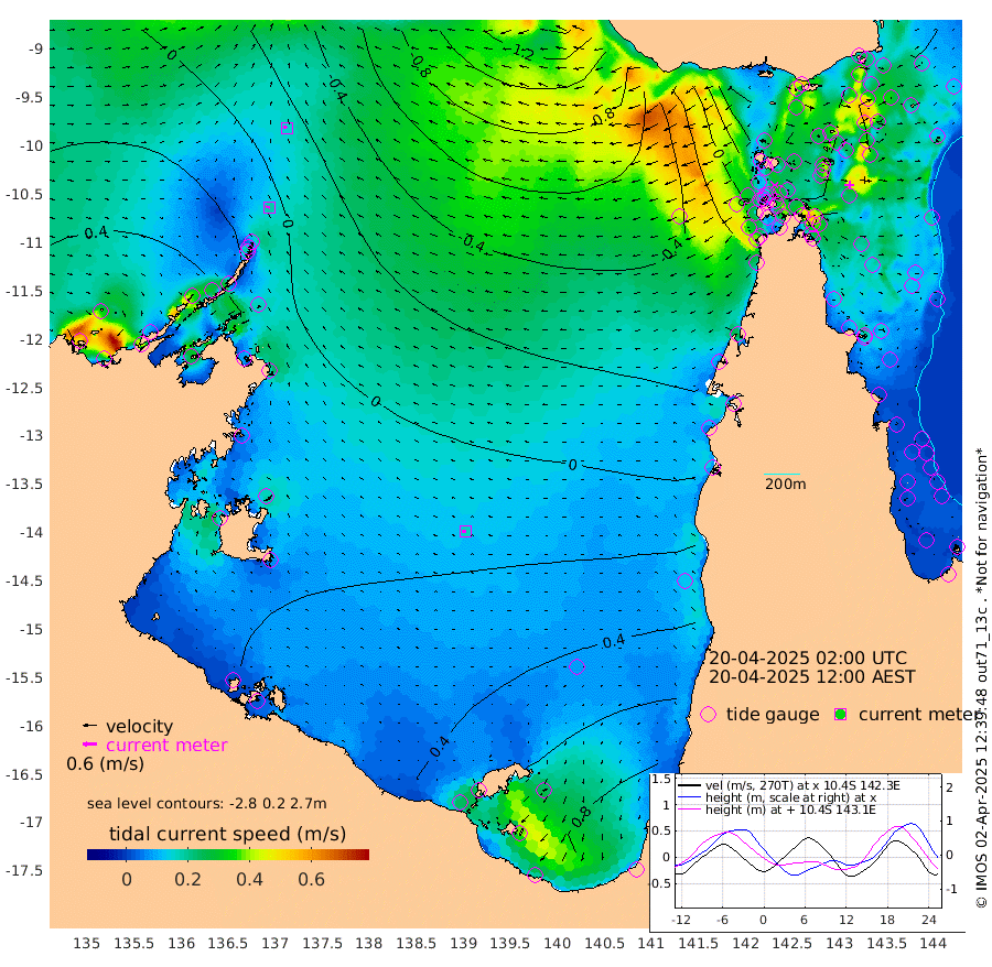 18cm/s -79T +3cm/s rms + 7cm/s -42T. ARA-GOC87 57m 17cm/s -105T +3cm/s rms + 2cm/s -2T. ARA-GOC87 60m 15cm/s -67T +2cm/s rms + 3cm/s 61T. ARA-GOC87 47m -22cm Daru -24cm Bobo Island -29cm Meer Island Barge -36cm Bramble Cay -38cm Unnamed Cay -22cm Pearce Cay -33cm Stephens Island -48cm Merrie England Shoals -37cm Mutacomal Reef -33cm Darnley Island Barge -34cm East Cay -27cm Yorke Island Barge -28cm Rennel Island -21cm Aureed Island -6cm Dungeness Reef 8cm Zagai Island 5cm Yam Island 51cm Dauan Island 30cm Saibai Island 67cm Phipi Reef 23cm Warrior Reef - West 12cm Mabuiag Island Barge -30cm Half Way Island -24cm Coconut Island -25cm Dugong Islet -9cm Poll Island -14cm Kirkcaldie Reef 10cm Suarji Island -14cm Sue Islet -6cm Hawkesbury Island -6cm Alert Patches -9cm Twin Island 6cm Badu Island 3cm St Pauls (Moa Island) 1cm Kubin (Moa Island) -3cm Ince Point -6cm Thursday Island -3cm Nardana Patches 1cm Turtle Head -3cm Round Island -6cm Goods Island -22cm Booby Island -24cm White Rocks Area -66cm Carpentaria -4cm Papou Point -40cm Bampfield Head -22cm Crab Island -27cm Red Wallis Island -10cm Packe Island -31cm Harrington Reef -8cm Herald Camp 3cm Sharp Point -1cm Red Island Point -1cm Possession Island -25cm Alpha Rock -19cm Frederick Point -37cm Wyborn Reef Light -34cm Tetley Island -25cm Triangle Reef -35cm Turtle Head Island -28cm Maclennan Cay -28cm Raine Island -35cm Mcsweeny Reef -37cm Collette Reef -32cm Shadwell Reef -41cm Hannibal Island -40cm Round Point -40cm Vrilya Point -41cm Cape Grenville -31cm Hicks Island -35cm Sir Charles Hardy Island -10cm Harvey Island -46cm Kay Reef -30cm Rocky Island -34cm Chapman Island -35cm Ham Reef -33cm Jubilee Reef -28cm Night Island -38cm Unnamed Reef No. 3 -33cm Morris Island -29cm 1st 3 Mile Opening -33cm Creech Reef -35cm Fife Island -35cm Eden Reef -40cm Stanley Island -41cm Normanby River 48cm Yabooma Island 69cm Hutchison River 57cm Elcho Island 63cm North West Crocodile Island -12cm Cape Wessel 20cm Stevens Island -8cm Guluwuru Island 24cm Hopeful Bay 8cm Auster Point 13cm Two Island Bay 41cm Cadell Strait -145cm Mallison Island 4cm Melville Bay (Gove Harbour) -7cm Truant Island -1cm Cape Arnhem 14cm Cape Grey 27cm Hawk Island 24cm Milner Bay (Groote Eylandt) 34cm Cape Beatrice 34cm West Island 33cm Centre Island 90cm Mornington Island 79cm West Wellesley Islands 133cm Bountiful Island 166cm Albert River Mouth 170cm Sweers Island 171cm Karumba 79cm Nassau River Offshore 46cm Christmas Creek 12cm Archer River -7cm Boyd Point 7cm Weipa (Humbug Point) -23cm Pennefather River -25cm Cullen Point