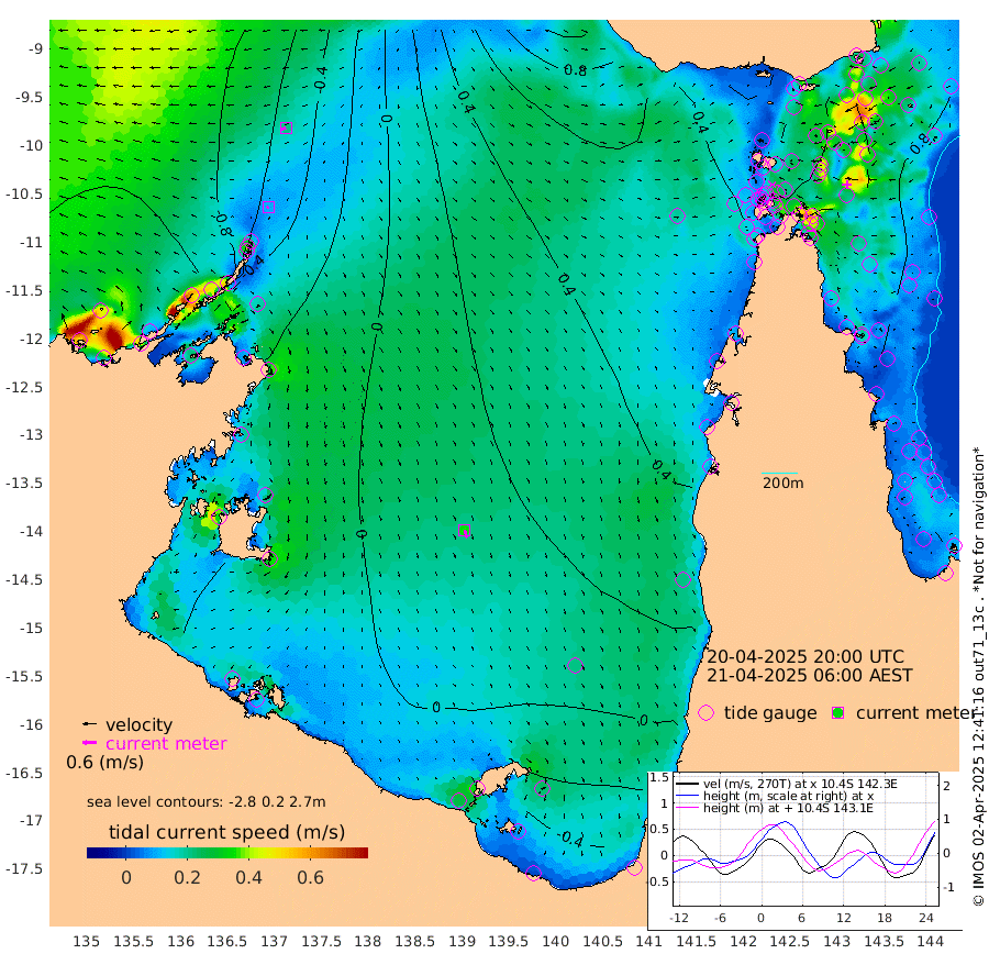 10cm/s -117T +3cm/s rms + 7cm/s -42T. ARA-GOC87 57m 35cm/s 164T +3cm/s rms + 2cm/s -2T. ARA-GOC87 60m 21cm/s -106T +2cm/s rms + 3cm/s 61T. ARA-GOC87 47m 93cm Daru 81cm Bobo Island 73cm Meer Island Barge 90cm Bramble Cay 103cm Unnamed Cay 84cm Pearce Cay 92cm Stephens Island 111cm Merrie England Shoals 108cm Mutacomal Reef 89cm Darnley Island Barge 80cm East Cay 88cm Yorke Island Barge 92cm Rennel Island 81cm Aureed Island 80cm Dungeness Reef 53cm Zagai Island 65cm Yam Island 40cm Dauan Island 43cm Saibai Island 37cm Phipi Reef 61cm Warrior Reef - West 44cm Mabuiag Island Barge 92cm Half Way Island 82cm Coconut Island 94cm Dugong Islet 74cm Poll Island 83cm Kirkcaldie Reef 58cm Suarji Island 77cm Sue Islet 71cm Hawkesbury Island 75cm Alert Patches 72cm Twin Island 53cm Badu Island 63cm St Pauls (Moa Island) 64cm Kubin (Moa Island) 66cm Ince Point 66cm Thursday Island 64cm Nardana Patches 67cm Turtle Head 61cm Round Island 66cm Goods Island 67cm Booby Island 64cm White Rocks Area 69cm Carpentaria 50cm Papou Point 74cm Bampfield Head 53cm Crab Island 72cm Red Wallis Island 81cm Packe Island 94cm Harrington Reef 79cm Herald Camp 17cm Sharp Point 51cm Red Island Point 56cm Possession Island 80cm Alpha Rock 82cm Frederick Point 99cm Wyborn Reef Light 95cm Tetley Island 71cm Triangle Reef 92cm Turtle Head Island 74cm Maclennan Cay 63cm Raine Island 95cm Mcsweeny Reef 94cm Collette Reef 79cm Shadwell Reef 101cm Hannibal Island 96cm Round Point 61cm Vrilya Point 94cm Cape Grenville 80cm Hicks Island 92cm Sir Charles Hardy Island 27cm Harvey Island 92cm Kay Reef 74cm Rocky Island 75cm Chapman Island 72cm Ham Reef 72cm Jubilee Reef 69cm Night Island 75cm Unnamed Reef No. 3 76cm Morris Island 68cm 1st 3 Mile Opening 74cm Creech Reef 78cm Fife Island 80cm Eden Reef 84cm Stanley Island 84cm Normanby River -114cm Yabooma Island -140cm Hutchison River -129cm Elcho Island -129cm North West Crocodile Island -61cm Cape Wessel -94cm Stevens Island -41cm Guluwuru Island -85cm Hopeful Bay -78cm Auster Point -79cm Two Island Bay -103cm Cadell Strait 126cm Mallison Island -45cm Melville Bay (Gove Harbour) -43cm Truant Island -29cm Cape Arnhem -39cm Cape Grey -37cm Hawk Island -52cm Milner Bay (Groote Eylandt) -43cm Cape Beatrice -36cm West Island -41cm Centre Island -31cm Mornington Island -23cm West Wellesley Islands -49cm Bountiful Island -106cm Albert River Mouth -118cm Sweers Island -92cm Karumba 17cm Nassau River Offshore 52cm Christmas Creek 56cm Archer River 61cm Boyd Point 59cm Weipa (Humbug Point) 53cm Pennefather River 63cm Cullen Point