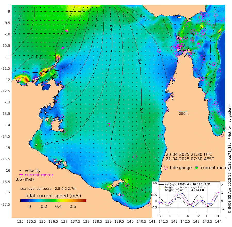 31cm/s -93T +3cm/s rms + 7cm/s -42T. ARA-GOC87 57m 32cm/s 171T +3cm/s rms + 2cm/s -2T. ARA-GOC87 60m 41cm/s -99T +2cm/s rms + 3cm/s 61T. ARA-GOC87 47m 91cm Daru 78cm Bobo Island 47cm Meer Island Barge 69cm Bramble Cay 89cm Unnamed Cay 79cm Pearce Cay 78cm Stephens Island 96cm Merrie England Shoals 106cm Mutacomal Reef 68cm Darnley Island Barge 59cm East Cay 75cm Yorke Island Barge 90cm Rennel Island 79cm Aureed Island 88cm Dungeness Reef 68cm Zagai Island 84cm Yam Island 64cm Dauan Island 60cm Saibai Island 70cm Phipi Reef 82cm Warrior Reef - West 70cm Mabuiag Island Barge 87cm Half Way Island 90cm Coconut Island 95cm Dugong Islet 90cm Poll Island 96cm Kirkcaldie Reef 93cm Suarji Island 85cm Sue Islet 98cm Hawkesbury Island 104cm Alert Patches 99cm Twin Island 81cm Badu Island 93cm St Pauls (Moa Island) 92cm Kubin (Moa Island) 96cm Ince Point 96cm Thursday Island 95cm Nardana Patches 97cm Turtle Head 90cm Round Island 92cm Goods Island 91cm Booby Island 94cm White Rocks Area 79cm Carpentaria 75cm Papou Point 94cm Bampfield Head 73cm Crab Island 100cm Red Wallis Island 112cm Packe Island 103cm Harrington Reef 106cm Herald Camp 27cm Sharp Point 81cm Red Island Point 85cm Possession Island 98cm Alpha Rock 101cm Frederick Point 99cm Wyborn Reef Light 100cm Tetley Island 56cm Triangle Reef 89cm Turtle Head Island 56cm Maclennan Cay 40cm Raine Island 84cm Mcsweeny Reef 78cm Collette Reef 56cm Shadwell Reef 82cm Hannibal Island 78cm Round Point 74cm Vrilya Point 75cm Cape Grenville 60cm Hicks Island 67cm Sir Charles Hardy Island 21cm Harvey Island 67cm Kay Reef 50cm Rocky Island 51cm Chapman Island 46cm Ham Reef 46cm Jubilee Reef 50cm Night Island 52cm Unnamed Reef No. 3 51cm Morris Island 41cm 1st 3 Mile Opening 49cm Creech Reef 57cm Fife Island 46cm Eden Reef 55cm Stanley Island 56cm Normanby River -136cm Yabooma Island -165cm Hutchison River -148cm Elcho Island -141cm North West Crocodile Island -101cm Cape Wessel -128cm Stevens Island -104cm Guluwuru Island -113cm Hopeful Bay -112cm Auster Point -118cm Two Island Bay -154cm Cadell Strait -30cm Mallison Island -90cm Melville Bay (Gove Harbour) -94cm Truant Island -64cm Cape Arnhem -57cm Cape Grey -41cm Hawk Island -45cm Milner Bay (Groote Eylandt) -28cm Cape Beatrice -3cm West Island -8cm Centre Island 9cm Mornington Island 12cm West Wellesley Islands -1cm Bountiful Island -51cm Albert River Mouth -61cm Sweers Island -29cm Karumba 52cm Nassau River Offshore 74cm Christmas Creek 69cm Archer River 69cm Boyd Point 71cm Weipa (Humbug Point) 60cm Pennefather River 77cm Cullen Point