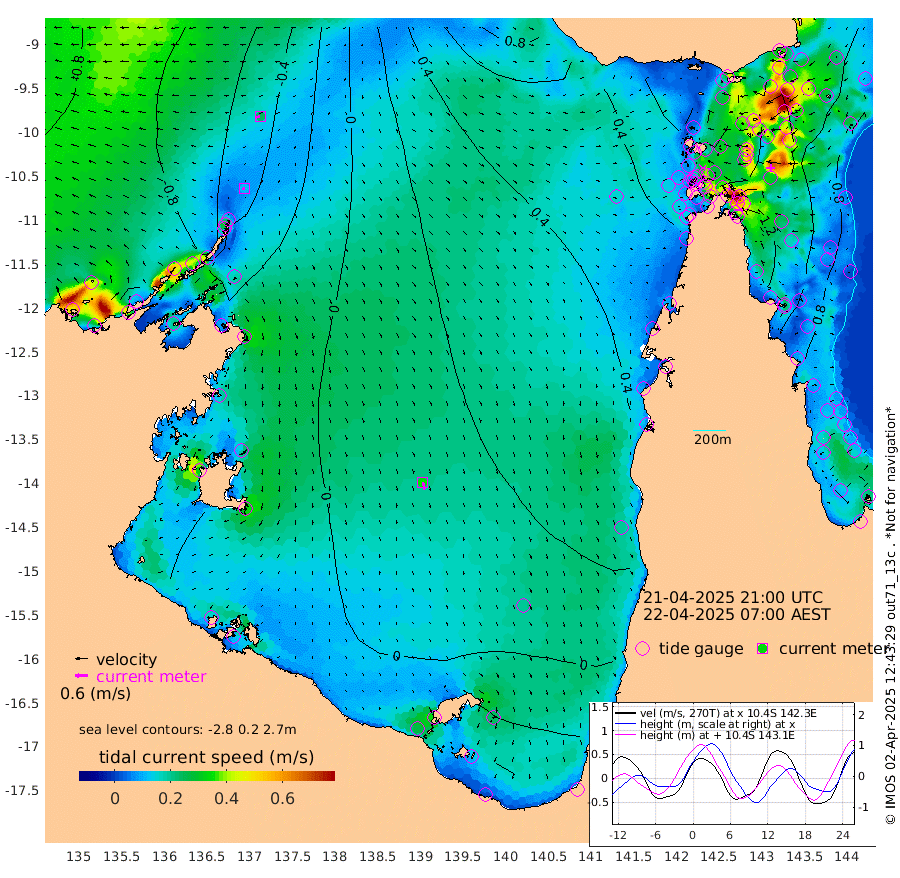 12cm/s -112T +3cm/s rms + 7cm/s -42T. ARA-GOC87 57m 35cm/s 166T +3cm/s rms + 2cm/s -2T. ARA-GOC87 60m 23cm/s -105T +2cm/s rms + 3cm/s 61T. ARA-GOC87 47m 121cm Daru 108cm Bobo Island 81cm Meer Island Barge 108cm Bramble Cay 127cm Unnamed Cay 110cm Pearce Cay 116cm Stephens Island 137cm Merrie England Shoals 138cm Mutacomal Reef 106cm Darnley Island Barge 92cm East Cay 108cm Yorke Island Barge 119cm Rennel Island 104cm Aureed Island 106cm Dungeness Reef 73cm Zagai Island 88cm Yam Island 49cm Dauan Island 47cm Saibai Island 51cm Phipi Reef 82cm Warrior Reef - West 53cm Mabuiag Island Barge 119cm Half Way Island 109cm Coconut Island 122cm Dugong Islet 100cm Poll Island 111cm Kirkcaldie Reef 81cm Suarji Island 97cm Sue Islet 78cm Hawkesbury Island 96cm Alert Patches 96cm Twin Island 60cm Badu Island 86cm St Pauls (Moa Island) 76cm Kubin (Moa Island) 84cm Ince Point 81cm Thursday Island 80cm Nardana Patches 79cm Turtle Head 66cm Round Island 71cm Goods Island 65cm Booby Island 69cm White Rocks Area 58cm Carpentaria 71cm Papou Point 66cm Bampfield Head 51cm Crab Island 74cm Red Wallis Island 91cm Packe Island 126cm Harrington Reef 78cm Herald Camp 23cm Sharp Point 63cm Red Island Point 69cm Possession Island 102cm Alpha Rock 109cm Frederick Point 127cm Wyborn Reef Light 124cm Tetley Island 80cm Triangle Reef 122cm Turtle Head Island 85cm Maclennan Cay 67cm Raine Island 117cm Mcsweeny Reef 112cm Collette Reef 87cm Shadwell Reef 121cm Hannibal Island 115cm Round Point 56cm Vrilya Point 110cm Cape Grenville 93cm Hicks Island 102cm Sir Charles Hardy Island 32cm Harvey Island 103cm Kay Reef 80cm Rocky Island 77cm Chapman Island 74cm Ham Reef 77cm Jubilee Reef 76cm Night Island 79cm Unnamed Reef No. 3 84cm Morris Island 72cm 1st 3 Mile Opening 79cm Creech Reef 87cm Fife Island 85cm Eden Reef 91cm Stanley Island 94cm Normanby River -94cm Yabooma Island -114cm Hutchison River -108cm Elcho Island -105cm North West Crocodile Island -54cm Cape Wessel -77cm Stevens Island -37cm Guluwuru Island -74cm Hopeful Bay -69cm Auster Point -68cm Two Island Bay -86cm Cadell Strait 99cm Mallison Island -40cm Melville Bay (Gove Harbour) -40cm Truant Island -28cm Cape Arnhem -37cm Cape Grey -35cm Hawk Island -51cm Milner Bay (Groote Eylandt) -39cm Cape Beatrice -32cm West Island -40cm Centre Island -25cm Mornington Island -18cm West Wellesley Islands -41cm Bountiful Island -93cm Albert River Mouth -110cm Sweers Island -79cm Karumba 23cm Nassau River Offshore 54cm Christmas Creek 52cm Archer River 55cm Boyd Point 54cm Weipa (Humbug Point) 48cm Pennefather River 55cm Cullen Point