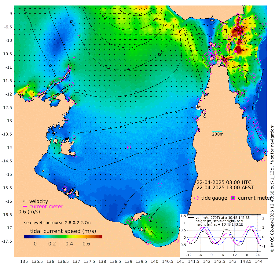 23cm/s -85T +3cm/s rms + 7cm/s -42T. ARA-GOC87 57m 16cm/s -111T +3cm/s rms + 2cm/s -2T. ARA-GOC87 60m 20cm/s -81T +2cm/s rms + 3cm/s 61T. ARA-GOC87 47m -79cm Daru -81cm Bobo Island -65cm Meer Island Barge -86cm Bramble Cay -96cm Unnamed Cay -78cm Pearce Cay -88cm Stephens Island -106cm Merrie England Shoals -95cm Mutacomal Reef -82cm Darnley Island Barge -75cm East Cay -78cm Yorke Island Barge -83cm Rennel Island -70cm Aureed Island -56cm Dungeness Reef -26cm Zagai Island -32cm Yam Island 43cm Dauan Island 22cm Saibai Island 45cm Phipi Reef -9cm Warrior Reef - West 4cm Mabuiag Island Barge -84cm Half Way Island -73cm Coconut Island -79cm Dugong Islet -50cm Poll Island -62cm Kirkcaldie Reef -23cm Suarji Island -54cm Sue Islet -3cm Hawkesbury Island -33cm Alert Patches -39cm Twin Island 9cm Badu Island -24cm St Pauls (Moa Island) -3cm Kubin (Moa Island) -19cm Ince Point -15cm Thursday Island -13cm Nardana Patches -1cm Turtle Head -2cm Round Island 4cm Goods Island 2cm Booby Island -8cm White Rocks Area -29cm Carpentaria -31cm Papou Point -21cm Bampfield Head 2cm Crab Island -2cm Red Wallis Island -2cm Packe Island -89cm Harrington Reef 6cm Herald Camp -3cm Sharp Point -10cm Red Island Point -19cm Possession Island -54cm Alpha Rock -60cm Frederick Point -93cm Wyborn Reef Light -86cm Tetley Island -54cm Triangle Reef -97cm Turtle Head Island -63cm Maclennan Cay -54cm Raine Island -86cm Mcsweeny Reef -84cm Collette Reef -65cm Shadwell Reef -94cm Hannibal Island -90cm Round Point -10cm Vrilya Point -85cm Cape Grenville -73cm Hicks Island -74cm Sir Charles Hardy Island -24cm Harvey Island -85cm Kay Reef -62cm Rocky Island -59cm Chapman Island -60cm Ham Reef -63cm Jubilee Reef -54cm Night Island -62cm Unnamed Reef No. 3 -67cm Morris Island -57cm 1st 3 Mile Opening -62cm Creech Reef -66cm Fife Island -69cm Eden Reef -73cm Stanley Island -81cm Normanby River -7cm Yabooma Island 0cm Hutchison River 5cm Elcho Island 10cm North West Crocodile Island -48cm Cape Wessel -30cm Stevens Island -51cm Guluwuru Island -17cm Hopeful Bay -33cm Auster Point -28cm Two Island Bay -20cm Cadell Strait -162cm Mallison Island -34cm Melville Bay (Gove Harbour) -45cm Truant Island -25cm Cape Arnhem -12cm Cape Grey 12cm Hawk Island 16cm Milner Bay (Groote Eylandt) 28cm Cape Beatrice 36cm West Island 40cm Centre Island 87cm Mornington Island 77cm West Wellesley Islands 112cm Bountiful Island 153cm Albert River Mouth 153cm Sweers Island 156cm Karumba 79cm Nassau River Offshore 52cm Christmas Creek 25cm Archer River 11cm Boyd Point 25cm Weipa (Humbug Point) 0cm Pennefather River 5cm Cullen Point