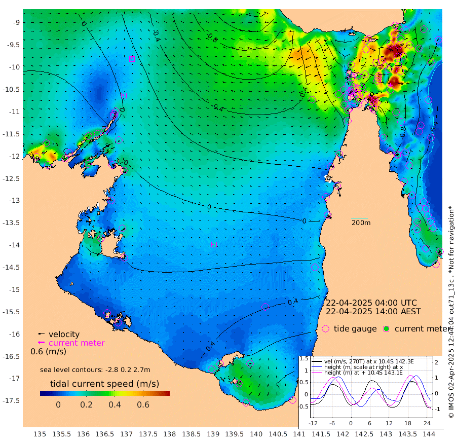 13cm/s -68T +3cm/s rms + 7cm/s -42T. ARA-GOC87 57m 16cm/s -89T +3cm/s rms + 2cm/s -2T. ARA-GOC87 60m 11cm/s -43T +2cm/s rms + 3cm/s 61T. ARA-GOC87 47m -95cm Daru -94cm Bobo Island -52cm Meer Island Barge -79cm Bramble Cay -99cm Unnamed Cay -87cm Pearce Cay -89cm Stephens Island -107cm Merrie England Shoals -112cm Mutacomal Reef -77cm Darnley Island Barge -64cm East Cay -83cm Yorke Island Barge -95cm Rennel Island -83cm Aureed Island -79cm Dungeness Reef -63cm Zagai Island -73cm Yam Island -7cm Dauan Island -23cm Saibai Island -3cm Phipi Reef -52cm Warrior Reef - West -45cm Mabuiag Island Barge -95cm Half Way Island -98cm Coconut Island -97cm Dugong Islet -85cm Poll Island -93cm Kirkcaldie Reef -72cm Suarji Island -83cm Sue Islet -56cm Hawkesbury Island -81cm Alert Patches -87cm Twin Island -46cm Badu Island -76cm St Pauls (Moa Island) -55cm Kubin (Moa Island) -70cm Ince Point -67cm Thursday Island -66cm Nardana Patches -53cm Turtle Head -52cm Round Island -47cm Goods Island -49cm Booby Island -60cm White Rocks Area -69cm Carpentaria -75cm Papou Point -69cm Bampfield Head -40cm Crab Island -56cm Red Wallis Island -58cm Packe Island -113cm Harrington Reef -47cm Herald Camp -19cm Sharp Point -56cm Red Island Point -64cm Possession Island -93cm Alpha Rock -98cm Frederick Point -113cm Wyborn Reef Light -112cm Tetley Island -53cm Triangle Reef -113cm Turtle Head Island -57cm Maclennan Cay -40cm Raine Island -91cm Mcsweeny Reef -83cm Collette Reef -55cm Shadwell Reef -90cm Hannibal Island -85cm Round Point -46cm Vrilya Point -78cm Cape Grenville -65cm Hicks Island -66cm Sir Charles Hardy Island -22cm Harvey Island -72cm Kay Reef -49cm Rocky Island -46cm Chapman Island -46cm Ham Reef -49cm Jubilee Reef -44cm Night Island -50cm Unnamed Reef No. 3 -52cm Morris Island -42cm 1st 3 Mile Opening -48cm Creech Reef -52cm Fife Island -47cm Eden Reef -56cm Stanley Island -63cm Normanby River 19cm Yabooma Island 29cm Hutchison River 30cm Elcho Island 32cm North West Crocodile Island -22cm Cape Wessel 0cm Stevens Island -14cm Guluwuru Island 12cm Hopeful Bay -5cm Auster Point 1cm Two Island Bay 19cm Cadell Strait -86cm Mallison Island -5cm Melville Bay (Gove Harbour) -14cm Truant Island -3cm Cape Arnhem 8cm Cape Grey 26cm Hawk Island 30cm Milner Bay (Groote Eylandt) 38cm Cape Beatrice 39cm West Island 43cm Centre Island 91cm Mornington Island 83cm West Wellesley Islands 119cm Bountiful Island 168cm Albert River Mouth 175cm Sweers Island 165cm Karumba 71cm Nassau River Offshore 37cm Christmas Creek 8cm Archer River -11cm Boyd Point 1cm Weipa (Humbug Point) -21cm Pennefather River -30cm Cullen Point