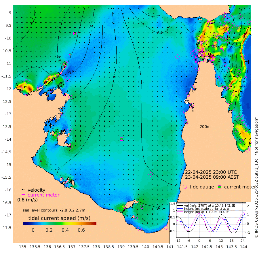 23cm/s -96T +3cm/s rms + 7cm/s -42T. ARA-GOC87 57m 31cm/s 172T +3cm/s rms + 2cm/s -2T. ARA-GOC87 60m 33cm/s -100T +2cm/s rms + 3cm/s 61T. ARA-GOC87 47m 130cm Daru 113cm Bobo Island 43cm Meer Island Barge 78cm Bramble Cay 112cm Unnamed Cay 106cm Pearce Cay 97cm Stephens Island 118cm Merrie England Shoals 142cm Mutacomal Reef 80cm Darnley Island Barge 54cm East Cay 99cm Yorke Island Barge 119cm Rennel Island 106cm Aureed Island 123cm Dungeness Reef 115cm Zagai Island 130cm Yam Island 103cm Dauan Island 95cm Saibai Island 109cm Phipi Reef 130cm Warrior Reef - West 97cm Mabuiag Island Barge 117cm Half Way Island 128cm Coconut Island 129cm Dugong Islet 132cm Poll Island 137cm Kirkcaldie Reef 132cm Suarji Island 122cm Sue Islet 92cm Hawkesbury Island 136cm Alert Patches 137cm Twin Island 88cm Badu Island 137cm St Pauls (Moa Island) 102cm Kubin (Moa Island) 123cm Ince Point 115cm Thursday Island 117cm Nardana Patches 105cm Turtle Head 86cm Round Island 82cm Goods Island 67cm Booby Island 77cm White Rocks Area 48cm Carpentaria 113cm Papou Point 58cm Bampfield Head 55cm Crab Island 82cm Red Wallis Island 112cm Packe Island 142cm Harrington Reef 83cm Herald Camp 43cm Sharp Point 89cm Red Island Point 101cm Possession Island 134cm Alpha Rock 140cm Frederick Point 138cm Wyborn Reef Light 141cm Tetley Island 57cm Triangle Reef 125cm Turtle Head Island 53cm Maclennan Cay 25cm Raine Island 104cm Mcsweeny Reef 91cm Collette Reef 52cm Shadwell Reef 96cm Hannibal Island 85cm Round Point 51cm Vrilya Point 75cm Cape Grenville 58cm Hicks Island 61cm Sir Charles Hardy Island 21cm Harvey Island 58cm Kay Reef 37cm Rocky Island 31cm Chapman Island 28cm Ham Reef 33cm Jubilee Reef 40cm Night Island 34cm Unnamed Reef No. 3 39cm Morris Island 25cm 1st 3 Mile Opening 34cm Creech Reef 45cm Fife Island 28cm Eden Reef 39cm Stanley Island 43cm Normanby River -107cm Yabooma Island -119cm Hutchison River -112cm Elcho Island -103cm North West Crocodile Island -75cm Cape Wessel -92cm Stevens Island -68cm Guluwuru Island -93cm Hopeful Bay -89cm Auster Point -88cm Two Island Bay -106cm Cadell Strait -12cm Mallison Island -62cm Melville Bay (Gove Harbour) -66cm Truant Island -44cm Cape Arnhem -43cm Cape Grey -30cm Hawk Island -40cm Milner Bay (Groote Eylandt) -21cm Cape Beatrice -5cm West Island -14cm Centre Island 7cm Mornington Island 7cm West Wellesley Islands -9cm Bountiful Island -39cm Albert River Mouth -60cm Sweers Island -24cm Karumba 44cm Nassau River Offshore 59cm Christmas Creek 45cm Archer River 46cm Boyd Point 44cm Weipa (Humbug Point) 42cm Pennefather River 50cm Cullen Point