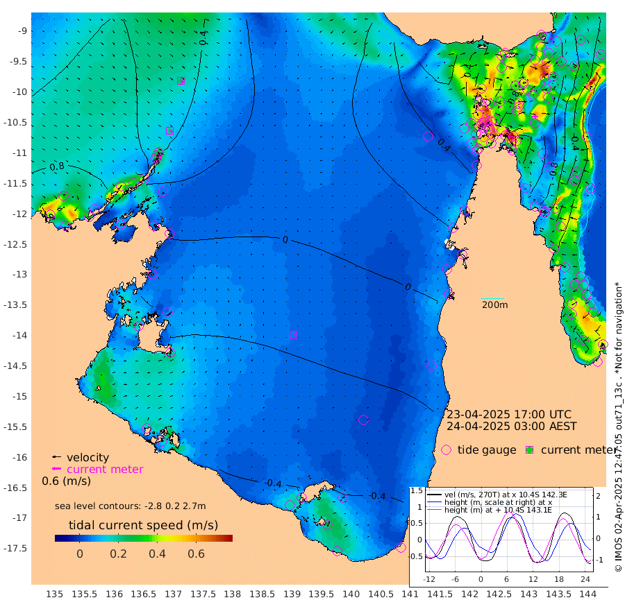 20cm/s 124T +3cm/s rms + 7cm/s -42T. ARA-GOC87 57m 6cm/s 59T +3cm/s rms + 2cm/s -2T. ARA-GOC87 60m 22cm/s 121T +2cm/s rms + 3cm/s 61T. ARA-GOC87 47m -103cm Daru -94cm Bobo Island -27cm Meer Island Barge -61cm Bramble Cay -90cm Unnamed Cay -83cm Pearce Cay -76cm Stephens Island -99cm Merrie England Shoals -111cm Mutacomal Reef -62cm Darnley Island Barge -36cm East Cay -77cm Yorke Island Barge -92cm Rennel Island -83cm Aureed Island -88cm Dungeness Reef -72cm Zagai Island -72cm Yam Island -27cm Dauan Island -23cm Saibai Island -58cm Phipi Reef -76cm Warrior Reef - West -17cm Mabuiag Island Barge -87cm Half Way Island -97cm Coconut Island -91cm Dugong Islet -87cm Poll Island -90cm Kirkcaldie Reef -79cm Suarji Island -79cm Sue Islet 43cm Hawkesbury Island -71cm Alert Patches -71cm Twin Island 31cm Badu Island -67cm St Pauls (Moa Island) 11cm Kubin (Moa Island) -41cm Ince Point -21cm Thursday Island -26cm Nardana Patches 0cm Turtle Head 16cm Round Island 45cm Goods Island 71cm Booby Island 57cm White Rocks Area 74cm Carpentaria -50cm Papou Point 68cm Bampfield Head 54cm Crab Island 57cm Red Wallis Island 15cm Packe Island -108cm Harrington Reef 50cm Herald Camp -29cm Sharp Point 2cm Red Island Point -36cm Possession Island -76cm Alpha Rock -88cm Frederick Point -106cm Wyborn Reef Light -104cm Tetley Island -32cm Triangle Reef -95cm Turtle Head Island -27cm Maclennan Cay -7cm Raine Island -81cm Mcsweeny Reef -73cm Collette Reef -36cm Shadwell Reef -81cm Hannibal Island -66cm Round Point 53cm Vrilya Point -56cm Cape Grenville -40cm Hicks Island -26cm Sir Charles Hardy Island -16cm Harvey Island -39cm Kay Reef -18cm Rocky Island -8cm Chapman Island -6cm Ham Reef -13cm Jubilee Reef -23cm Night Island -11cm Unnamed Reef No. 3 -21cm Morris Island -6cm 1st 3 Mile Opening -14cm Creech Reef -29cm Fife Island -11cm Eden Reef -22cm Stanley Island -26cm Normanby River 98cm Yabooma Island 95cm Hutchison River 86cm Elcho Island 81cm North West Crocodile Island 67cm Cape Wessel 66cm Stevens Island 48cm Guluwuru Island 65cm Hopeful Bay 67cm Auster Point 74cm Two Island Bay 83cm Cadell Strait -5cm Mallison Island 38cm Melville Bay (Gove Harbour) 46cm Truant Island 22cm Cape Arnhem 3cm Cape Grey -20cm Hawk Island -27cm Milner Bay (Groote Eylandt) -40cm Cape Beatrice -62cm West Island -61cm Centre Island -92cm Mornington Island -85cm West Wellesley Islands -78cm Bountiful Island -99cm Albert River Mouth -110cm Sweers Island -107cm Karumba -66cm Nassau River Offshore -35cm Christmas Creek 6cm Archer River 25cm Boyd Point 33cm Weipa (Humbug Point) 17cm Pennefather River 51cm Cullen Point