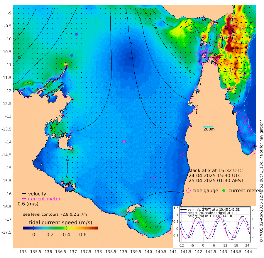 4cm/s -105T +3cm/s rms + 7cm/s -42T. ARA-GOC87 57m 18cm/s 19T +3cm/s rms + 2cm/s -2T. ARA-GOC87 60m 5cm/s 175T +2cm/s rms + 3cm/s 61T. ARA-GOC87 47m -96cm Daru -96cm Bobo Island -91cm Meer Island Barge -113cm Bramble Cay -113cm Unnamed Cay -107cm Pearce Cay -115cm Stephens Island -126cm Merrie England Shoals -104cm Mutacomal Reef -104cm Darnley Island Barge -101cm East Cay -93cm Yorke Island Barge -102cm Rennel Island -86cm Aureed Island -75cm Dungeness Reef -11cm Zagai Island -17cm Yam Island 39cm Dauan Island 51cm Saibai Island 15cm Phipi Reef -17cm Warrior Reef - West 51cm Mabuiag Island Barge -102cm Half Way Island -71cm Coconut Island -92cm Dugong Islet -47cm Poll Island -60cm Kirkcaldie Reef -1cm Suarji Island -36cm Sue Islet 45cm Hawkesbury Island -9cm Alert Patches -12cm Twin Island 54cm Badu Island 4cm St Pauls (Moa Island) 30cm Kubin (Moa Island) 13cm Ince Point 24cm Thursday Island 23cm Nardana Patches 25cm Turtle Head 44cm Round Island 42cm Goods Island 63cm Booby Island 54cm White Rocks Area 82cm Carpentaria 6cm Papou Point 79cm Bampfield Head 50cm Crab Island 55cm Red Wallis Island 25cm Packe Island -92cm Harrington Reef 56cm Herald Camp 5cm Sharp Point 28cm Red Island Point 17cm Possession Island -20cm Alpha Rock -45cm Frederick Point -88cm Wyborn Reef Light -75cm Tetley Island -70cm Triangle Reef -98cm Turtle Head Island -83cm Maclennan Cay -76cm Raine Island -104cm Mcsweeny Reef -102cm Collette Reef -86cm Shadwell Reef -117cm Hannibal Island -118cm Round Point 46cm Vrilya Point -107cm Cape Grenville -99cm Hicks Island -90cm Sir Charles Hardy Island -33cm Harvey Island -103cm Kay Reef -86cm Rocky Island -78cm Chapman Island -74cm Ham Reef -83cm Jubilee Reef -83cm Night Island -80cm Unnamed Reef No. 3 -94cm Morris Island -79cm 1st 3 Mile Opening -86cm Creech Reef -102cm Fife Island -106cm Eden Reef -99cm Stanley Island -112cm Normanby River -28cm Yabooma Island -42cm Hutchison River -30cm Elcho Island -28cm North West Crocodile Island -14cm Cape Wessel -38cm Stevens Island -41cm Guluwuru Island -31cm Hopeful Bay -20cm Auster Point -27cm Two Island Bay -59cm Cadell Strait -115cm Mallison Island -35cm Melville Bay (Gove Harbour) -32cm Truant Island -22cm Cape Arnhem -13cm Cape Grey -17cm Hawk Island 4cm Milner Bay (Groote Eylandt) -10cm Cape Beatrice 4cm West Island 12cm Centre Island -42cm Mornington Island -41cm West Wellesley Islands -36cm Bountiful Island -53cm Albert River Mouth -46cm Sweers Island -55cm Karumba -52cm Nassau River Offshore -39cm Christmas Creek -10cm Archer River 11cm Boyd Point 10cm Weipa (Humbug Point) 10cm Pennefather River 46cm Cullen Point