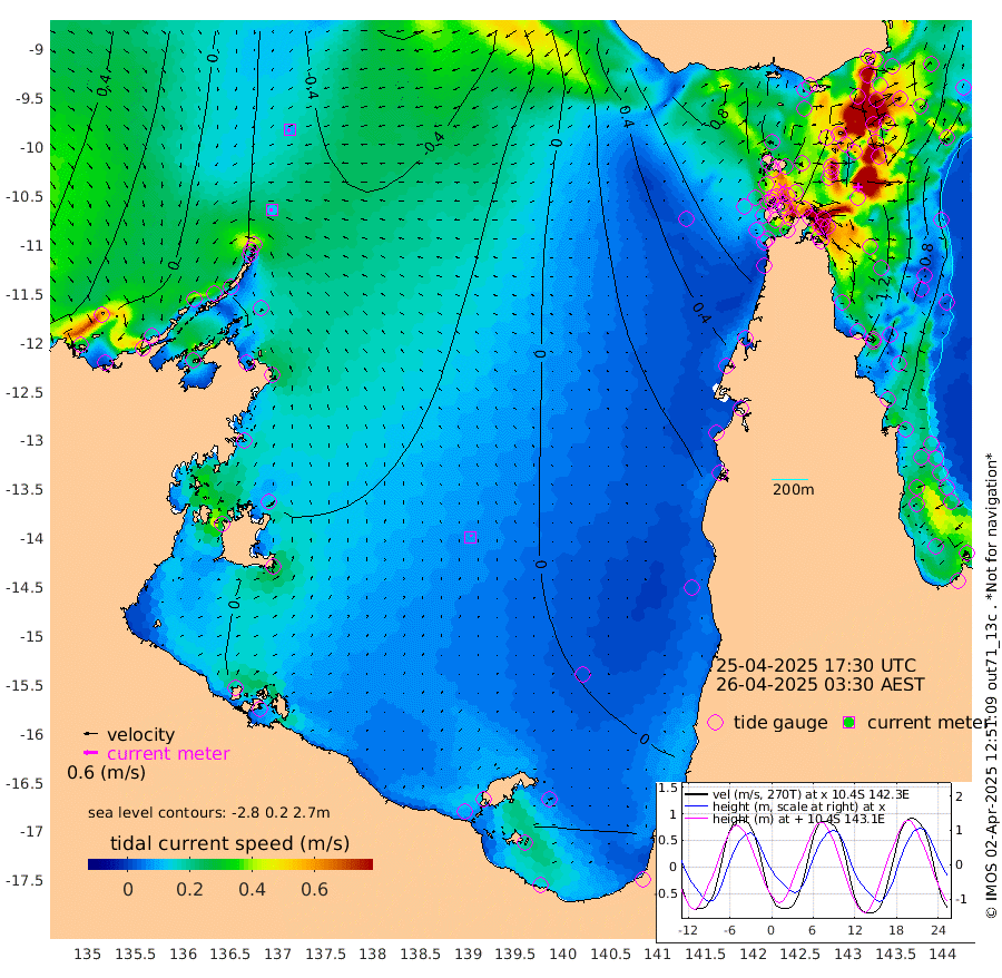 12cm/s -100T +3cm/s rms + 7cm/s -42T. ARA-GOC87 57m 8cm/s 17T +3cm/s rms + 2cm/s -2T. ARA-GOC87 60m 10cm/s -133T +2cm/s rms + 3cm/s 61T. ARA-GOC87 47m -139cm Daru -136cm Bobo Island -70cm Meer Island Barge -106cm Bramble Cay -130cm Unnamed Cay -131cm Pearce Cay -124cm Stephens Island -139cm Merrie England Shoals -143cm Mutacomal Reef -109cm Darnley Island Barge -79cm East Cay -117cm Yorke Island Barge -130cm Rennel Island -120cm Aureed Island -118cm Dungeness Reef -85cm Zagai Island -84cm Yam Island -22cm Dauan Island -12cm Saibai Island -49cm Phipi Reef -87cm Warrior Reef - West -3cm Mabuiag Island Barge -130cm Half Way Island -126cm Coconut Island -128cm Dugong Islet -107cm Poll Island -114cm Kirkcaldie Reef -76cm Suarji Island -94cm Sue Islet 46cm Hawkesbury Island -71cm Alert Patches -77cm Twin Island 35cm Badu Island -70cm St Pauls (Moa Island) 8cm Kubin (Moa Island) -39cm Ince Point -17cm Thursday Island -23cm Nardana Patches 4cm Turtle Head 28cm Round Island 47cm Goods Island 79cm Booby Island 65cm White Rocks Area 88cm Carpentaria -58cm Papou Point 85cm Bampfield Head 60cm Crab Island 65cm Red Wallis Island 17cm Packe Island -143cm Harrington Reef 66cm Herald Camp -23cm Sharp Point 5cm Red Island Point -31cm Possession Island -80cm Alpha Rock -105cm Frederick Point -137cm Wyborn Reef Light -131cm Tetley Island -64cm Triangle Reef -141cm Turtle Head Island -65cm Maclennan Cay -44cm Raine Island -121cm Mcsweeny Reef -110cm Collette Reef -70cm Shadwell Reef -123cm Hannibal Island -110cm Round Point 59cm Vrilya Point -93cm Cape Grenville -82cm Hicks Island -66cm Sir Charles Hardy Island -29cm Harvey Island -76cm Kay Reef -54cm Rocky Island -41cm Chapman Island -39cm Ham Reef -52cm Jubilee Reef -57cm Night Island -45cm Unnamed Reef No. 3 -61cm Morris Island -45cm 1st 3 Mile Opening -53cm Creech Reef -68cm Fife Island -60cm Eden Reef -61cm Stanley Island -72cm Normanby River 12cm Yabooma Island -14cm Hutchison River -2cm Elcho Island 0cm North West Crocodile Island -9cm Cape Wessel -20cm Stevens Island -45cm Guluwuru Island -4cm Hopeful Bay -8cm Auster Point -11cm Two Island Bay -39cm Cadell Strait -109cm Mallison Island -36cm Melville Bay (Gove Harbour) -35cm Truant Island -28cm Cape Arnhem -21cm Cape Grey -26cm Hawk Island -7cm Milner Bay (Groote Eylandt) -17cm Cape Beatrice -6cm West Island -2cm Centre Island -38cm Mornington Island -31cm West Wellesley Islands -13cm Bountiful Island -37cm Albert River Mouth -33cm Sweers Island -39cm Karumba -28cm Nassau River Offshore -11cm Christmas Creek 19cm Archer River 33cm Boyd Point 43cm Weipa (Humbug Point) 22cm Pennefather River 64cm Cullen Point
