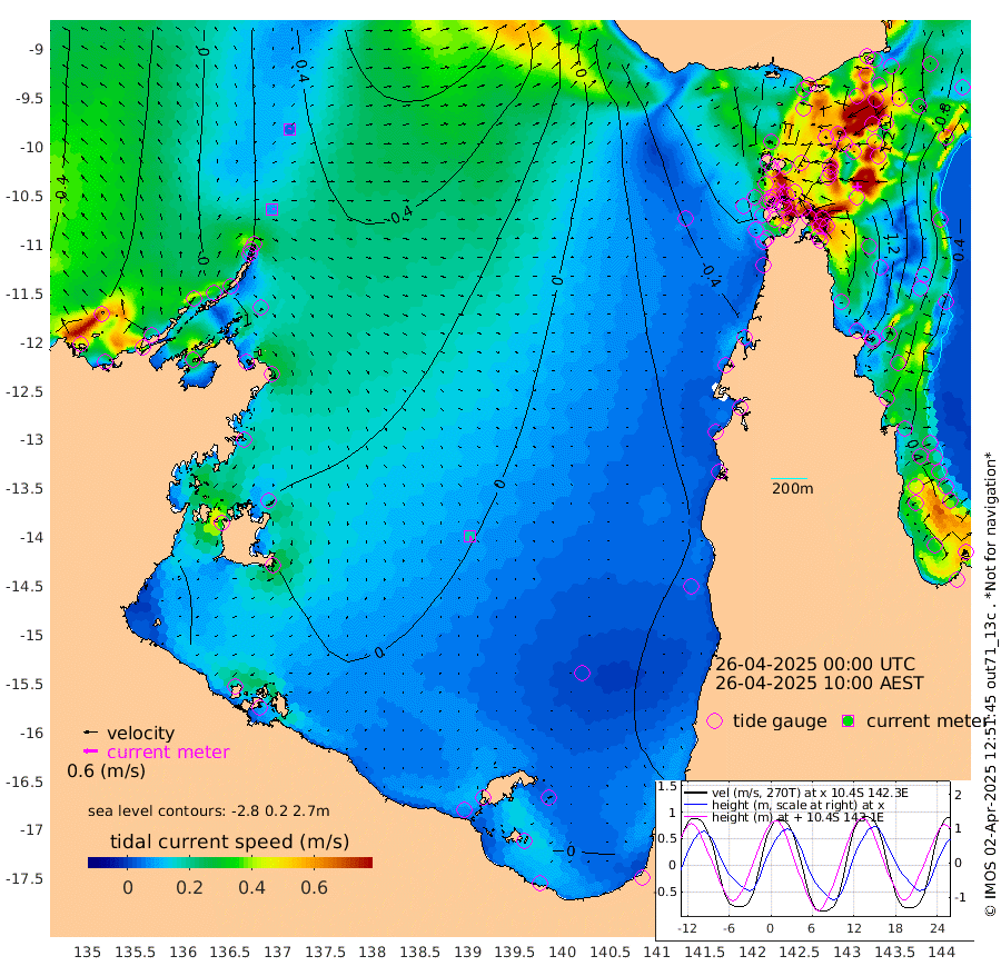 9cm/s 82T +3cm/s rms + 7cm/s -42T. ARA-GOC87 57m 19cm/s 168T +3cm/s rms + 2cm/s -2T. ARA-GOC87 60m 5cm/s 26T +2cm/s rms + 3cm/s 61T. ARA-GOC87 47m 155cm Daru 149cm Bobo Island 66cm Meer Island Barge 106cm Bramble Cay 140cm Unnamed Cay 139cm Pearce Cay 128cm Stephens Island 143cm Merrie England Shoals 162cm Mutacomal Reef 113cm Darnley Island Barge 76cm East Cay 130cm Yorke Island Barge 141cm Rennel Island 132cm Aureed Island 138cm Dungeness Reef 121cm Zagai Island 130cm Yam Island 72cm Dauan Island 71cm Saibai Island 80cm Phipi Reef 128cm Warrior Reef - West 55cm Mabuiag Island Barge 144cm Half Way Island 142cm Coconut Island 151cm Dugong Islet 137cm Poll Island 143cm Kirkcaldie Reef 111cm Suarji Island 130cm Sue Islet 5cm Hawkesbury Island 103cm Alert Patches 115cm Twin Island 8cm Badu Island 114cm St Pauls (Moa Island) 37cm Kubin (Moa Island) 79cm Ince Point 58cm Thursday Island 63cm Nardana Patches 31cm Turtle Head 6cm Round Island -12cm Goods Island -45cm Booby Island -29cm White Rocks Area -54cm Carpentaria 99cm Papou Point -58cm Bampfield Head -43cm Crab Island -29cm Red Wallis Island 20cm Packe Island 162cm Harrington Reef -21cm Herald Camp 36cm Sharp Point 32cm Red Island Point 58cm Possession Island 119cm Alpha Rock 136cm Frederick Point 157cm Wyborn Reef Light 156cm Tetley Island 67cm Triangle Reef 156cm Turtle Head Island 68cm Maclennan Cay 33cm Raine Island 127cm Mcsweeny Reef 111cm Collette Reef 65cm Shadwell Reef 123cm Hannibal Island 107cm Round Point -45cm Vrilya Point 92cm Cape Grenville 80cm Hicks Island 77cm Sir Charles Hardy Island 28cm Harvey Island 72cm Kay Reef 49cm Rocky Island 34cm Chapman Island 35cm Ham Reef 47cm Jubilee Reef 48cm Night Island 38cm Unnamed Reef No. 3 52cm Morris Island 35cm 1st 3 Mile Opening 45cm Creech Reef 56cm Fife Island 48cm Eden Reef 51cm Stanley Island 66cm Normanby River 1cm Yabooma Island 19cm Hutchison River 2cm Elcho Island 8cm North West Crocodile Island 26cm Cape Wessel 24cm Stevens Island 55cm Guluwuru Island 3cm Hopeful Bay 13cm Auster Point 26cm Two Island Bay 49cm Cadell Strait 114cm Mallison Island 40cm Melville Bay (Gove Harbour) 41cm Truant Island 27cm Cape Arnhem 15cm Cape Grey 9cm Hawk Island -14cm Milner Bay (Groote Eylandt) -6cm Cape Beatrice -15cm West Island -28cm Centre Island -9cm Mornington Island -10cm West Wellesley Islands -15cm Bountiful Island -30cm Albert River Mouth -45cm Sweers Island -27cm Karumba 4cm Nassau River Offshore 1cm Christmas Creek -24cm Archer River -24cm Boyd Point -36cm Weipa (Humbug Point) -30cm Pennefather River -44cm Cullen Point