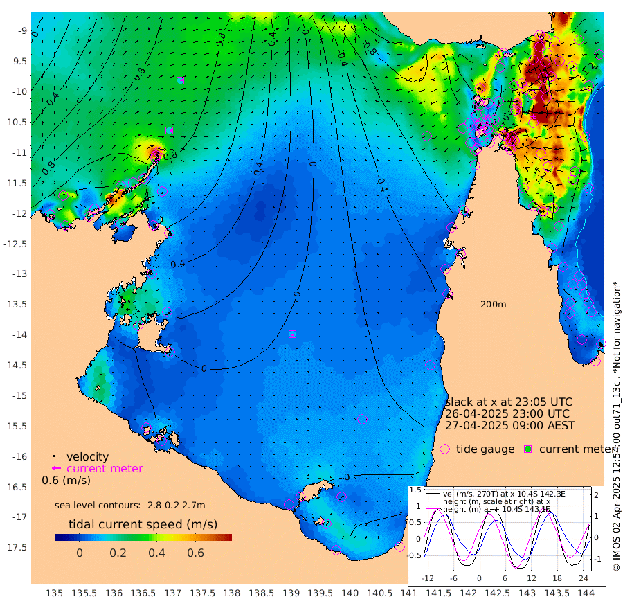 16cm/s 89T +3cm/s rms + 7cm/s -42T. ARA-GOC87 57m 11cm/s -166T +3cm/s rms + 2cm/s -2T. ARA-GOC87 60m 16cm/s 72T +2cm/s rms + 3cm/s 61T. ARA-GOC87 47m 115cm Daru 123cm Bobo Island 96cm Meer Island Barge 123cm Bramble Cay 127cm Unnamed Cay 129cm Pearce Cay 129cm Stephens Island 131cm Merrie England Shoals 120cm Mutacomal Reef 116cm Darnley Island Barge 110cm East Cay 111cm Yorke Island Barge 118cm Rennel Island 109cm Aureed Island 95cm Dungeness Reef 45cm Zagai Island 54cm Yam Island -12cm Dauan Island -15cm Saibai Island 3cm Phipi Reef 49cm Warrior Reef - West -21cm Mabuiag Island Barge 118cm Half Way Island 93cm Coconut Island 112cm Dugong Islet 73cm Poll Island 81cm Kirkcaldie Reef 33cm Suarji Island 62cm Sue Islet -27cm Hawkesbury Island 24cm Alert Patches 37cm Twin Island -38cm Badu Island 25cm St Pauls (Moa Island) -10cm Kubin (Moa Island) 6cm Ince Point -9cm Thursday Island -6cm Nardana Patches -19cm Turtle Head -30cm Round Island -38cm Goods Island -68cm Booby Island -50cm White Rocks Area -91cm Carpentaria 28cm Papou Point -71cm Bampfield Head -68cm Crab Island -60cm Red Wallis Island -22cm Packe Island 115cm Harrington Reef -44cm Herald Camp -1cm Sharp Point -11cm Red Island Point 3cm Possession Island 43cm Alpha Rock 70cm Frederick Point 111cm Wyborn Reef Light 101cm Tetley Island 78cm Triangle Reef 121cm Turtle Head Island 92cm Maclennan Cay 74cm Raine Island 116cm Mcsweeny Reef 108cm Collette Reef 84cm Shadwell Reef 124cm Hannibal Island 126cm Round Point -77cm Vrilya Point 110cm Cape Grenville 107cm Hicks Island 106cm Sir Charles Hardy Island 34cm Harvey Island 104cm Kay Reef 90cm Rocky Island 79cm Chapman Island 77cm Ham Reef 85cm Jubilee Reef 78cm Night Island 78cm Unnamed Reef No. 3 95cm Morris Island 76cm 1st 3 Mile Opening 84cm Creech Reef 96cm Fife Island 106cm Eden Reef 94cm Stanley Island 117cm Normanby River 144cm Yabooma Island 174cm Hutchison River 137cm Elcho Island 137cm North West Crocodile Island 107cm Cape Wessel 136cm Stevens Island 120cm Guluwuru Island 118cm Hopeful Bay 109cm Auster Point 123cm Two Island Bay 172cm Cadell Strait 123cm Mallison Island 105cm Melville Bay (Gove Harbour) 107cm Truant Island 65cm Cape Arnhem 45cm Cape Grey 30cm Hawk Island -4cm Milner Bay (Groote Eylandt) -2cm Cape Beatrice -33cm West Island -48cm Centre Island -12cm Mornington Island -13cm West Wellesley Islands 13cm Bountiful Island 1cm Albert River Mouth -4cm Sweers Island 1cm Karumba 2cm Nassau River Offshore -6cm Christmas Creek -28cm Archer River -37cm Boyd Point -36cm Weipa (Humbug Point) -56cm Pennefather River -67cm Cullen Point