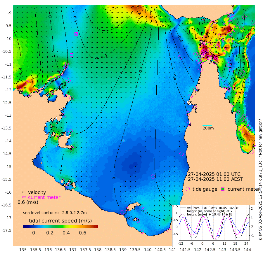 12cm/s 64T +3cm/s rms + 7cm/s -42T. ARA-GOC87 57m 12cm/s 165T +3cm/s rms + 2cm/s -2T. ARA-GOC87 60m 11cm/s 35T +2cm/s rms + 3cm/s 61T. ARA-GOC87 47m 130cm Daru 125cm Bobo Island 37cm Meer Island Barge 72cm Bramble Cay 108cm Unnamed Cay 110cm Pearce Cay 96cm Stephens Island 106cm Merrie England Shoals 132cm Mutacomal Reef 84cm Darnley Island Barge 42cm East Cay 106cm Yorke Island Barge 110cm Rennel Island 109cm Aureed Island 115cm Dungeness Reef 117cm Zagai Island 119cm Yam Island 74cm Dauan Island 76cm Saibai Island 77cm Phipi Reef 122cm Warrior Reef - West 48cm Mabuiag Island Barge 114cm Half Way Island 119cm Coconut Island 124cm Dugong Islet 120cm Poll Island 121cm Kirkcaldie Reef 99cm Suarji Island 116cm Sue Islet -31cm Hawkesbury Island 83cm Alert Patches 97cm Twin Island -21cm Badu Island 102cm St Pauls (Moa Island) 8cm Kubin (Moa Island) 60cm Ince Point 36cm Thursday Island 42cm Nardana Patches 1cm Turtle Head -24cm Round Island -50cm Goods Island -86cm Booby Island -70cm White Rocks Area -83cm Carpentaria 87cm Papou Point -99cm Bampfield Head -76cm Crab Island -68cm Red Wallis Island -17cm Packe Island 133cm Harrington Reef -58cm Herald Camp 38cm Sharp Point 6cm Red Island Point 39cm Possession Island 103cm Alpha Rock 114cm Frederick Point 130cm Wyborn Reef Light 132cm Tetley Island 42cm Triangle Reef 126cm Turtle Head Island 37cm Maclennan Cay 2cm Raine Island 97cm Mcsweeny Reef 81cm Collette Reef 36cm Shadwell Reef 89cm Hannibal Island 70cm Round Point -76cm Vrilya Point 57cm Cape Grenville 47cm Hicks Island 43cm Sir Charles Hardy Island 18cm Harvey Island 35cm Kay Reef 17cm Rocky Island 2cm Chapman Island 5cm Ham Reef 16cm Jubilee Reef 19cm Night Island 6cm Unnamed Reef No. 3 18cm Morris Island 3cm 1st 3 Mile Opening 13cm Creech Reef 21cm Fife Island 11cm Eden Reef 16cm Stanley Island 28cm Normanby River -11cm Yabooma Island 8cm Hutchison River -6cm Elcho Island 1cm North West Crocodile Island 27cm Cape Wessel 18cm Stevens Island 60cm Guluwuru Island -2cm Hopeful Bay 12cm Auster Point 26cm Two Island Bay 47cm Cadell Strait 117cm Mallison Island 43cm Melville Bay (Gove Harbour) 44cm Truant Island 32cm Cape Arnhem 24cm Cape Grey 20cm Hawk Island 4cm Milner Bay (Groote Eylandt) 9cm Cape Beatrice 5cm West Island -7cm Centre Island 6cm Mornington Island 3cm West Wellesley Islands -1cm Bountiful Island -3cm Albert River Mouth -11cm Sweers Island -4cm Karumba -1cm Nassau River Offshore -16cm Christmas Creek -48cm Archer River -48cm Boyd Point -65cm Weipa (Humbug Point) -54cm Pennefather River -72cm Cullen Point