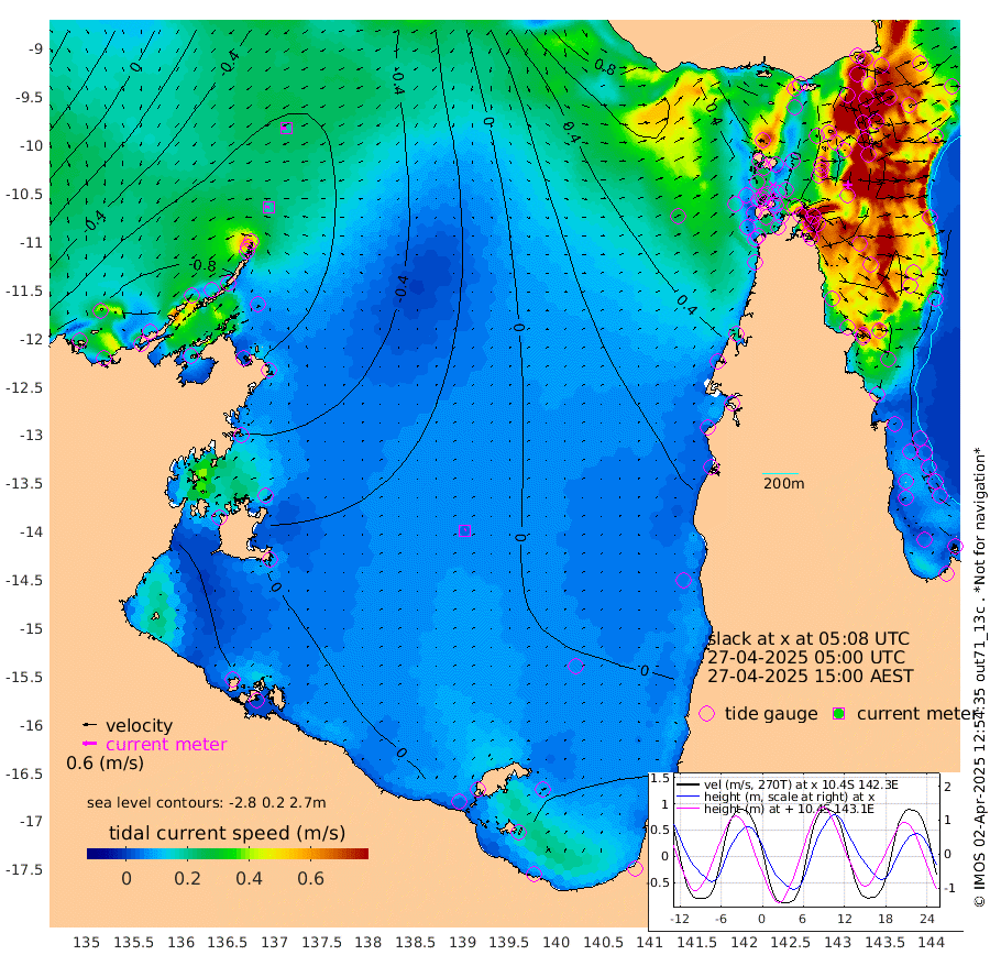 18cm/s -85T +3cm/s rms + 7cm/s -42T. ARA-GOC87 57m 4cm/s 36T +3cm/s rms + 2cm/s -2T. ARA-GOC87 60m 20cm/s -99T +2cm/s rms + 3cm/s 61T. ARA-GOC87 47m -136cm Daru -145cm Bobo Island -123cm Meer Island Barge -146cm Bramble Cay -152cm Unnamed Cay -150cm Pearce Cay -153cm Stephens Island -153cm Merrie England Shoals -138cm Mutacomal Reef -142cm Darnley Island Barge -137cm East Cay -135cm Yorke Island Barge -140cm Rennel Island -135cm Aureed Island -119cm Dungeness Reef -67cm Zagai Island -67cm Yam Island -2cm Dauan Island 4cm Saibai Island -36cm Phipi Reef -64cm Warrior Reef - West 8cm Mabuiag Island Barge -134cm Half Way Island -121cm Coconut Island -127cm Dugong Islet -91cm Poll Island -98cm Kirkcaldie Reef -70cm Suarji Island -79cm Sue Islet 15cm Hawkesbury Island -52cm Alert Patches -58cm Twin Island 16cm Badu Island -43cm St Pauls (Moa Island) -8cm Kubin (Moa Island) -25cm Ince Point -12cm Thursday Island -14cm Nardana Patches -8cm Turtle Head -11cm Round Island 11cm Goods Island 39cm Booby Island 23cm White Rocks Area 63cm Carpentaria -43cm Papou Point 0cm Bampfield Head 44cm Crab Island 41cm Red Wallis Island 2cm Packe Island -137cm Harrington Reef 5cm Herald Camp -1cm Sharp Point -5cm Red Island Point -43cm Possession Island -56cm Alpha Rock -91cm Frederick Point -133cm Wyborn Reef Light -121cm Tetley Island -101cm Triangle Reef -146cm Turtle Head Island -117cm Maclennan Cay -103cm Raine Island -140cm Mcsweeny Reef -135cm Collette Reef -113cm Shadwell Reef -152cm Hannibal Island -151cm Round Point 62cm Vrilya Point -136cm Cape Grenville -136cm Hicks Island -134cm Sir Charles Hardy Island -43cm Harvey Island -132cm Kay Reef -118cm Rocky Island -109cm Chapman Island -103cm Ham Reef -110cm Jubilee Reef -104cm Night Island -104cm Unnamed Reef No. 3 -123cm Morris Island -112cm 1st 3 Mile Opening -113cm Creech Reef -120cm Fife Island -137cm Eden Reef -123cm Stanley Island -141cm Normanby River -118cm Yabooma Island -151cm Hutchison River -112cm Elcho Island -102cm North West Crocodile Island -92cm Cape Wessel -112cm Stevens Island -114cm Guluwuru Island -103cm Hopeful Bay -100cm Auster Point -97cm Two Island Bay -133cm Cadell Strait -112cm Mallison Island -104cm Melville Bay (Gove Harbour) -107cm Truant Island -70cm Cape Arnhem -53cm Cape Grey -38cm Hawk Island -4cm Milner Bay (Groote Eylandt) 3cm Cape Beatrice 36cm West Island 39cm Centre Island 1cm Mornington Island 5cm West Wellesley Islands -27cm Bountiful Island 1cm Albert River Mouth -9cm Sweers Island -4cm Karumba -4cm Nassau River Offshore -7cm Christmas Creek 9cm Archer River 17cm Boyd Point 11cm Weipa (Humbug Point) 40cm Pennefather River 48cm Cullen Point