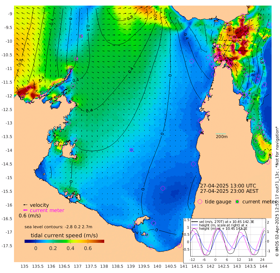 26cm/s 94T +3cm/s rms + 7cm/s -42T. ARA-GOC87 57m 5cm/s 126T +3cm/s rms + 2cm/s -2T. ARA-GOC87 60m 23cm/s 78T +2cm/s rms + 3cm/s 61T. ARA-GOC87 47m 170cm Daru 170cm Bobo Island 89cm Meer Island Barge 120cm Bramble Cay 154cm Unnamed Cay 156cm Pearce Cay 146cm Stephens Island 152cm Merrie England Shoals 165cm Mutacomal Reef 135cm Darnley Island Barge 94cm East Cay 150cm Yorke Island Barge 154cm Rennel Island 157cm Aureed Island 156cm Dungeness Reef 144cm Zagai Island 132cm Yam Island 81cm Dauan Island 75cm Saibai Island 112cm Phipi Reef 140cm Warrior Reef - West 54cm Mabuiag Island Barge 151cm Half Way Island 167cm Coconut Island 155cm Dugong Islet 147cm Poll Island 150cm Kirkcaldie Reef 141cm Suarji Island 139cm Sue Islet -21cm Hawkesbury Island 119cm Alert Patches 124cm Twin Island 6cm Badu Island 123cm St Pauls (Moa Island) 28cm Kubin (Moa Island) 83cm Ince Point 60cm Thursday Island 66cm Nardana Patches 35cm Turtle Head 22cm Round Island -15cm Goods Island -48cm Booby Island -36cm White Rocks Area -47cm Carpentaria 106cm Papou Point -11cm Bampfield Head -39cm Crab Island -43cm Red Wallis Island 10cm Packe Island 176cm Harrington Reef -18cm Herald Camp 36cm Sharp Point 24cm Red Island Point 87cm Possession Island 118cm Alpha Rock 146cm Frederick Point 169cm Wyborn Reef Light 165cm Tetley Island 84cm Triangle Reef 175cm Turtle Head Island 84cm Maclennan Cay 57cm Raine Island 143cm Mcsweeny Reef 131cm Collette Reef 87cm Shadwell Reef 144cm Hannibal Island 121cm Round Point -47cm Vrilya Point 106cm Cape Grenville 100cm Hicks Island 91cm Sir Charles Hardy Island 34cm Harvey Island 86cm Kay Reef 68cm Rocky Island 55cm Chapman Island 52cm Ham Reef 65cm Jubilee Reef 68cm Night Island 55cm Unnamed Reef No. 3 72cm Morris Island 66cm 1st 3 Mile Opening 67cm Creech Reef 71cm Fife Island 72cm Eden Reef 70cm Stanley Island 77cm Normanby River -37cm Yabooma Island -5cm Hutchison River -25cm Elcho Island -35cm North West Crocodile Island 19cm Cape Wessel 2cm Stevens Island 75cm Guluwuru Island -11cm Hopeful Bay 13cm Auster Point 5cm Two Island Bay 24cm Cadell Strait 142cm Mallison Island 57cm Melville Bay (Gove Harbour) 63cm Truant Island 51cm Cape Arnhem 37cm Cape Grey 30cm Hawk Island 5cm Milner Bay (Groote Eylandt) -2cm Cape Beatrice -20cm West Island -14cm Centre Island 5cm Mornington Island -3cm West Wellesley Islands -16cm Bountiful Island -28cm Albert River Mouth -22cm Sweers Island -25cm Karumba -7cm Nassau River Offshore -2cm Christmas Creek -20cm Archer River -20cm Boyd Point -32cm Weipa (Humbug Point) -20cm Pennefather River -46cm Cullen Point