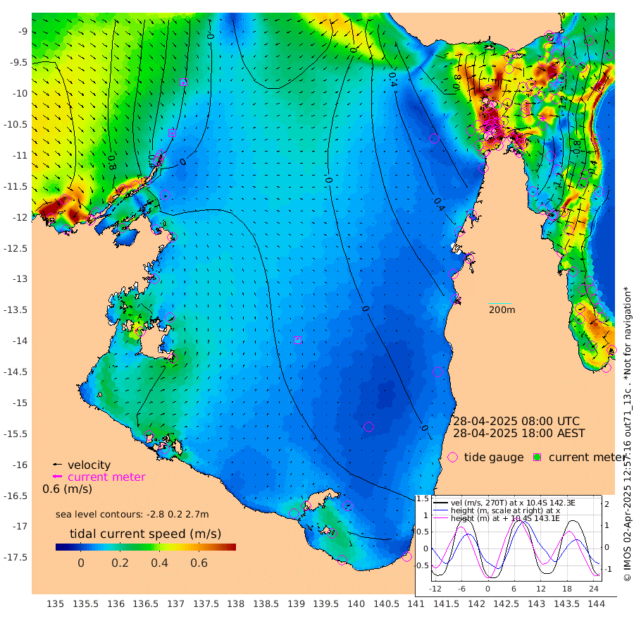 10cm/s -167T +3cm/s rms + 7cm/s -42T. ARA-GOC87 57m 12cm/s -9T +3cm/s rms + 2cm/s -2T. ARA-GOC87 60m 14cm/s 173T +2cm/s rms + 3cm/s 61T. ARA-GOC87 47m -146cm Daru -139cm Bobo Island -53cm Meer Island Barge -81cm Bramble Cay -123cm Unnamed Cay -119cm Pearce Cay -108cm Stephens Island -113cm Merrie England Shoals -142cm Mutacomal Reef -103cm Darnley Island Barge -55cm East Cay -126cm Yorke Island Barge -123cm Rennel Island -132cm Aureed Island -139cm Dungeness Reef -151cm Zagai Island -146cm Yam Island -119cm Dauan Island -120cm Saibai Island -133cm Phipi Reef -157cm Warrior Reef - West -75cm Mabuiag Island Barge -122cm Half Way Island -138cm Coconut Island -137cm Dugong Islet -139cm Poll Island -137cm Kirkcaldie Reef -145cm Suarji Island -141cm Sue Islet 35cm Hawkesbury Island -110cm Alert Patches -119cm Twin Island 12cm Badu Island -128cm St Pauls (Moa Island) -18cm Kubin (Moa Island) -79cm Ince Point -53cm Thursday Island -61cm Nardana Patches -19cm Turtle Head -3cm Round Island 42cm Goods Island 82cm Booby Island 69cm White Rocks Area 77cm Carpentaria -103cm Papou Point 59cm Bampfield Head 82cm Crab Island 72cm Red Wallis Island 10cm Packe Island -147cm Harrington Reef 27cm Herald Camp -46cm Sharp Point -9cm Red Island Point -71cm Possession Island -120cm Alpha Rock -131cm Frederick Point -143cm Wyborn Reef Light -145cm Tetley Island -57cm Triangle Reef -132cm Turtle Head Island -53cm Maclennan Cay -15cm Raine Island -110cm Mcsweeny Reef -97cm Collette Reef -53cm Shadwell Reef -105cm Hannibal Island -77cm Round Point 91cm Vrilya Point -70cm Cape Grenville -62cm Hicks Island -67cm Sir Charles Hardy Island -23cm Harvey Island -47cm Kay Reef -34cm Rocky Island -19cm Chapman Island -20cm Ham Reef -29cm Jubilee Reef -32cm Night Island -18cm Unnamed Reef No. 3 -32cm Morris Island -24cm 1st 3 Mile Opening -28cm Creech Reef -29cm Fife Island -25cm Eden Reef -29cm Stanley Island -35cm Normanby River 80cm Yabooma Island 68cm Hutchison River 78cm Elcho Island 76cm North West Crocodile Island 15cm Cape Wessel 50cm Stevens Island -37cm Guluwuru Island 54cm Hopeful Bay 32cm Auster Point 29cm Two Island Bay 30cm Cadell Strait -106cm Mallison Island -24cm Melville Bay (Gove Harbour) -23cm Truant Island -27cm Cape Arnhem -29cm Cape Grey -30cm Hawk Island -20cm Milner Bay (Groote Eylandt) -19cm Cape Beatrice -28cm West Island -24cm Centre Island -49cm Mornington Island -46cm West Wellesley Islands -66cm Bountiful Island -36cm Albert River Mouth -45cm Sweers Island -39cm Karumba -33cm Nassau River Offshore -18cm Christmas Creek 31cm Archer River 32cm Boyd Point 44cm Weipa (Humbug Point) 62cm Pennefather River 67cm Cullen Point