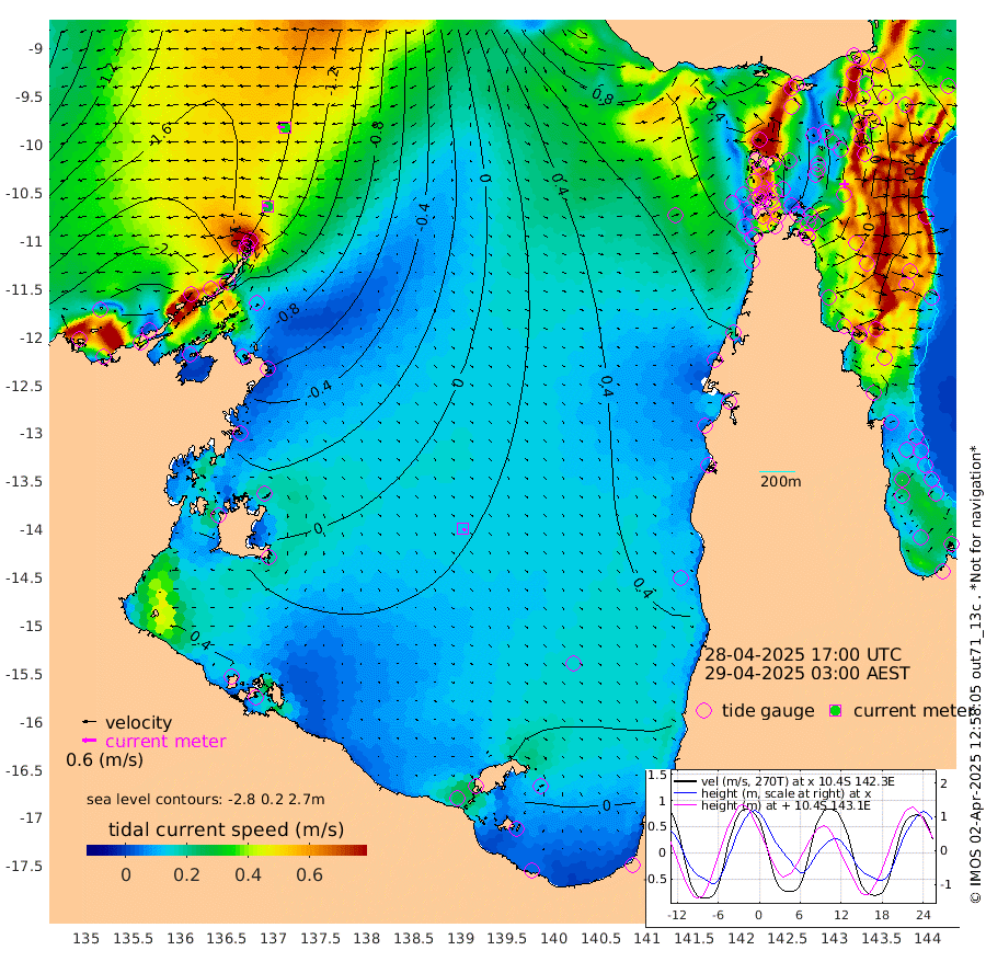 28cm/s -78T +3cm/s rms + 7cm/s -42T. ARA-GOC87 57m 13cm/s 141T +3cm/s rms + 2cm/s -2T. ARA-GOC87 60m 33cm/s -89T +2cm/s rms + 3cm/s 61T. ARA-GOC87 47m 2cm Daru -17cm Bobo Island -40cm Meer Island Barge -46cm Bramble Cay -19cm Unnamed Cay -34cm Pearce Cay -33cm Stephens Island -28cm Merrie England Shoals 0cm Mutacomal Reef -25cm Darnley Island Barge -49cm East Cay -7cm Yorke Island Barge -13cm Rennel Island -6cm Aureed Island 16cm Dungeness Reef 62cm Zagai Island 60cm Yam Island 101cm Dauan Island 106cm Saibai Island 91cm Phipi Reef 66cm Warrior Reef - West 91cm Mabuiag Island Barge -12cm Half Way Island 14cm Coconut Island 5cm Dugong Islet 36cm Poll Island 34cm Kirkcaldie Reef 78cm Suarji Island 52cm Sue Islet 50cm Hawkesbury Island 73cm Alert Patches 64cm Twin Island 63cm Badu Island 80cm St Pauls (Moa Island) 56cm Kubin (Moa Island) 73cm Ince Point 75cm Thursday Island 75cm Nardana Patches 66cm Turtle Head 65cm Round Island 53cm Goods Island 63cm Booby Island 51cm White Rocks Area 86cm Carpentaria 57cm Papou Point 79cm Bampfield Head 52cm Crab Island 59cm Red Wallis Island 57cm Packe Island 6cm Harrington Reef 78cm Herald Camp 36cm Sharp Point 48cm Red Island Point 66cm Possession Island 59cm Alpha Rock 39cm Frederick Point 4cm Wyborn Reef Light 15cm Tetley Island -22cm Triangle Reef -11cm Turtle Head Island -32cm Maclennan Cay -42cm Raine Island -18cm Mcsweeny Reef -20cm Collette Reef -26cm Shadwell Reef -29cm Hannibal Island -50cm Round Point 58cm Vrilya Point -35cm Cape Grenville -42cm Hicks Island -30cm Sir Charles Hardy Island -11cm Harvey Island -44cm Kay Reef -42cm Rocky Island -42cm Chapman Island -39cm Ham Reef -41cm Jubilee Reef -36cm Night Island -41cm Unnamed Reef No. 3 -48cm Morris Island -35cm 1st 3 Mile Opening -40cm Creech Reef -53cm Fife Island -64cm Eden Reef -46cm Stanley Island -65cm Normanby River -244cm Yabooma Island -286cm Hutchison River -249cm Elcho Island -243cm North West Crocodile Island -157cm Cape Wessel -223cm Stevens Island -137cm Guluwuru Island -201cm Hopeful Bay -175cm Auster Point -186cm Two Island Bay -253cm Cadell Strait -72cm Mallison Island -129cm Melville Bay (Gove Harbour) -132cm Truant Island -77cm Cape Arnhem -49cm Cape Grey -36cm Hawk Island -4cm Milner Bay (Groote Eylandt) -2cm Cape Beatrice 49cm West Island 56cm Centre Island 33cm Mornington Island 39cm West Wellesley Islands 26cm Bountiful Island -15cm Albert River Mouth -10cm Sweers Island -7cm Karumba 33cm Nassau River Offshore 45cm Christmas Creek 37cm Archer River 49cm Boyd Point 43cm Weipa (Humbug Point) 42cm Pennefather River 63cm Cullen Point