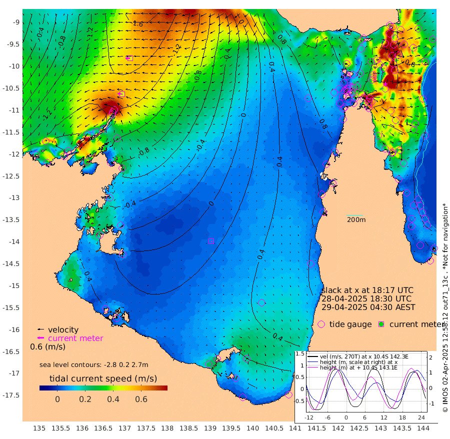 44cm/s -83T +3cm/s rms + 7cm/s -42T. ARA-GOC87 57m 6cm/s 161T +3cm/s rms + 2cm/s -2T. ARA-GOC87 60m 46cm/s -94T +2cm/s rms + 3cm/s 61T. ARA-GOC87 47m -77cm Daru -94cm Bobo Island -63cm Meer Island Barge -82cm Bramble Cay -80cm Unnamed Cay -97cm Pearce Cay -88cm Stephens Island -85cm Merrie England Shoals -74cm Mutacomal Reef -78cm Darnley Island Barge -69cm East Cay -75cm Yorke Island Barge -77cm Rennel Island -77cm Aureed Island -59cm Dungeness Reef -27cm Zagai Island -20cm Yam Island 35cm Dauan Island 39cm Saibai Island 23cm Phipi Reef -21cm Warrior Reef - West 47cm Mabuiag Island Barge -79cm Half Way Island -66cm Coconut Island -68cm Dugong Islet -43cm Poll Island -44cm Kirkcaldie Reef -1cm Suarji Island -30cm Sue Islet 70cm Hawkesbury Island 7cm Alert Patches -8cm Twin Island 64cm Badu Island 3cm St Pauls (Moa Island) 45cm Kubin (Moa Island) 24cm Ince Point 40cm Thursday Island 36cm Nardana Patches 53cm Turtle Head 66cm Round Island 74cm Goods Island 100cm Booby Island 87cm White Rocks Area 107cm Carpentaria -7cm Papou Point 108cm Bampfield Head 81cm Crab Island 91cm Red Wallis Island 61cm Packe Island -77cm Harrington Reef 101cm Herald Camp 7cm Sharp Point 40cm Red Island Point 24cm Possession Island -10cm Alpha Rock -38cm Frederick Point -75cm Wyborn Reef Light -66cm Tetley Island -49cm Triangle Reef -90cm Turtle Head Island -53cm Maclennan Cay -44cm Raine Island -76cm Mcsweeny Reef -69cm Collette Reef -50cm Shadwell Reef -82cm Hannibal Island -84cm Round Point 84cm Vrilya Point -64cm Cape Grenville -67cm Hicks Island -52cm Sir Charles Hardy Island -21cm Harvey Island -59cm Kay Reef -49cm Rocky Island -42cm Chapman Island -40cm Ham Reef -49cm Jubilee Reef -47cm Night Island -43cm Unnamed Reef No. 3 -56cm Morris Island -41cm 1st 3 Mile Opening -48cm Creech Reef -60cm Fife Island -67cm Eden Reef -52cm Stanley Island -71cm Normanby River -167cm Yabooma Island -219cm Hutchison River -181cm Elcho Island -172cm North West Crocodile Island -145cm Cape Wessel -181cm Stevens Island -165cm Guluwuru Island -150cm Hopeful Bay -149cm Auster Point -161cm Two Island Bay -229cm Cadell Strait -174cm Mallison Island -141cm Melville Bay (Gove Harbour) -149cm Truant Island -96cm Cape Arnhem -60cm Cape Grey -44cm Hawk Island -4cm Milner Bay (Groote Eylandt) 2cm Cape Beatrice 54cm West Island 58cm Centre Island 39cm Mornington Island 48cm West Wellesley Islands 57cm Bountiful Island 23cm Albert River Mouth 28cm Sweers Island 32cm Karumba 48cm Nassau River Offshore 57cm Christmas Creek 59cm Archer River 65cm Boyd Point 74cm Weipa (Humbug Point) 54cm Pennefather River 90cm Cullen Point