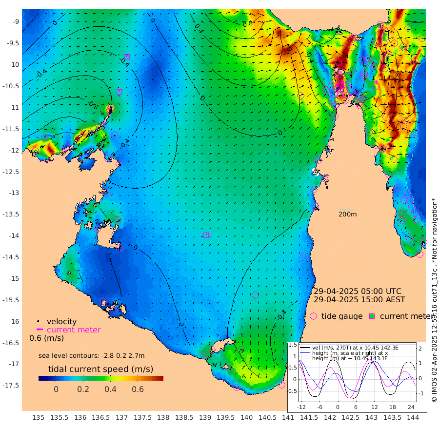 14cm/s -22T +3cm/s rms + 7cm/s -42T. ARA-GOC87 57m 15cm/s 29T +3cm/s rms + 2cm/s -2T. ARA-GOC87 60m 12cm/s -31T +2cm/s rms + 3cm/s 61T. ARA-GOC87 47m -71cm Daru -79cm Bobo Island -93cm Meer Island Barge -100cm Bramble Cay -88cm Unnamed Cay -94cm Pearce Cay -95cm Stephens Island -90cm Merrie England Shoals -71cm Mutacomal Reef -86cm Darnley Island Barge -105cm East Cay -72cm Yorke Island Barge -83cm Rennel Island -77cm Aureed Island -70cm Dungeness Reef -26cm Zagai Island -30cm Yam Island -17cm Dauan Island 2cm Saibai Island -45cm Phipi Reef -34cm Warrior Reef - West -8cm Mabuiag Island Barge -73cm Half Way Island -67cm Coconut Island -66cm Dugong Islet -46cm Poll Island -50cm Kirkcaldie Reef -43cm Suarji Island -28cm Sue Islet -64cm Hawkesbury Island -38cm Alert Patches -35cm Twin Island -63cm Badu Island -23cm St Pauls (Moa Island) -58cm Kubin (Moa Island) -34cm Ince Point -37cm Thursday Island -36cm Nardana Patches -62cm Turtle Head -67cm Round Island -80cm Goods Island -69cm Booby Island -76cm White Rocks Area -15cm Carpentaria -25cm Papou Point -91cm Bampfield Head -51cm Crab Island -61cm Red Wallis Island -72cm Packe Island -69cm Harrington Reef -76cm Herald Camp 11cm Sharp Point -49cm Red Island Point -48cm Possession Island -21cm Alpha Rock -49cm Frederick Point -67cm Wyborn Reef Light -58cm Tetley Island -79cm Triangle Reef -76cm Turtle Head Island -91cm Maclennan Cay -97cm Raine Island -83cm Mcsweeny Reef -84cm Collette Reef -86cm Shadwell Reef -94cm Hannibal Island -108cm Round Point -24cm Vrilya Point -96cm Cape Grenville -102cm Hicks Island -105cm Sir Charles Hardy Island -29cm Harvey Island -101cm Kay Reef -101cm Rocky Island -103cm Chapman Island -92cm Ham Reef -94cm Jubilee Reef -88cm Night Island -95cm Unnamed Reef No. 3 -105cm Morris Island -101cm 1st 3 Mile Opening -98cm Creech Reef -101cm Fife Island -120cm Eden Reef -102cm Stanley Island -112cm Normanby River -137cm Yabooma Island -169cm Hutchison River -132cm Elcho Island -122cm North West Crocodile Island -67cm Cape Wessel -106cm Stevens Island -67cm Guluwuru Island -104cm Hopeful Bay -85cm Auster Point -76cm Two Island Bay -118cm Cadell Strait -3cm Mallison Island -69cm Melville Bay (Gove Harbour) -69cm Truant Island -41cm Cape Arnhem -20cm Cape Grey -11cm Hawk Island 25cm Milner Bay (Groote Eylandt) 24cm Cape Beatrice 63cm West Island 63cm Centre Island 5cm Mornington Island 12cm West Wellesley Islands -27cm Bountiful Island -11cm Albert River Mouth -1cm Sweers Island -18cm Karumba -32cm Nassau River Offshore -51cm Christmas Creek -55cm Archer River -44cm Boyd Point -67cm Weipa (Humbug Point) -22cm Pennefather River -34cm Cullen Point