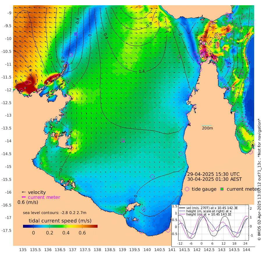 16cm/s 101T +3cm/s rms + 7cm/s -42T. ARA-GOC87 57m 24cm/s 154T +3cm/s rms + 2cm/s -2T. ARA-GOC87 60m 5cm/s 81T +2cm/s rms + 3cm/s 61T. ARA-GOC87 47m 131cm Daru 123cm Bobo Island 59cm Meer Island Barge 74cm Bramble Cay 108cm Unnamed Cay 109cm Pearce Cay 100cm Stephens Island 100cm Merrie England Shoals 122cm Mutacomal Reef 100cm Darnley Island Barge 56cm East Cay 118cm Yorke Island Barge 111cm Rennel Island 122cm Aureed Island 129cm Dungeness Reef 145cm Zagai Island 134cm Yam Island 128cm Dauan Island 126cm Saibai Island 134cm Phipi Reef 148cm Warrior Reef - West 91cm Mabuiag Island Barge 114cm Half Way Island 132cm Coconut Island 125cm Dugong Islet 131cm Poll Island 132cm Kirkcaldie Reef 139cm Suarji Island 135cm Sue Islet 22cm Hawkesbury Island 124cm Alert Patches 126cm Twin Island 46cm Badu Island 134cm St Pauls (Moa Island) 58cm Kubin (Moa Island) 102cm Ince Point 87cm Thursday Island 91cm Nardana Patches 66cm Turtle Head 46cm Round Island 27cm Goods Island 9cm Booby Island 6cm White Rocks Area 23cm Carpentaria 110cm Papou Point 27cm Bampfield Head 7cm Crab Island 11cm Red Wallis Island 46cm Packe Island 134cm Harrington Reef 32cm Herald Camp 45cm Sharp Point 48cm Red Island Point 92cm Possession Island 117cm Alpha Rock 129cm Frederick Point 126cm Wyborn Reef Light 129cm Tetley Island 63cm Triangle Reef 127cm Turtle Head Island 59cm Maclennan Cay 33cm Raine Island 103cm Mcsweeny Reef 93cm Collette Reef 61cm Shadwell Reef 98cm Hannibal Island 71cm Round Point 9cm Vrilya Point 68cm Cape Grenville 63cm Hicks Island 68cm Sir Charles Hardy Island 23cm Harvey Island 50cm Kay Reef 41cm Rocky Island 33cm Chapman Island 33cm Ham Reef 42cm Jubilee Reef 43cm Night Island 34cm Unnamed Reef No. 3 40cm Morris Island 44cm 1st 3 Mile Opening 44cm Creech Reef 38cm Fife Island 38cm Eden Reef 41cm Stanley Island 37cm Normanby River -163cm Yabooma Island -161cm Hutchison River -160cm Elcho Island -164cm North West Crocodile Island -60cm Cape Wessel -121cm Stevens Island 7cm Guluwuru Island -121cm Hopeful Bay -82cm Auster Point -86cm Two Island Bay -94cm Cadell Strait 132cm Mallison Island -14cm Melville Bay (Gove Harbour) -8cm Truant Island 7cm Cape Arnhem -3cm Cape Grey -9cm Hawk Island -24cm Milner Bay (Groote Eylandt) -26cm Cape Beatrice -22cm West Island -17cm Centre Island -8cm Mornington Island -7cm West Wellesley Islands -35cm Bountiful Island -75cm Albert River Mouth -83cm Sweers Island -70cm Karumba 4cm Nassau River Offshore 29cm Christmas Creek 15cm Archer River 26cm Boyd Point 12cm Weipa (Humbug Point) 17cm Pennefather River 12cm Cullen Point