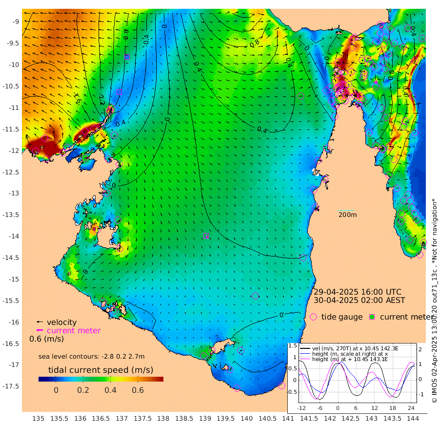 5cm/s 97T +3cm/s rms + 7cm/s -42T. ARA-GOC87 57m 24cm/s 153T +3cm/s rms + 2cm/s -2T. ARA-GOC87 60m 6cm/s -78T +2cm/s rms + 3cm/s 61T. ARA-GOC87 47m 110cm Daru 99cm Bobo Island 41cm Meer Island Barge 52cm Bramble Cay 86cm Unnamed Cay 83cm Pearce Cay 76cm Stephens Island 78cm Merrie England Shoals 103cm Mutacomal Reef 79cm Darnley Island Barge 36cm East Cay 98cm Yorke Island Barge 90cm Rennel Island 101cm Aureed Island 112cm Dungeness Reef 134cm Zagai Island 126cm Yam Island 129cm Dauan Island 129cm Saibai Island 130cm Phipi Reef 138cm Warrior Reef - West 96cm Mabuiag Island Barge 94cm Half Way Island 113cm Coconut Island 107cm Dugong Islet 118cm Poll Island 119cm Kirkcaldie Reef 133cm Suarji Island 125cm Sue Islet 29cm Hawkesbury Island 120cm Alert Patches 120cm Twin Island 51cm Badu Island 130cm St Pauls (Moa Island) 60cm Kubin (Moa Island) 101cm Ince Point 90cm Thursday Island 93cm Nardana Patches 70cm Turtle Head 51cm Round Island 33cm Goods Island 21cm Booby Island 15cm White Rocks Area 41cm Carpentaria 104cm Papou Point 38cm Bampfield Head 18cm Crab Island 23cm Red Wallis Island 51cm Packe Island 114cm Harrington Reef 43cm Herald Camp 46cm Sharp Point 51cm Red Island Point 91cm Possession Island 112cm Alpha Rock 117cm Frederick Point 106cm Wyborn Reef Light 111cm Tetley Island 47cm Triangle Reef 104cm Turtle Head Island 42cm Maclennan Cay 18cm Raine Island 83cm Mcsweeny Reef 74cm Collette Reef 46cm Shadwell Reef 76cm Hannibal Island 48cm Round Point 22cm Vrilya Point 49cm Cape Grenville 43cm Hicks Island 51cm Sir Charles Hardy Island 17cm Harvey Island 32cm Kay Reef 24cm Rocky Island 17cm Chapman Island 19cm Ham Reef 26cm Jubilee Reef 28cm Night Island 19cm Unnamed Reef No. 3 23cm Morris Island 29cm 1st 3 Mile Opening 28cm Creech Reef 21cm Fife Island 17cm Eden Reef 25cm Stanley Island 17cm Normanby River -205cm Yabooma Island -216cm Hutchison River -204cm Elcho Island -206cm North West Crocodile Island -95cm Cape Wessel -164cm Stevens Island -33cm Guluwuru Island -158cm Hopeful Bay -118cm Auster Point -123cm Two Island Bay -149cm Cadell Strait 93cm Mallison Island -49cm Melville Bay (Gove Harbour) -45cm Truant Island -17cm Cape Arnhem -17cm Cape Grey -19cm Hawk Island -22cm Milner Bay (Groote Eylandt) -22cm Cape Beatrice -4cm West Island 2cm Centre Island 3cm Mornington Island 6cm West Wellesley Islands -22cm Bountiful Island -66cm Albert River Mouth -72cm Sweers Island -60cm Karumba 14cm Nassau River Offshore 37cm Christmas Creek 23cm Archer River 34cm Boyd Point 20cm Weipa (Humbug Point) 26cm Pennefather River 25cm Cullen Point