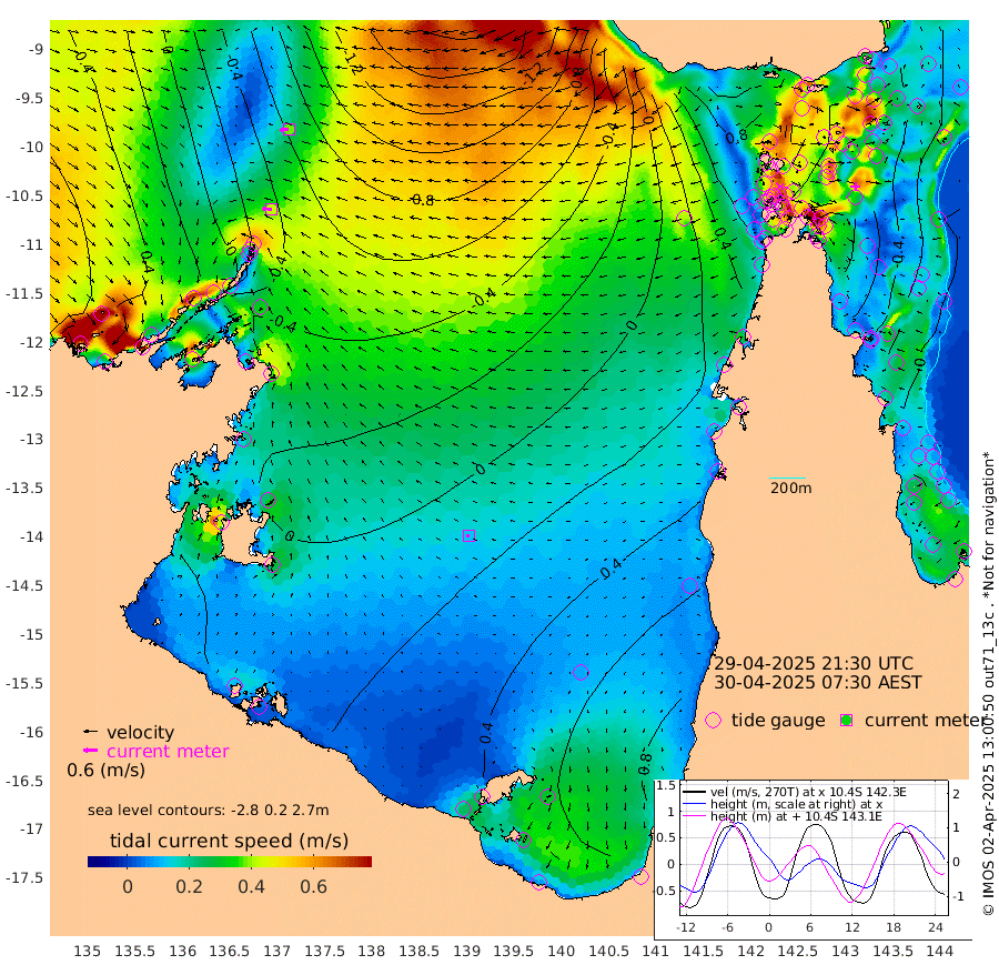 41cm/s -88T +3cm/s rms + 7cm/s -42T. ARA-GOC87 57m 13cm/s -108T +3cm/s rms + 2cm/s -2T. ARA-GOC87 60m 37cm/s -97T +2cm/s rms + 3cm/s 61T. ARA-GOC87 47m -59cm Daru -65cm Bobo Island -19cm Meer Island Barge -27cm Bramble Cay -44cm Unnamed Cay -52cm Pearce Cay -44cm Stephens Island -42cm Merrie England Shoals -52cm Mutacomal Reef -46cm Darnley Island Barge -13cm East Cay -57cm Yorke Island Barge -46cm Rennel Island -56cm Aureed Island -48cm Dungeness Reef -62cm Zagai Island -48cm Yam Island -21cm Dauan Island -31cm Saibai Island -11cm Phipi Reef -50cm Warrior Reef - West -9cm Mabuiag Island Barge -54cm Half Way Island -59cm Coconut Island -55cm Dugong Islet -53cm Poll Island -52cm Kirkcaldie Reef -34cm Suarji Island -59cm Sue Islet 55cm Hawkesbury Island -28cm Alert Patches -39cm Twin Island 42cm Badu Island -42cm St Pauls (Moa Island) 27cm Kubin (Moa Island) -13cm Ince Point 2cm Thursday Island -2cm Nardana Patches 30cm Turtle Head 44cm Round Island 62cm Goods Island 73cm Booby Island 74cm White Rocks Area 32cm Carpentaria -39cm Papou Point 70cm Bampfield Head 53cm Crab Island 66cm Red Wallis Island 47cm Packe Island -62cm Harrington Reef 73cm Herald Camp -18cm Sharp Point 23cm Red Island Point -6cm Possession Island -43cm Alpha Rock -50cm Frederick Point -60cm Wyborn Reef Light -61cm Tetley Island -17cm Triangle Reef -69cm Turtle Head Island -11cm Maclennan Cay 4cm Raine Island -44cm Mcsweeny Reef -36cm Collette Reef -14cm Shadwell Reef -40cm Hannibal Island -23cm Round Point 37cm Vrilya Point -17cm Cape Grenville -15cm Hicks Island -8cm Sir Charles Hardy Island -7cm Harvey Island -6cm Kay Reef 3cm Rocky Island 9cm Chapman Island 4cm Ham Reef -3cm Jubilee Reef -3cm Night Island 4cm Unnamed Reef No. 3 1cm Morris Island 2cm 1st 3 Mile Opening -1cm Creech Reef -2cm Fife Island 1cm Eden Reef 0cm Stanley Island -2cm Normanby River 48cm Yabooma Island 33cm Hutchison River 36cm Elcho Island 42cm North West Crocodile Island -37cm Cape Wessel 0cm Stevens Island -80cm Guluwuru Island 18cm Hopeful Bay -17cm Auster Point -25cm Two Island Bay -37cm Cadell Strait -194cm Mallison Island -50cm Melville Bay (Gove Harbour) -63cm Truant Island -48cm Cape Arnhem -25cm Cape Grey -10cm Hawk Island 5cm Milner Bay (Groote Eylandt) 17cm Cape Beatrice 32cm West Island 29cm Centre Island 62cm Mornington Island 62cm West Wellesley Islands 115cm Bountiful Island 115cm Albert River Mouth 114cm Sweers Island 121cm Karumba 79cm Nassau River Offshore 68cm Christmas Creek 59cm Archer River 43cm Boyd Point 70cm Weipa (Humbug Point) 23cm Pennefather River 50cm Cullen Point