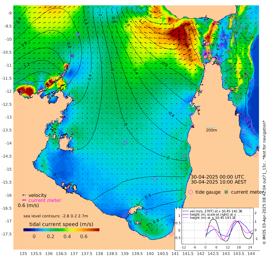 5cm/s -21T +3cm/s rms + 7cm/s -42T. ARA-GOC87 57m 16cm/s -85T +3cm/s rms + 2cm/s -2T. ARA-GOC87 60m 10cm/s 29T +2cm/s rms + 3cm/s 61T. ARA-GOC87 47m 22cm Daru 31cm Bobo Island 31cm Meer Island Barge 41cm Bramble Cay 30cm Unnamed Cay 39cm Pearce Cay 34cm Stephens Island 30cm Merrie England Shoals 22cm Mutacomal Reef 28cm Darnley Island Barge 39cm East Cay 21cm Yorke Island Barge 25cm Rennel Island 26cm Aureed Island 17cm Dungeness Reef -7cm Zagai Island -7cm Yam Island -18cm Dauan Island -28cm Saibai Island 2cm Phipi Reef 2cm Warrior Reef - West -43cm Mabuiag Island Barge 18cm Half Way Island 10cm Coconut Island 13cm Dugong Islet 0cm Poll Island -6cm Kirkcaldie Reef -10cm Suarji Island -14cm Sue Islet -58cm Hawkesbury Island -32cm Alert Patches -27cm Twin Island -53cm Badu Island -31cm St Pauls (Moa Island) -42cm Kubin (Moa Island) -40cm Ince Point -50cm Thursday Island -46cm Nardana Patches -45cm Turtle Head -47cm Round Island -55cm Goods Island -83cm Booby Island -67cm White Rocks Area -122cm Carpentaria -28cm Papou Point -85cm Bampfield Head -83cm Crab Island -79cm Red Wallis Island -48cm Packe Island 11cm Harrington Reef -61cm Herald Camp -15cm Sharp Point -44cm Red Island Point -35cm Possession Island -24cm Alpha Rock -10cm Frederick Point 15cm Wyborn Reef Light 8cm Tetley Island 24cm Triangle Reef 8cm Turtle Head Island 28cm Maclennan Cay 27cm Raine Island 25cm Mcsweeny Reef 25cm Collette Reef 24cm Shadwell Reef 32cm Hannibal Island 42cm Round Point -105cm Vrilya Point 31cm Cape Grenville 36cm Hicks Island 35cm Sir Charles Hardy Island 9cm Harvey Island 33cm Kay Reef 35cm Rocky Island 33cm Chapman Island 26cm Ham Reef 28cm Jubilee Reef 27cm Night Island 26cm Unnamed Reef No. 3 36cm Morris Island 24cm 1st 3 Mile Opening 27cm Creech Reef 36cm Fife Island 45cm Eden Reef 30cm Stanley Island 45cm Normanby River 173cm Yabooma Island 210cm Hutchison River 178cm Elcho Island 176cm North West Crocodile Island 95cm Cape Wessel 149cm Stevens Island 88cm Guluwuru Island 142cm Hopeful Bay 110cm Auster Point 115cm Two Island Bay 164cm Cadell Strait 12cm Mallison Island 93cm Melville Bay (Gove Harbour) 87cm Truant Island 56cm Cape Arnhem 49cm Cape Grey 53cm Hawk Island 33cm Milner Bay (Groote Eylandt) 37cm Cape Beatrice 12cm West Island 4cm Centre Island 66cm Mornington Island 58cm West Wellesley Islands 121cm Bountiful Island 151cm Albert River Mouth 155cm Sweers Island 144cm Karumba 55cm Nassau River Offshore 19cm Christmas Creek -20cm Archer River -44cm Boyd Point -28cm Weipa (Humbug Point) -74cm Pennefather River -79cm Cullen Point