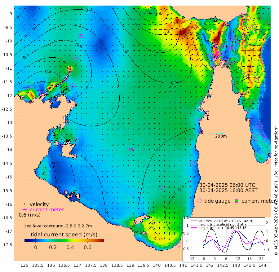 16cm/s -22T +3cm/s rms + 7cm/s -42T. ARA-GOC87 57m 23cm/s 20T +3cm/s rms + 2cm/s -2T. ARA-GOC87 60m 12cm/s -24T +2cm/s rms + 3cm/s 61T. ARA-GOC87 47m -88cm Daru -93cm Bobo Island -87cm Meer Island Barge -99cm Bramble Cay -94cm Unnamed Cay -105cm Pearce Cay -98cm Stephens Island -92cm Merrie England Shoals -85cm Mutacomal Reef -89cm Darnley Island Barge -99cm East Cay -83cm Yorke Island Barge -92cm Rennel Island -90cm Aureed Island -90cm Dungeness Reef -61cm Zagai Island -63cm Yam Island -65cm Dauan Island -43cm Saibai Island -91cm Phipi Reef -75cm Warrior Reef - West -40cm Mabuiag Island Barge -83cm Half Way Island -86cm Coconut Island -80cm Dugong Islet -72cm Poll Island -72cm Kirkcaldie Reef -74cm Suarji Island -53cm Sue Islet -79cm Hawkesbury Island -65cm Alert Patches -63cm Twin Island -87cm Badu Island -56cm St Pauls (Moa Island) -80cm Kubin (Moa Island) -61cm Ince Point -61cm Thursday Island -62cm Nardana Patches -83cm Turtle Head -80cm Round Island -93cm Goods Island -76cm Booby Island -82cm White Rocks Area -14cm Carpentaria -52cm Papou Point -88cm Bampfield Head -56cm Crab Island -70cm Red Wallis Island -90cm Packe Island -84cm Harrington Reef -85cm Herald Camp -1cm Sharp Point -67cm Red Island Point -66cm Possession Island -45cm Alpha Rock -72cm Frederick Point -82cm Wyborn Reef Light -76cm Tetley Island -81cm Triangle Reef -86cm Turtle Head Island -88cm Maclennan Cay -87cm Raine Island -89cm Mcsweeny Reef -87cm Collette Reef -82cm Shadwell Reef -96cm Hannibal Island -104cm Round Point -26cm Vrilya Point -91cm Cape Grenville -97cm Hicks Island -102cm Sir Charles Hardy Island -28cm Harvey Island -92cm Kay Reef -92cm Rocky Island -94cm Chapman Island -83cm Ham Reef -86cm Jubilee Reef -81cm Night Island -86cm Unnamed Reef No. 3 -95cm Morris Island -91cm 1st 3 Mile Opening -89cm Creech Reef -91cm Fife Island -108cm Eden Reef -90cm Stanley Island -98cm Normanby River -119cm Yabooma Island -156cm Hutchison River -118cm Elcho Island -109cm North West Crocodile Island -58cm Cape Wessel -93cm Stevens Island -70cm Guluwuru Island -89cm Hopeful Bay -72cm Auster Point -65cm Two Island Bay -115cm Cadell Strait -17cm Mallison Island -68cm Melville Bay (Gove Harbour) -68cm Truant Island -42cm Cape Arnhem -17cm Cape Grey -10cm Hawk Island 33cm Milner Bay (Groote Eylandt) 29cm Cape Beatrice 70cm West Island 71cm Centre Island 0cm Mornington Island 9cm West Wellesley Islands -32cm Bountiful Island -18cm Albert River Mouth 2cm Sweers Island -24cm Karumba -45cm Nassau River Offshore -65cm Christmas Creek -62cm Archer River -51cm Boyd Point -74cm Weipa (Humbug Point) -25cm Pennefather River -38cm Cullen Point