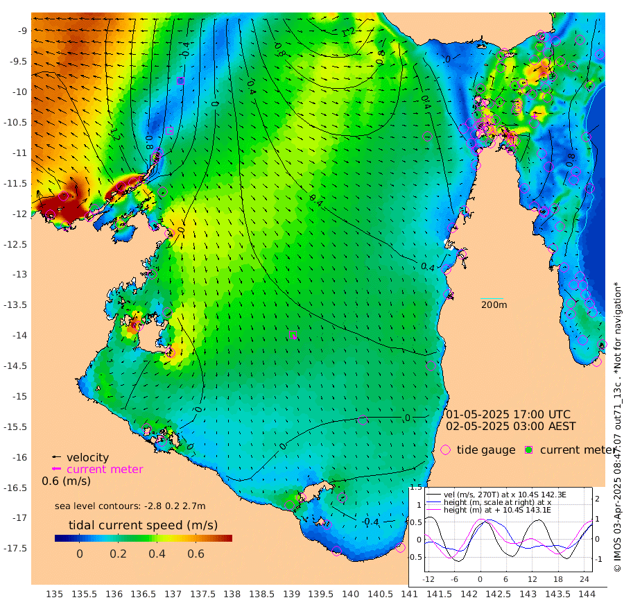 16cm/s 115T +3cm/s rms + 7cm/s -42T. ARA-GOC87 57m 35cm/s 159T +3cm/s rms + 2cm/s -2T. ARA-GOC87 60m 4cm/s 156T +2cm/s rms + 3cm/s 61T. ARA-GOC87 47m 109cm Daru 105cm Bobo Island 77cm Meer Island Barge 82cm Bramble Cay 100cm Unnamed Cay 103cm Pearce Cay 100cm Stephens Island 95cm Merrie England Shoals 103cm Mutacomal Reef 104cm Darnley Island Barge 76cm East Cay 109cm Yorke Island Barge 99cm Rennel Island 108cm Aureed Island 107cm Dungeness Reef 104cm Zagai Island 100cm Yam Island 96cm Dauan Island 95cm Saibai Island 90cm Phipi Reef 110cm Warrior Reef - West 67cm Mabuiag Island Barge 104cm Half Way Island 104cm Coconut Island 111cm Dugong Islet 101cm Poll Island 107cm Kirkcaldie Reef 95cm Suarji Island 108cm Sue Islet 44cm Hawkesbury Island 93cm Alert Patches 96cm Twin Island 49cm Badu Island 98cm St Pauls (Moa Island) 59cm Kubin (Moa Island) 81cm Ince Point 74cm Thursday Island 75cm Nardana Patches 65cm Turtle Head 43cm Round Island 46cm Goods Island 39cm Booby Island 30cm White Rocks Area 52cm Carpentaria 81cm Papou Point 43cm Bampfield Head 32cm Crab Island 40cm Red Wallis Island 58cm Packe Island 112cm Harrington Reef 51cm Herald Camp 29cm Sharp Point 52cm Red Island Point 69cm Possession Island 88cm Alpha Rock 102cm Frederick Point 102cm Wyborn Reef Light 101cm Tetley Island 73cm Triangle Reef 109cm Turtle Head Island 76cm Maclennan Cay 57cm Raine Island 98cm Mcsweeny Reef 93cm Collette Reef 74cm Shadwell Reef 98cm Hannibal Island 81cm Round Point 40cm Vrilya Point 80cm Cape Grenville 77cm Hicks Island 89cm Sir Charles Hardy Island 26cm Harvey Island 71cm Kay Reef 64cm Rocky Island 61cm Chapman Island 62cm Ham Reef 67cm Jubilee Reef 62cm Night Island 62cm Unnamed Reef No. 3 65cm Morris Island 66cm 1st 3 Mile Opening 69cm Creech Reef 66cm Fife Island 71cm Eden Reef 69cm Stanley Island 67cm Normanby River -154cm Yabooma Island -165cm Hutchison River -161cm Elcho Island -164cm North West Crocodile Island -56cm Cape Wessel -123cm Stevens Island 2cm Guluwuru Island -119cm Hopeful Bay -82cm Auster Point -80cm Two Island Bay -86cm Cadell Strait 152cm Mallison Island -21cm Melville Bay (Gove Harbour) -14cm Truant Island -2cm Cape Arnhem -18cm Cape Grey -30cm Hawk Island -51cm Milner Bay (Groote Eylandt) -49cm Cape Beatrice -48cm West Island -48cm Centre Island -37cm Mornington Island -31cm West Wellesley Islands -63cm Bountiful Island -123cm Albert River Mouth -137cm Sweers Island -113cm Karumba 2cm Nassau River Offshore 41cm Christmas Creek 39cm Archer River 51cm Boyd Point 40cm Weipa (Humbug Point) 39cm Pennefather River 41cm Cullen Point