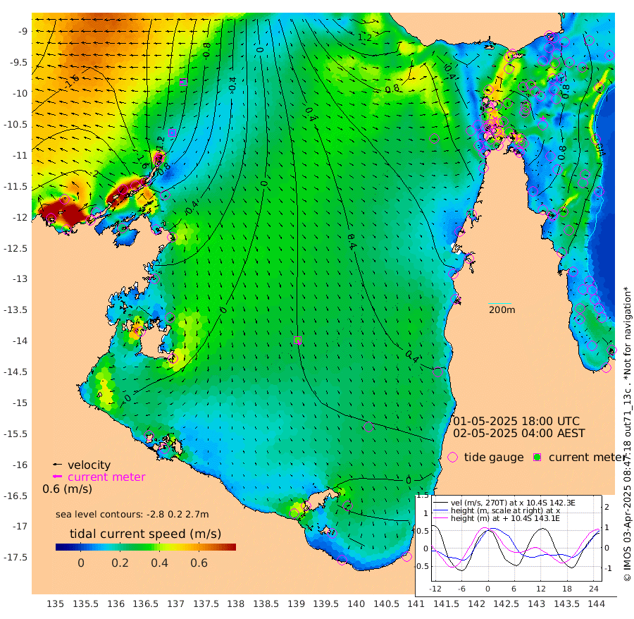 9cm/s -104T +3cm/s rms + 7cm/s -42T. ARA-GOC87 57m 36cm/s 160T +3cm/s rms + 2cm/s -2T. ARA-GOC87 60m 22cm/s -99T +2cm/s rms + 3cm/s 61T. ARA-GOC87 47m 92cm Daru 80cm Bobo Island 56cm Meer Island Barge 60cm Bramble Cay 82cm Unnamed Cay 76cm Pearce Cay 78cm Stephens Island 79cm Merrie England Shoals 89cm Mutacomal Reef 81cm Darnley Island Barge 55cm East Cay 88cm Yorke Island Barge 83cm Rennel Island 86cm Aureed Island 93cm Dungeness Reef 90cm Zagai Island 94cm Yam Island 92cm Dauan Island 91cm Saibai Island 87cm Phipi Reef 99cm Warrior Reef - West 74cm Mabuiag Island Barge 89cm Half Way Island 87cm Coconut Island 98cm Dugong Islet 91cm Poll Island 101cm Kirkcaldie Reef 94cm Suarji Island 100cm Sue Islet 60cm Hawkesbury Island 98cm Alert Patches 96cm Twin Island 60cm Badu Island 99cm St Pauls (Moa Island) 69cm Kubin (Moa Island) 88cm Ince Point 86cm Thursday Island 85cm Nardana Patches 78cm Turtle Head 57cm Round Island 62cm Goods Island 63cm Booby Island 53cm White Rocks Area 78cm Carpentaria 78cm Papou Point 62cm Bampfield Head 54cm Crab Island 64cm Red Wallis Island 73cm Packe Island 98cm Harrington Reef 74cm Herald Camp 33cm Sharp Point 64cm Red Island Point 74cm Possession Island 88cm Alpha Rock 95cm Frederick Point 85cm Wyborn Reef Light 86cm Tetley Island 55cm Triangle Reef 89cm Turtle Head Island 59cm Maclennan Cay 40cm Raine Island 81cm Mcsweeny Reef 75cm Collette Reef 58cm Shadwell Reef 77cm Hannibal Island 60cm Round Point 65cm Vrilya Point 64cm Cape Grenville 58cm Hicks Island 70cm Sir Charles Hardy Island 21cm Harvey Island 55cm Kay Reef 47cm Rocky Island 43cm Chapman Island 46cm Ham Reef 49cm Jubilee Reef 48cm Night Island 47cm Unnamed Reef No. 3 47cm Morris Island 51cm 1st 3 Mile Opening 53cm Creech Reef 49cm Fife Island 47cm Eden Reef 53cm Stanley Island 47cm Normanby River -222cm Yabooma Island -254cm Hutchison River -233cm Elcho Island -230cm North West Crocodile Island -123cm Cape Wessel -196cm Stevens Island -76cm Guluwuru Island -183cm Hopeful Bay -147cm Auster Point -148cm Two Island Bay -182cm Cadell Strait 53cm Mallison Island -87cm Melville Bay (Gove Harbour) -86cm Truant Island -49cm Cape Arnhem -44cm Cape Grey -47cm Hawk Island -47cm Milner Bay (Groote Eylandt) -37cm Cape Beatrice -10cm West Island -11cm Centre Island -6cm Mornington Island 3cm West Wellesley Islands -28cm Bountiful Island -92cm Albert River Mouth -104cm Sweers Island -77cm Karumba 32cm Nassau River Offshore 65cm Christmas Creek 58cm Archer River 67cm Boyd Point 59cm Weipa (Humbug Point) 58cm Pennefather River 64cm Cullen Point