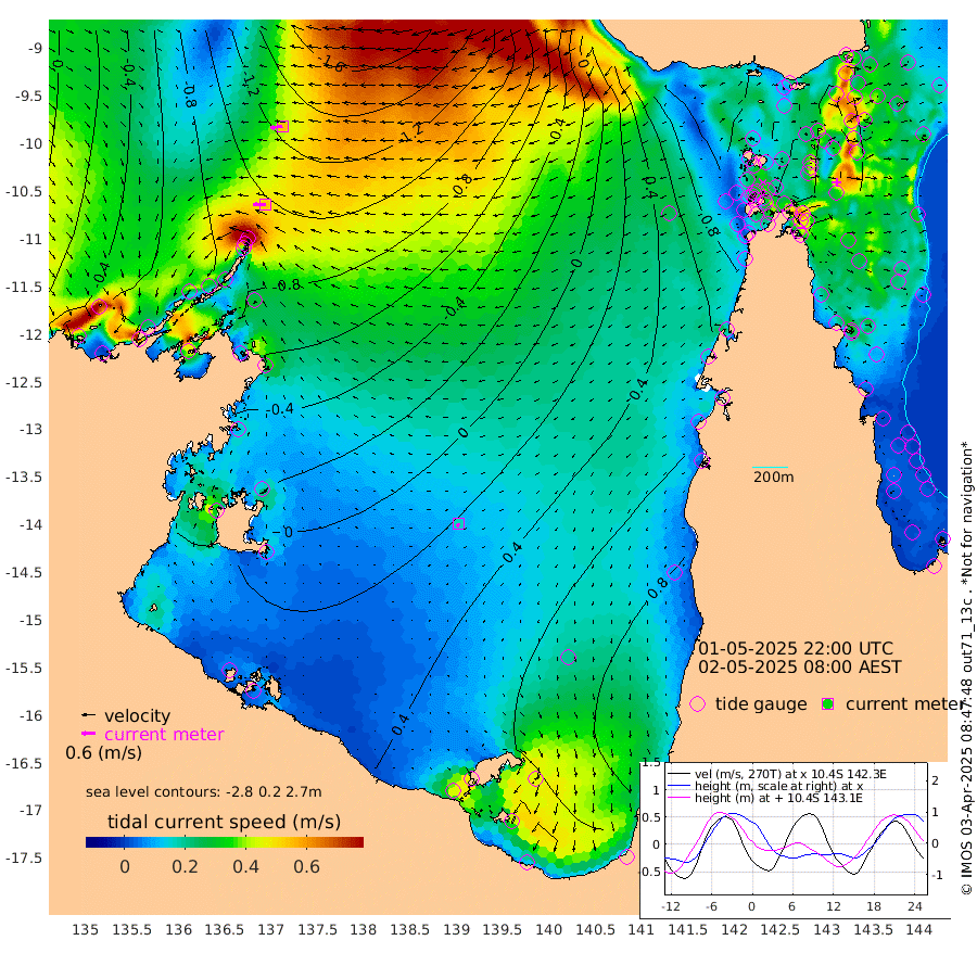 53cm/s -90T +3cm/s rms + 7cm/s -42T. ARA-GOC87 57m 17cm/s -149T +3cm/s rms + 2cm/s -2T. ARA-GOC87 60m 55cm/s -98T +2cm/s rms + 3cm/s 61T. ARA-GOC87 47m -10cm Daru -29cm Bobo Island -24cm Meer Island Barge -22cm Bramble Cay -15cm Unnamed Cay -25cm Pearce Cay -23cm Stephens Island -14cm Merrie England Shoals -4cm Mutacomal Reef -31cm Darnley Island Barge -20cm East Cay -26cm Yorke Island Barge -9cm Rennel Island -23cm Aureed Island 4cm Dungeness Reef 3cm Zagai Island 21cm Yam Island 50cm Dauan Island 33cm Saibai Island 65cm Phipi Reef 20cm Warrior Reef - West 55cm Mabuiag Island Barge -14cm Half Way Island -6cm Coconut Island -6cm Dugong Islet 9cm Poll Island 16cm Kirkcaldie Reef 38cm Suarji Island 3cm Sue Islet 101cm Hawkesbury Island 48cm Alert Patches 34cm Twin Island 97cm Badu Island 38cm St Pauls (Moa Island) 80cm Kubin (Moa Island) 58cm Ince Point 69cm Thursday Island 67cm Nardana Patches 90cm Turtle Head 88cm Round Island 107cm Goods Island 114cm Booby Island 113cm White Rocks Area 70cm Carpentaria 27cm Papou Point 98cm Bampfield Head 95cm Crab Island 110cm Red Wallis Island 100cm Packe Island -7cm Harrington Reef 112cm Herald Camp 12cm Sharp Point 76cm Red Island Point 51cm Possession Island 21cm Alpha Rock 15cm Frederick Point -13cm Wyborn Reef Light -8cm Tetley Island -14cm Triangle Reef -21cm Turtle Head Island -12cm Maclennan Cay -10cm Raine Island -17cm Mcsweeny Reef -17cm Collette Reef -14cm Shadwell Reef -22cm Hannibal Island -18cm Round Point 82cm Vrilya Point -12cm Cape Grenville -16cm Hicks Island -13cm Sir Charles Hardy Island -5cm Harvey Island -13cm Kay Reef -11cm Rocky Island -11cm Chapman Island -14cm Ham Reef -15cm Jubilee Reef -10cm Night Island -11cm Unnamed Reef No. 3 -12cm Morris Island -10cm 1st 3 Mile Opening -13cm Creech Reef -15cm Fife Island -23cm Eden Reef -13cm Stanley Island -21cm Normanby River -71cm Yabooma Island -96cm Hutchison River -79cm Elcho Island -66cm North West Crocodile Island -124cm Cape Wessel -106cm Stevens Island -150cm Guluwuru Island -88cm Hopeful Bay -109cm Auster Point -118cm Two Island Bay -146cm Cadell Strait -257cm Mallison Island -118cm Melville Bay (Gove Harbour) -134cm Truant Island -92cm Cape Arnhem -55cm Cape Grey -33cm Hawk Island -8cm Milner Bay (Groote Eylandt) 13cm Cape Beatrice 50cm West Island 47cm Centre Island 82cm Mornington Island 80cm West Wellesley Islands 117cm Bountiful Island 112cm Albert River Mouth 100cm Sweers Island 126cm Karumba 107cm Nassau River Offshore 101cm Christmas Creek 85cm Archer River 71cm Boyd Point 93cm Weipa (Humbug Point) 62cm Pennefather River 84cm Cullen Point