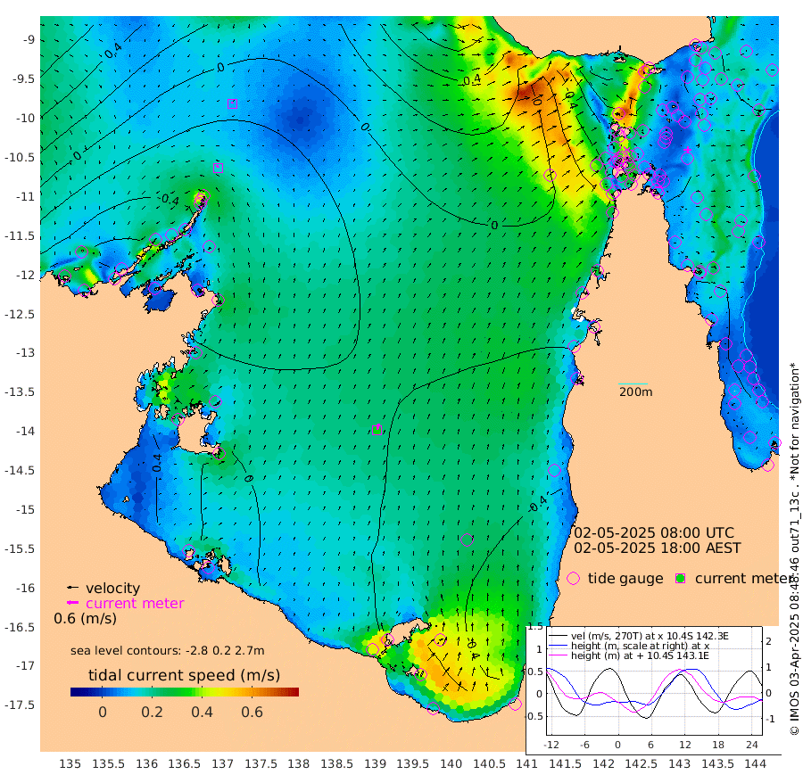 16cm/s -25T +3cm/s rms + 7cm/s -42T. ARA-GOC87 57m 34cm/s 13T +3cm/s rms + 2cm/s -2T. ARA-GOC87 60m 9cm/s -11T +2cm/s rms + 3cm/s 61T. ARA-GOC87 47m -66cm Daru -67cm Bobo Island -55cm Meer Island Barge -61cm Bramble Cay -59cm Unnamed Cay -74cm Pearce Cay -60cm Stephens Island -53cm Merrie England Shoals -59cm Mutacomal Reef -59cm Darnley Island Barge -59cm East Cay -60cm Yorke Island Barge -60cm Rennel Island -68cm Aureed Island -74cm Dungeness Reef -74cm Zagai Island -72cm Yam Island -113cm Dauan Island -92cm Saibai Island -122cm Phipi Reef -96cm Warrior Reef - West -65cm Mabuiag Island Barge -54cm Half Way Island -65cm Coconut Island -58cm Dugong Islet -65cm Poll Island -60cm Kirkcaldie Reef -73cm Suarji Island -55cm Sue Islet -78cm Hawkesbury Island -63cm Alert Patches -62cm Twin Island -95cm Badu Island -65cm St Pauls (Moa Island) -79cm Kubin (Moa Island) -65cm Ince Point -64cm Thursday Island -66cm Nardana Patches -82cm Turtle Head -66cm Round Island -85cm Goods Island -67cm Booby Island -66cm White Rocks Area -8cm Carpentaria -54cm Papou Point -55cm Bampfield Head -49cm Crab Island -65cm Red Wallis Island -85cm Packe Island -53cm Harrington Reef -73cm Herald Camp -10cm Sharp Point -66cm Red Island Point -54cm Possession Island -44cm Alpha Rock -60cm Frederick Point -56cm Wyborn Reef Light -56cm Tetley Island -59cm Triangle Reef -50cm Turtle Head Island -55cm Maclennan Cay -54cm Raine Island -57cm Mcsweeny Reef -55cm Collette Reef -53cm Shadwell Reef -59cm Hannibal Island -62cm Round Point -24cm Vrilya Point -51cm Cape Grenville -57cm Hicks Island -70cm Sir Charles Hardy Island -16cm Harvey Island -51cm Kay Reef -57cm Rocky Island -62cm Chapman Island -52cm Ham Reef -53cm Jubilee Reef -50cm Night Island -53cm Unnamed Reef No. 3 -56cm Morris Island -54cm 1st 3 Mile Opening -54cm Creech Reef -52cm Fife Island -67cm Eden Reef -50cm Stanley Island -53cm Normanby River -63cm Yabooma Island -95cm Hutchison River -65cm Elcho Island -60cm North West Crocodile Island -30cm Cape Wessel -49cm Stevens Island -59cm Guluwuru Island -46cm Hopeful Bay -34cm Auster Point -32cm Two Island Bay -86cm Cadell Strait -60cm Mallison Island -52cm Melville Bay (Gove Harbour) -49cm Truant Island -33cm Cape Arnhem -8cm Cape Grey -3cm Hawk Island 41cm Milner Bay (Groote Eylandt) 33cm Cape Beatrice 69cm West Island 71cm Centre Island -9cm Mornington Island -2cm West Wellesley Islands -40cm Bountiful Island -30cm Albert River Mouth -2cm Sweers Island -34cm Karumba -61cm Nassau River Offshore -79cm Christmas Creek -67cm Archer River -56cm Boyd Point -75cm Weipa (Humbug Point) -25cm Pennefather River -39cm Cullen Point
