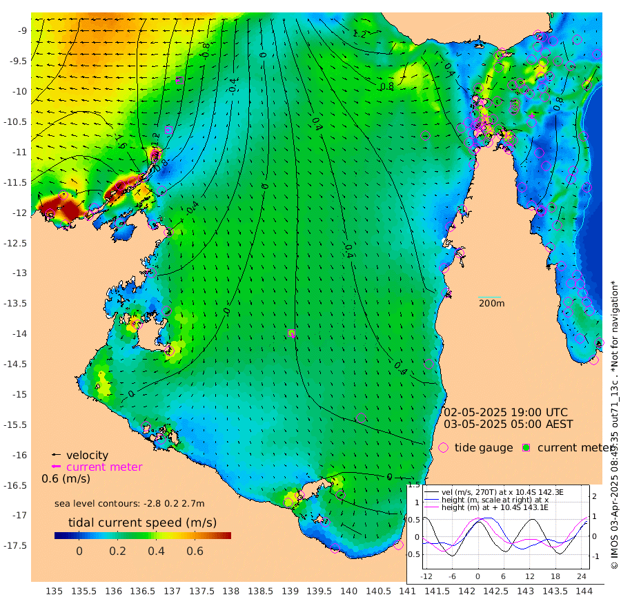 15cm/s -100T +3cm/s rms + 7cm/s -42T. ARA-GOC87 57m 38cm/s 163T +3cm/s rms + 2cm/s -2T. ARA-GOC87 60m 28cm/s -100T +2cm/s rms + 3cm/s 61T. ARA-GOC87 47m 96cm Daru 85cm Bobo Island 67cm Meer Island Barge 73cm Bramble Cay 91cm Unnamed Cay 86cm Pearce Cay 90cm Stephens Island 91cm Merrie England Shoals 96cm Mutacomal Reef 89cm Darnley Island Barge 70cm East Cay 93cm Yorke Island Barge 92cm Rennel Island 90cm Aureed Island 95cm Dungeness Reef 77cm Zagai Island 87cm Yam Island 73cm Dauan Island 71cm Saibai Island 71cm Phipi Reef 87cm Warrior Reef - West 64cm Mabuiag Island Barge 97cm Half Way Island 88cm Coconut Island 105cm Dugong Islet 89cm Poll Island 103cm Kirkcaldie Reef 85cm Suarji Island 95cm Sue Islet 73cm Hawkesbury Island 94cm Alert Patches 92cm Twin Island 62cm Badu Island 91cm St Pauls (Moa Island) 73cm Kubin (Moa Island) 86cm Ince Point 85cm Thursday Island 83cm Nardana Patches 81cm Turtle Head 61cm Round Island 72cm Goods Island 74cm Booby Island 66cm White Rocks Area 83cm Carpentaria 74cm Papou Point 68cm Bampfield Head 64cm Crab Island 76cm Red Wallis Island 83cm Packe Island 105cm Harrington Reef 85cm Herald Camp 28cm Sharp Point 71cm Red Island Point 73cm Possession Island 85cm Alpha Rock 96cm Frederick Point 89cm Wyborn Reef Light 88cm Tetley Island 63cm Triangle Reef 97cm Turtle Head Island 71cm Maclennan Cay 53cm Raine Island 90cm Mcsweeny Reef 84cm Collette Reef 68cm Shadwell Reef 88cm Hannibal Island 75cm Round Point 75cm Vrilya Point 79cm Cape Grenville 71cm Hicks Island 82cm Sir Charles Hardy Island 25cm Harvey Island 71cm Kay Reef 61cm Rocky Island 57cm Chapman Island 59cm Ham Reef 62cm Jubilee Reef 60cm Night Island 61cm Unnamed Reef No. 3 62cm Morris Island 62cm 1st 3 Mile Opening 66cm Creech Reef 65cm Fife Island 63cm Eden Reef 69cm Stanley Island 67cm Normanby River -204cm Yabooma Island -239cm Hutchison River -219cm Elcho Island -213cm North West Crocodile Island -122cm Cape Wessel -188cm Stevens Island -87cm Guluwuru Island -173cm Hopeful Bay -143cm Auster Point -142cm Two Island Bay -175cm Cadell Strait 22cm Mallison Island -93cm Melville Bay (Gove Harbour) -94cm Truant Island -58cm Cape Arnhem -50cm Cape Grey -53cm Hawk Island -54cm Milner Bay (Groote Eylandt) -40cm Cape Beatrice -12cm West Island -16cm Centre Island -7cm Mornington Island 2cm West Wellesley Islands -26cm Bountiful Island -95cm Albert River Mouth -108cm Sweers Island -75cm Karumba 39cm Nassau River Offshore 73cm Christmas Creek 67cm Archer River 73cm Boyd Point 67cm Weipa (Humbug Point) 65cm Pennefather River 72cm Cullen Point