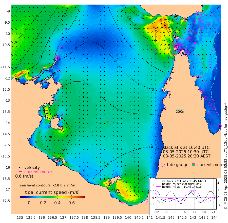 1cm/s -88T +3cm/s rms + 7cm/s -42T. ARA-GOC87 57m 35cm/s 11T +3cm/s rms + 2cm/s -2T. ARA-GOC87 60m 8cm/s 135T +2cm/s rms + 3cm/s 61T. ARA-GOC87 47m -44cm Daru -45cm Bobo Island -49cm Meer Island Barge -48cm Bramble Cay -41cm Unnamed Cay -53cm Pearce Cay -46cm Stephens Island -38cm Merrie England Shoals -36cm Mutacomal Reef -54cm Darnley Island Barge -48cm East Cay -50cm Yorke Island Barge -37cm Rennel Island -52cm Aureed Island -44cm Dungeness Reef -38cm Zagai Island -29cm Yam Island -61cm Dauan Island -52cm Saibai Island -63cm Phipi Reef -58cm Warrior Reef - West -5cm Mabuiag Island Barge -36cm Half Way Island -30cm Coconut Island -38cm Dugong Islet -28cm Poll Island -25cm Kirkcaldie Reef -20cm Suarji Island -30cm Sue Islet 30cm Hawkesbury Island -7cm Alert Patches -9cm Twin Island 13cm Badu Island -10cm St Pauls (Moa Island) 14cm Kubin (Moa Island) 0cm Ince Point 9cm Thursday Island 6cm Nardana Patches 4cm Turtle Head 35cm Round Island 21cm Goods Island 41cm Booby Island 44cm White Rocks Area 61cm Carpentaria 2cm Papou Point 69cm Bampfield Head 41cm Crab Island 36cm Red Wallis Island 12cm Packe Island -26cm Harrington Reef 32cm Herald Camp -4cm Sharp Point 14cm Red Island Point 17cm Possession Island -6cm Alpha Rock -17cm Frederick Point -26cm Wyborn Reef Light -22cm Tetley Island -45cm Triangle Reef -15cm Turtle Head Island -44cm Maclennan Cay -42cm Raine Island -43cm Mcsweeny Reef -45cm Collette Reef -46cm Shadwell Reef -49cm Hannibal Island -45cm Round Point 45cm Vrilya Point -41cm Cape Grenville -44cm Hicks Island -58cm Sir Charles Hardy Island -13cm Harvey Island -43cm Kay Reef -48cm Rocky Island -52cm Chapman Island -46cm Ham Reef -46cm Jubilee Reef -43cm Night Island -46cm Unnamed Reef No. 3 -46cm Morris Island -42cm 1st 3 Mile Opening -47cm Creech Reef -51cm Fife Island -60cm Eden Reef -46cm Stanley Island -48cm Normanby River 52cm Yabooma Island 43cm Hutchison River 49cm Elcho Island 50cm North West Crocodile Island 22cm Cape Wessel 40cm Stevens Island -27cm Guluwuru Island 33cm Hopeful Bay 34cm Auster Point 31cm Two Island Bay -3cm Cadell Strait -138cm Mallison Island -16cm Melville Bay (Gove Harbour) -11cm Truant Island -17cm Cape Arnhem -7cm Cape Grey -10cm Hawk Island 13cm Milner Bay (Groote Eylandt) 0cm Cape Beatrice 7cm West Island 13cm Centre Island -65cm Mornington Island -67cm West Wellesley Islands -91cm Bountiful Island -84cm Albert River Mouth -71cm Sweers Island -83cm Karumba -92cm Nassau River Offshore -85cm Christmas Creek -42cm Archer River -21cm Boyd Point -29cm Weipa (Humbug Point) 13cm Pennefather River 23cm Cullen Point