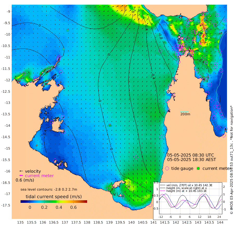 18cm/s 20T +3cm/s rms + 7cm/s -42T. ARA-GOC87 57m 27cm/s 2T +3cm/s rms + 2cm/s -2T. ARA-GOC87 60m 20cm/s 34T +2cm/s rms + 3cm/s 61T. ARA-GOC87 47m 12cm Daru 25cm Bobo Island 26cm Meer Island Barge 30cm Bramble Cay 26cm Unnamed Cay 23cm Pearce Cay 34cm Stephens Island 35cm Merrie England Shoals 15cm Mutacomal Reef 32cm Darnley Island Barge 30cm East Cay 22cm Yorke Island Barge 20cm Rennel Island 22cm Aureed Island -7cm Dungeness Reef -41cm Zagai Island -51cm Yam Island -123cm Dauan Island -107cm Saibai Island -110cm Phipi Reef -60cm Warrior Reef - West -106cm Mabuiag Island Barge 21cm Half Way Island 4cm Coconut Island 11cm Dugong Islet -22cm Poll Island -18cm Kirkcaldie Reef -45cm Suarji Island -23cm Sue Islet -164cm Hawkesbury Island -59cm Alert Patches -52cm Twin Island -158cm Badu Island -66cm St Pauls (Moa Island) -128cm Kubin (Moa Island) -84cm Ince Point -98cm Thursday Island -96cm Nardana Patches -119cm Turtle Head -127cm Round Island -147cm Goods Island -154cm Booby Island -140cm White Rocks Area -100cm Carpentaria -57cm Papou Point -138cm Bampfield Head -128cm Crab Island -146cm Red Wallis Island -135cm Packe Island 21cm Harrington Reef -155cm Herald Camp -16cm Sharp Point -107cm Red Island Point -72cm Possession Island -34cm Alpha Rock -23cm Frederick Point 11cm Wyborn Reef Light 1cm Tetley Island 7cm Triangle Reef 15cm Turtle Head Island 19cm Maclennan Cay 16cm Raine Island 28cm Mcsweeny Reef 28cm Collette Reef 19cm Shadwell Reef 35cm Hannibal Island 31cm Round Point -111cm Vrilya Point 32cm Cape Grenville 26cm Hicks Island 14cm Sir Charles Hardy Island 10cm Harvey Island 31cm Kay Reef 20cm Rocky Island 14cm Chapman Island 17cm Ham Reef 20cm Jubilee Reef 22cm Night Island 19cm Unnamed Reef No. 3 25cm Morris Island 18cm 1st 3 Mile Opening 22cm Creech Reef 35cm Fife Island 29cm Eden Reef 29cm Stanley Island 38cm Normanby River -40cm Yabooma Island -40cm Hutchison River -29cm Elcho Island -35cm North West Crocodile Island 11cm Cape Wessel -11cm Stevens Island 18cm Guluwuru Island -12cm Hopeful Bay 2cm Auster Point -4cm Two Island Bay -20cm Cadell Strait 60cm Mallison Island 14cm Melville Bay (Gove Harbour) 16cm Truant Island 19cm Cape Arnhem 32cm Cape Grey 33cm Hawk Island 59cm Milner Bay (Groote Eylandt) 55cm Cape Beatrice 74cm West Island 74cm Centre Island 48cm Mornington Island 55cm West Wellesley Islands 32cm Bountiful Island 53cm Albert River Mouth 81cm Sweers Island 39cm Karumba -11cm Nassau River Offshore -47cm Christmas Creek -71cm Archer River -79cm Boyd Point -95cm Weipa (Humbug Point) -72cm Pennefather River -110cm Cullen Point
