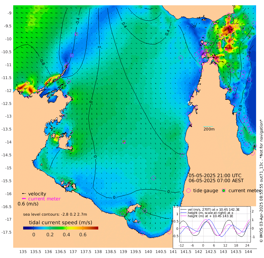 9cm/s -108T +3cm/s rms + 7cm/s -42T. ARA-GOC87 57m 34cm/s 167T +3cm/s rms + 2cm/s -2T. ARA-GOC87 60m 19cm/s -101T +2cm/s rms + 3cm/s 61T. ARA-GOC87 47m 119cm Daru 119cm Bobo Island 92cm Meer Island Barge 111cm Bramble Cay 122cm Unnamed Cay 124cm Pearce Cay 125cm Stephens Island 127cm Merrie England Shoals 125cm Mutacomal Reef 115cm Darnley Island Barge 106cm East Cay 115cm Yorke Island Barge 121cm Rennel Island 115cm Aureed Island 109cm Dungeness Reef 67cm Zagai Island 82cm Yam Island 32cm Dauan Island 32cm Saibai Island 40cm Phipi Reef 77cm Warrior Reef - West 33cm Mabuiag Island Barge 124cm Half Way Island 107cm Coconut Island 125cm Dugong Islet 96cm Poll Island 109cm Kirkcaldie Reef 74cm Suarji Island 91cm Sue Islet 58cm Hawkesbury Island 80cm Alert Patches 85cm Twin Island 33cm Badu Island 75cm St Pauls (Moa Island) 59cm Kubin (Moa Island) 67cm Ince Point 62cm Thursday Island 61cm Nardana Patches 56cm Turtle Head 45cm Round Island 46cm Goods Island 38cm Booby Island 40cm White Rocks Area 34cm Carpentaria 67cm Papou Point 36cm Bampfield Head 29cm Crab Island 47cm Red Wallis Island 67cm Packe Island 131cm Harrington Reef 61cm Herald Camp 18cm Sharp Point 58cm Red Island Point 62cm Possession Island 82cm Alpha Rock 104cm Frederick Point 116cm Wyborn Reef Light 112cm Tetley Island 84cm Triangle Reef 126cm Turtle Head Island 96cm Maclennan Cay 73cm Raine Island 118cm Mcsweeny Reef 110cm Collette Reef 87cm Shadwell Reef 119cm Hannibal Island 118cm Round Point 34cm Vrilya Point 111cm Cape Grenville 103cm Hicks Island 108cm Sir Charles Hardy Island 35cm Harvey Island 103cm Kay Reef 87cm Rocky Island 82cm Chapman Island 81cm Ham Reef 84cm Jubilee Reef 83cm Night Island 85cm Unnamed Reef No. 3 91cm Morris Island 76cm 1st 3 Mile Opening 88cm Creech Reef 98cm Fife Island 96cm Eden Reef 95cm Stanley Island 107cm Normanby River -79cm Yabooma Island -94cm Hutchison River -94cm Elcho Island -87cm North West Crocodile Island -38cm Cape Wessel -73cm Stevens Island -26cm Guluwuru Island -67cm Hopeful Bay -54cm Auster Point -45cm Two Island Bay -54cm Cadell Strait 44cm Mallison Island -30cm Melville Bay (Gove Harbour) -30cm Truant Island -22cm Cape Arnhem -29cm Cape Grey -31cm Hawk Island -52cm Milner Bay (Groote Eylandt) -40cm Cape Beatrice -33cm West Island -41cm Centre Island -22cm Mornington Island -21cm West Wellesley Islands -35cm Bountiful Island -96cm Albert River Mouth -105cm Sweers Island -71cm Karumba 23cm Nassau River Offshore 49cm Christmas Creek 41cm Archer River 43cm Boyd Point 39cm Weipa (Humbug Point) 30cm Pennefather River 37cm Cullen Point