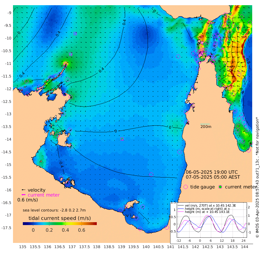 16cm/s 115T +3cm/s rms + 7cm/s -42T. ARA-GOC87 57m 21cm/s 165T +3cm/s rms + 2cm/s -2T. ARA-GOC87 60m 11cm/s 112T +2cm/s rms + 3cm/s 61T. ARA-GOC87 47m 18cm Daru 25cm Bobo Island 65cm Meer Island Barge 63cm Bramble Cay 44cm Unnamed Cay 37cm Pearce Cay 48cm Stephens Island 48cm Merrie England Shoals 27cm Mutacomal Reef 53cm Darnley Island Barge 73cm East Cay 34cm Yorke Island Barge 29cm Rennel Island 25cm Aureed Island 5cm Dungeness Reef -23cm Zagai Island -17cm Yam Island -24cm Dauan Island -17cm Saibai Island -40cm Phipi Reef -19cm Warrior Reef - West -21cm Mabuiag Island Barge 25cm Half Way Island 5cm Coconut Island 18cm Dugong Islet -9cm Poll Island -7cm Kirkcaldie Reef -35cm Suarji Island -5cm Sue Islet 33cm Hawkesbury Island -24cm Alert Patches -20cm Twin Island 7cm Badu Island -33cm St Pauls (Moa Island) 12cm Kubin (Moa Island) -17cm Ince Point -12cm Thursday Island -14cm Nardana Patches 3cm Turtle Head 15cm Round Island 25cm Goods Island 29cm Booby Island 26cm White Rocks Area 25cm Carpentaria -24cm Papou Point 43cm Bampfield Head 16cm Crab Island 30cm Red Wallis Island 24cm Packe Island 7cm Harrington Reef 42cm Herald Camp -20cm Sharp Point 0cm Red Island Point -14cm Possession Island -8cm Alpha Rock -6cm Frederick Point 21cm Wyborn Reef Light 15cm Tetley Island 54cm Triangle Reef 18cm Turtle Head Island 61cm Maclennan Cay 69cm Raine Island 41cm Mcsweeny Reef 48cm Collette Reef 61cm Shadwell Reef 54cm Hannibal Island 68cm Round Point 15cm Vrilya Point 65cm Cape Grenville 65cm Hicks Island 82cm Sir Charles Hardy Island 19cm Harvey Island 78cm Kay Reef 75cm Rocky Island 84cm Chapman Island 79cm Ham Reef 73cm Jubilee Reef 63cm Night Island 78cm Unnamed Reef No. 3 75cm Morris Island 67cm 1st 3 Mile Opening 73cm Creech Reef 79cm Fife Island 92cm Eden Reef 80cm Stanley Island 87cm Normanby River 76cm Yabooma Island 72cm Hutchison River 58cm Elcho Island 50cm North West Crocodile Island 74cm Cape Wessel 71cm Stevens Island 73cm Guluwuru Island 74cm Hopeful Bay 64cm Auster Point 71cm Two Island Bay 86cm Cadell Strait 199cm Mallison Island 61cm Melville Bay (Gove Harbour) 69cm Truant Island 39cm Cape Arnhem 3cm Cape Grey -10cm Hawk Island -46cm Milner Bay (Groote Eylandt) -51cm Cape Beatrice -83cm West Island -89cm Centre Island -76cm Mornington Island -70cm West Wellesley Islands -71cm Bountiful Island -116cm Albert River Mouth -124cm Sweers Island -110cm Karumba -30cm Nassau River Offshore 4cm Christmas Creek 23cm Archer River 29cm Boyd Point 35cm Weipa (Humbug Point) 7cm Pennefather River 28cm Cullen Point