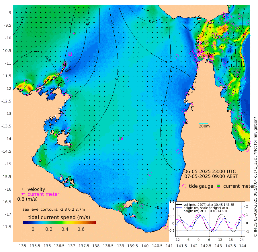 19cm/s -91T +3cm/s rms + 7cm/s -42T. ARA-GOC87 57m 26cm/s 173T +3cm/s rms + 2cm/s -2T. ARA-GOC87 60m 26cm/s -94T +2cm/s rms + 3cm/s 61T. ARA-GOC87 47m 116cm Daru 111cm Bobo Island 48cm Meer Island Barge 73cm Bramble Cay 99cm Unnamed Cay 108cm Pearce Cay 97cm Stephens Island 100cm Merrie England Shoals 118cm Mutacomal Reef 82cm Darnley Island Barge 59cm East Cay 97cm Yorke Island Barge 109cm Rennel Island 105cm Aureed Island 115cm Dungeness Reef 96cm Zagai Island 111cm Yam Island 72cm Dauan Island 64cm Saibai Island 87cm Phipi Reef 109cm Warrior Reef - West 64cm Mabuiag Island Barge 113cm Half Way Island 113cm Coconut Island 122cm Dugong Islet 115cm Poll Island 124cm Kirkcaldie Reef 109cm Suarji Island 105cm Sue Islet 62cm Hawkesbury Island 106cm Alert Patches 112cm Twin Island 48cm Badu Island 112cm St Pauls (Moa Island) 74cm Kubin (Moa Island) 94cm Ince Point 85cm Thursday Island 86cm Nardana Patches 70cm Turtle Head 57cm Round Island 46cm Goods Island 31cm Booby Island 37cm White Rocks Area 19cm Carpentaria 97cm Papou Point 21cm Bampfield Head 25cm Crab Island 43cm Red Wallis Island 74cm Packe Island 134cm Harrington Reef 58cm Herald Camp 35cm Sharp Point 71cm Red Island Point 84cm Possession Island 102cm Alpha Rock 121cm Frederick Point 114cm Wyborn Reef Light 116cm Tetley Island 54cm Triangle Reef 121cm Turtle Head Island 57cm Maclennan Cay 26cm Raine Island 95cm Mcsweeny Reef 81cm Collette Reef 46cm Shadwell Reef 87cm Hannibal Island 78cm Round Point 25cm Vrilya Point 71cm Cape Grenville 62cm Hicks Island 59cm Sir Charles Hardy Island 23cm Harvey Island 52cm Kay Reef 39cm Rocky Island 28cm Chapman Island 29cm Ham Reef 34cm Jubilee Reef 41cm Night Island 33cm Unnamed Reef No. 3 40cm Morris Island 27cm 1st 3 Mile Opening 38cm Creech Reef 45cm Fife Island 33cm Eden Reef 40cm Stanley Island 50cm Normanby River -90cm Yabooma Island -98cm Hutchison River -95cm Elcho Island -83cm North West Crocodile Island -63cm Cape Wessel -86cm Stevens Island -57cm Guluwuru Island -84cm Hopeful Bay -73cm Auster Point -62cm Two Island Bay -74cm Cadell Strait -73cm Mallison Island -53cm Melville Bay (Gove Harbour) -57cm Truant Island -39cm Cape Arnhem -33cm Cape Grey -23cm Hawk Island -33cm Milner Bay (Groote Eylandt) -17cm Cape Beatrice 1cm West Island -5cm Centre Island 13cm Mornington Island 7cm West Wellesley Islands 2cm Bountiful Island -34cm Albert River Mouth -42cm Sweers Island -9cm Karumba 40cm Nassau River Offshore 47cm Christmas Creek 27cm Archer River 27cm Boyd Point 22cm Weipa (Humbug Point) 22cm Pennefather River 26cm Cullen Point