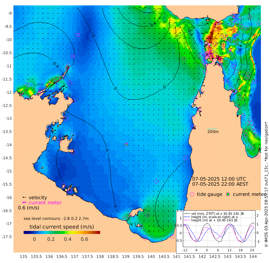 6cm/s 37T +3cm/s rms + 7cm/s -42T. ARA-GOC87 57m 22cm/s 15T +3cm/s rms + 2cm/s -2T. ARA-GOC87 60m 7cm/s 70T +2cm/s rms + 3cm/s 61T. ARA-GOC87 47m 66cm Daru 69cm Bobo Island 11cm Meer Island Barge 24cm Bramble Cay 50cm Unnamed Cay 55cm Pearce Cay 48cm Stephens Island 47cm Merrie England Shoals 62cm Mutacomal Reef 38cm Darnley Island Barge 13cm East Cay 53cm Yorke Island Barge 61cm Rennel Island 65cm Aureed Island 66cm Dungeness Reef 71cm Zagai Island 67cm Yam Island 17cm Dauan Island 21cm Saibai Island 31cm Phipi Reef 57cm Warrior Reef - West 27cm Mabuiag Island Barge 63cm Half Way Island 78cm Coconut Island 68cm Dugong Islet 73cm Poll Island 74cm Kirkcaldie Reef 87cm Suarji Island 65cm Sue Islet -28cm Hawkesbury Island 66cm Alert Patches 72cm Twin Island -11cm Badu Island 73cm St Pauls (Moa Island) 8cm Kubin (Moa Island) 48cm Ince Point 36cm Thursday Island 39cm Nardana Patches 12cm Turtle Head 7cm Round Island -18cm Goods Island -26cm Booby Island -13cm White Rocks Area 3cm Carpentaria 68cm Papou Point 1cm Bampfield Head -22cm Crab Island -22cm Red Wallis Island -5cm Packe Island 90cm Harrington Reef -20cm Herald Camp 24cm Sharp Point 11cm Red Island Point 53cm Possession Island 65cm Alpha Rock 76cm Frederick Point 71cm Wyborn Reef Light 73cm Tetley Island 13cm Triangle Reef 78cm Turtle Head Island 15cm Maclennan Cay -6cm Raine Island 49cm Mcsweeny Reef 37cm Collette Reef 8cm Shadwell Reef 40cm Hannibal Island 24cm Round Point -23cm Vrilya Point 22cm Cape Grenville 19cm Hicks Island 8cm Sir Charles Hardy Island 8cm Harvey Island 6cm Kay Reef -3cm Rocky Island -14cm Chapman Island -11cm Ham Reef -4cm Jubilee Reef 2cm Night Island -8cm Unnamed Reef No. 3 0cm Morris Island 1cm 1st 3 Mile Opening -1cm Creech Reef -3cm Fife Island -11cm Eden Reef -4cm Stanley Island 0cm Normanby River -55cm Yabooma Island -46cm Hutchison River -45cm Elcho Island -47cm North West Crocodile Island -11cm Cape Wessel -39cm Stevens Island -5cm Guluwuru Island -47cm Hopeful Bay -19cm Auster Point -27cm Two Island Bay -51cm Cadell Strait -78cm Mallison Island -10cm Melville Bay (Gove Harbour) -5cm Truant Island 1cm Cape Arnhem 13cm Cape Grey 8cm Hawk Island 27cm Milner Bay (Groote Eylandt) 20cm Cape Beatrice 36cm West Island 41cm Centre Island 0cm Mornington Island 0cm West Wellesley Islands -21cm Bountiful Island -22cm Albert River Mouth -16cm Sweers Island -28cm Karumba -36cm Nassau River Offshore -42cm Christmas Creek -45cm Archer River -32cm Boyd Point -47cm Weipa (Humbug Point) -24cm Pennefather River -30cm Cullen Point